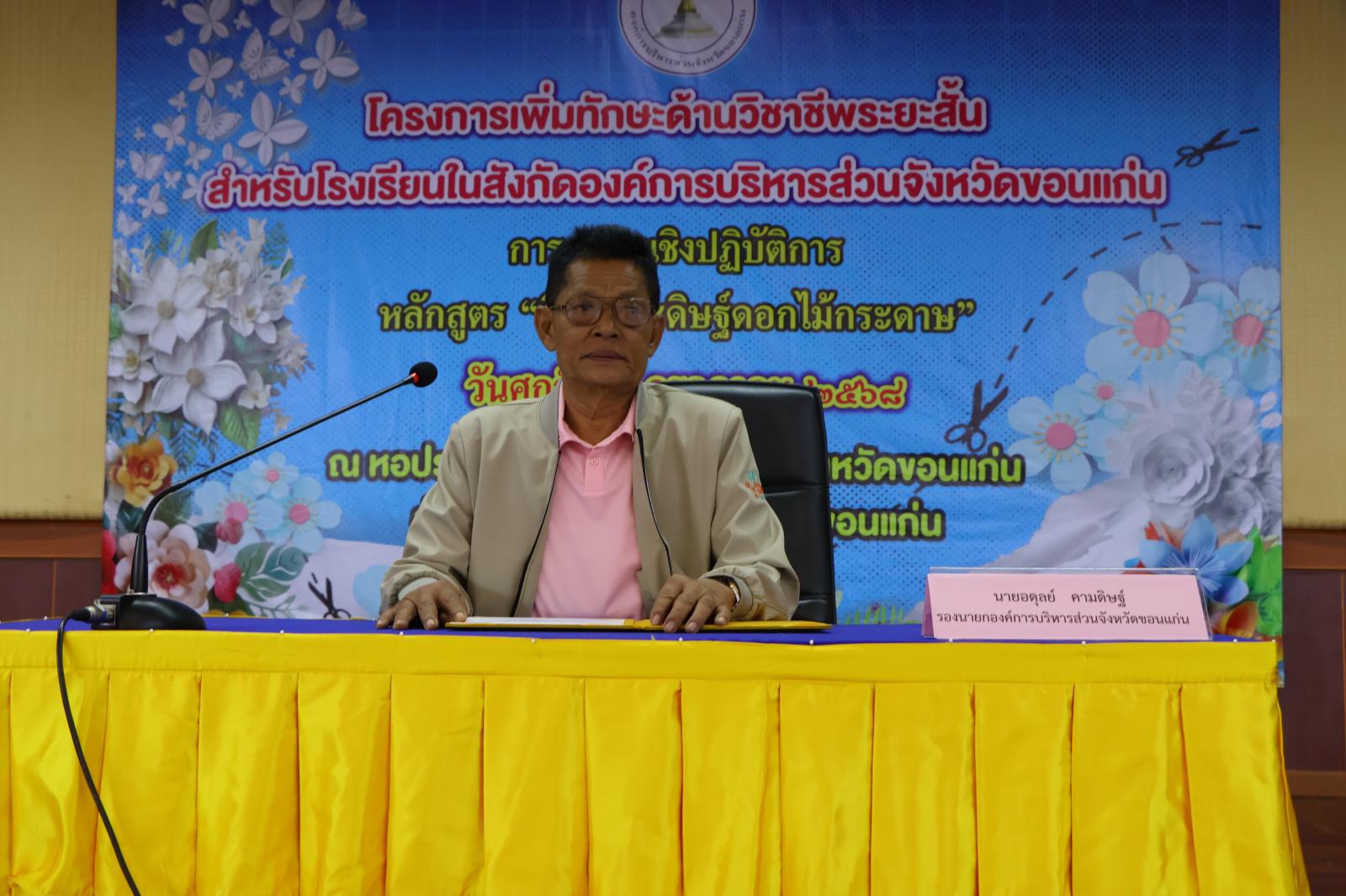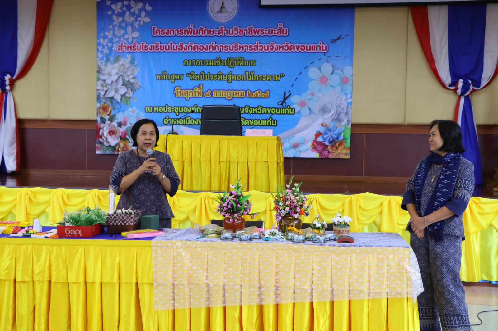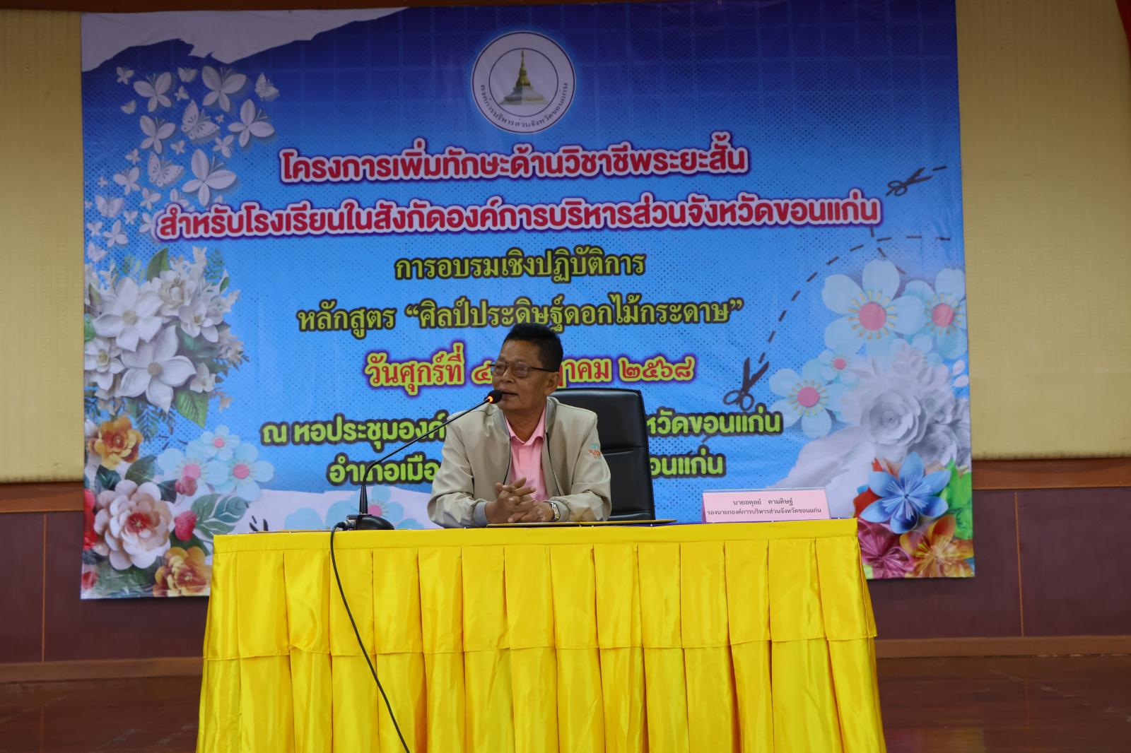 พิธีเปิด โครงการเพิ่มทักษะ ด้านวิชาชีพระยะสั้น สำหรับโรงเรียนในสังกัดองค์การบริหารส่วนจังหวัดขอนแก่น การอบรมเชิงปฎิบัติด้านหลักสูตร“ ศิลป์ประดิษฐ์ดอกไม้กระดาษ”