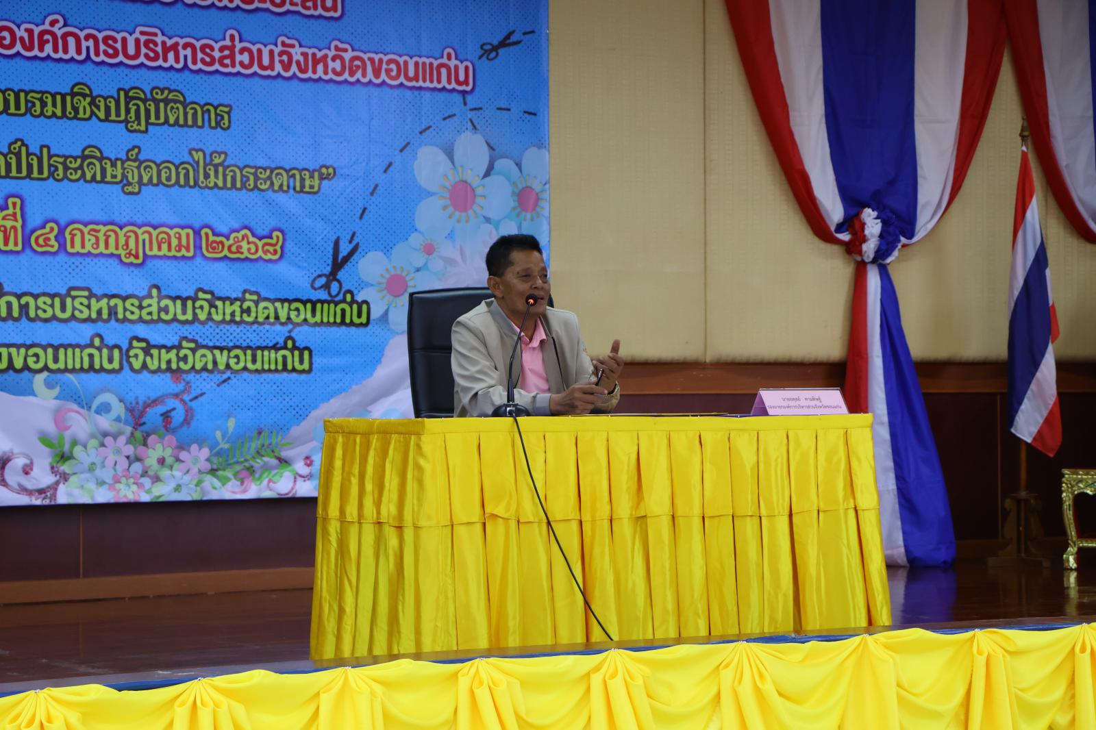 องค์การบริหารส่วนจังหวัดขอนแก่น ได้กำหนดจัดโครงการ เพิ่มทักษะด้านวิชาชีพระยะสั้นสำหรับโรงเรียนในสังกัดองค์การบริหารส่วนจังหวัดขอนแก่น การอบรมเชิงปฎิบัติด้านหลักสูตร“ ศิลป์ประดิษฐ์ดอกไม้กระดาษ”