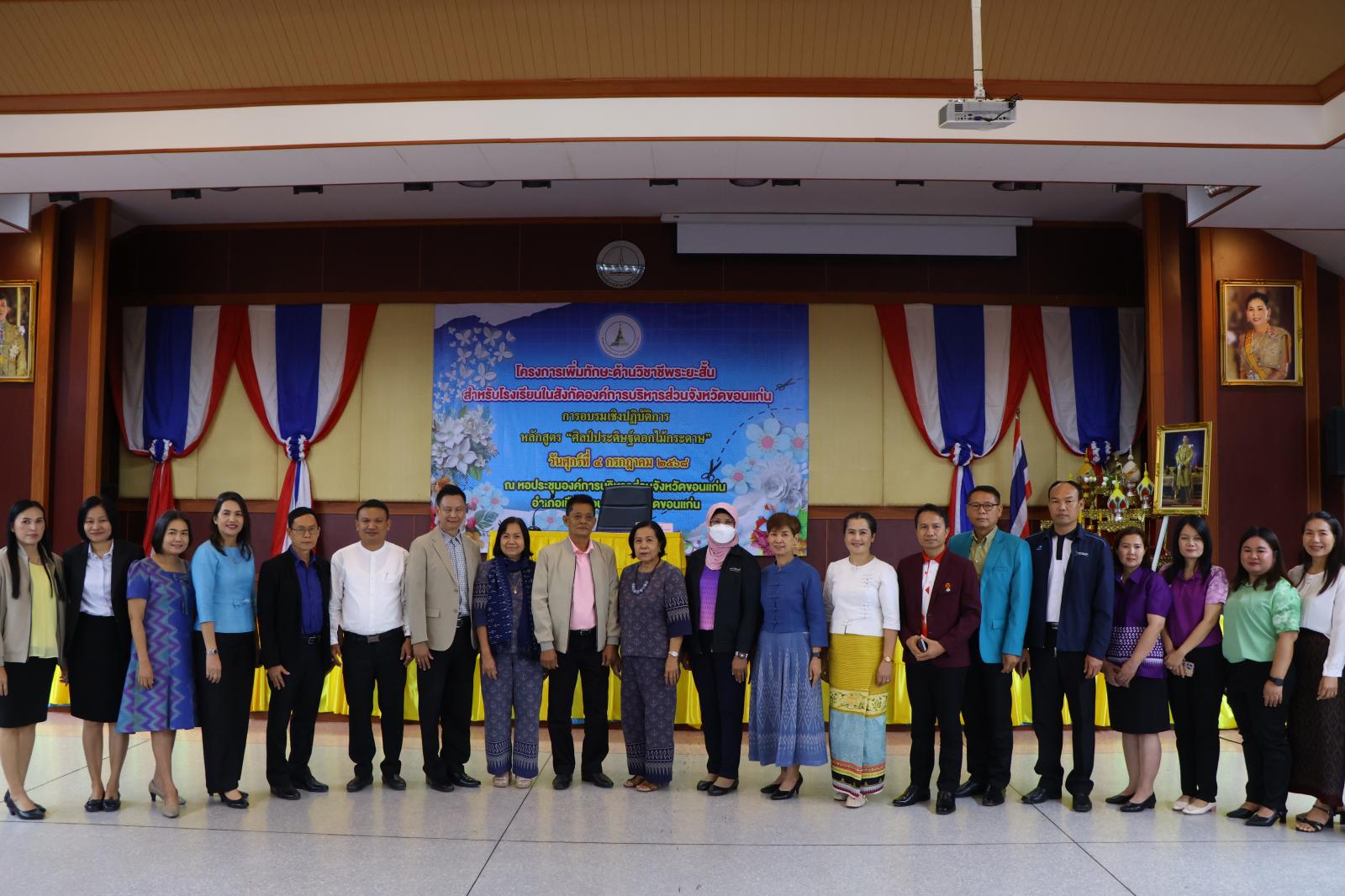 ผู้อำนวยการสำนักการศึกษา ศาสนาและวัฒนธรรม กล่าวรายงาน ในโอกาสนี้มี นางอาซีซะห์ ว่องไว รองปลัดองค์การบริหารส่วนจังหวัดขอนแก่น หัวหน้าส่วนราชการ องค์การบริหารส่วนจังหวัดขอนแก่น ผู้บริหารโรงเรียน ครู นักเรียน โรงเรียนในสังกัดองค์การบริหารส่วนจังหวัดขอนแก่นเข้าร่วมอบรม ณ ห้องประชุมแก่นนคร องค์การบริหารส่วนจังหวัดขอนแก่น จังหวัดขอนแก่น