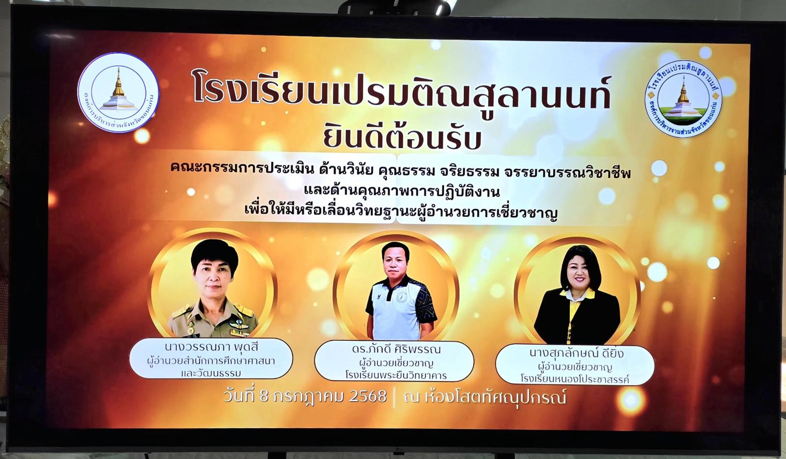 ประเมินการเลื่อนวิทยฐานะที่สูงขึ้นตำแหน่งผู้อำนวยการสถานศึกษา รายนางสาวสิริลักษณ์ พรสุรรณ์ ณ โรงเรียนเปรมติณสูลานนท์ อ.น้ำพอง จ.ขอนแก่น