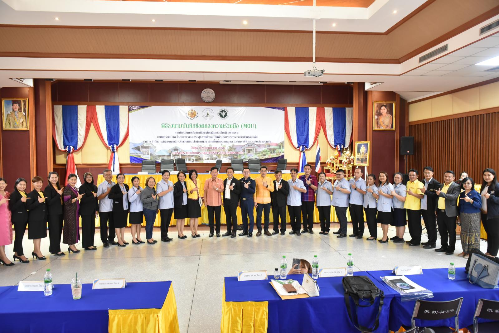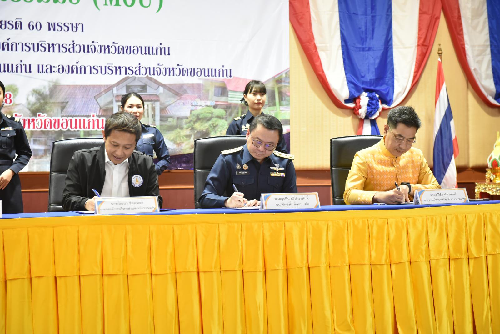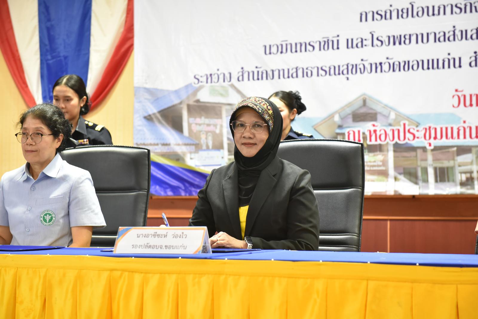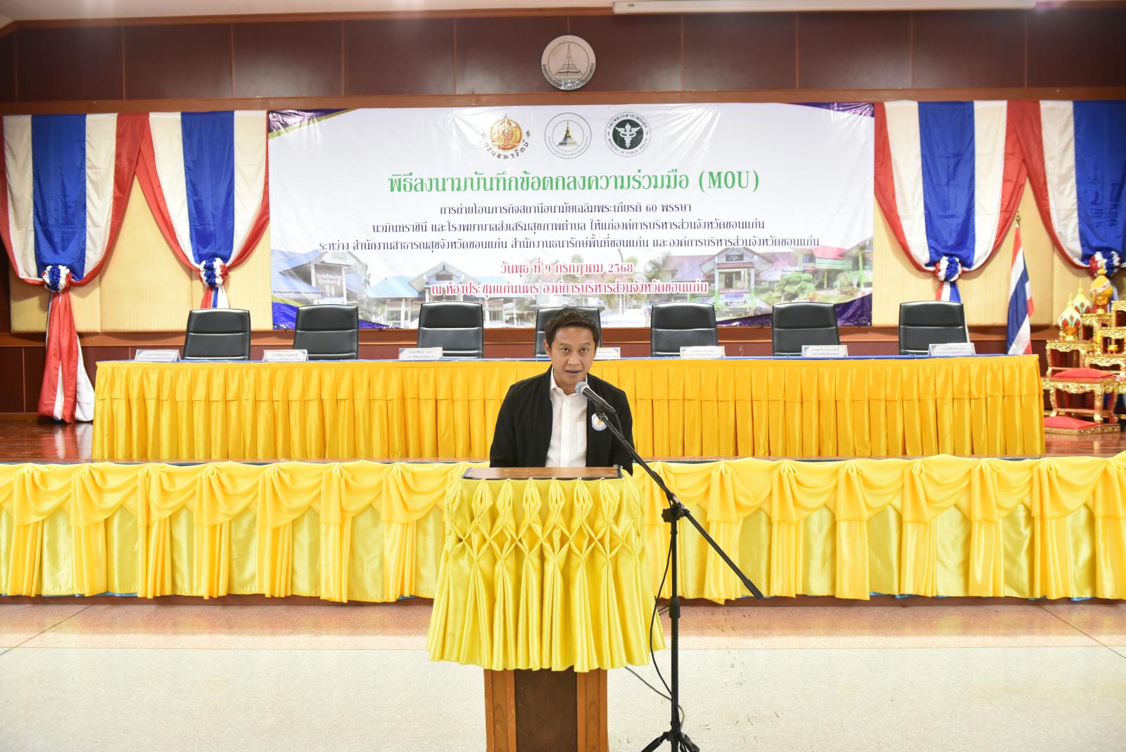 พิธีลงนามบันทึกข้อตกลงความร่วมมือ (MOU) การถ่ายโอนภารกิจสถานีอนามัยเฉลิมพระเกียรติ 60 พรรษา นวมินทราชินี และโรงพยาบาลส่งเสริมสุขภาพตำบล ระหว่าง สำนักงานสาธารณสุขจังหวัดขอนแก่น สำนักงานธนารักษ์พื้นที่ขอนแก่น และองค์การบริหารส่วนจังหวัดขอนแก่น