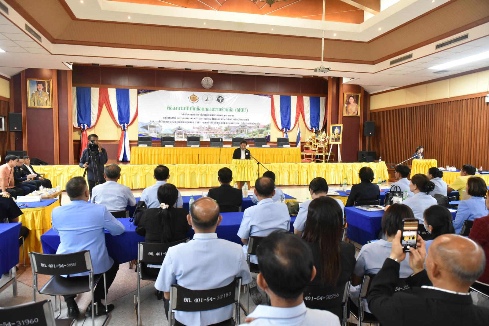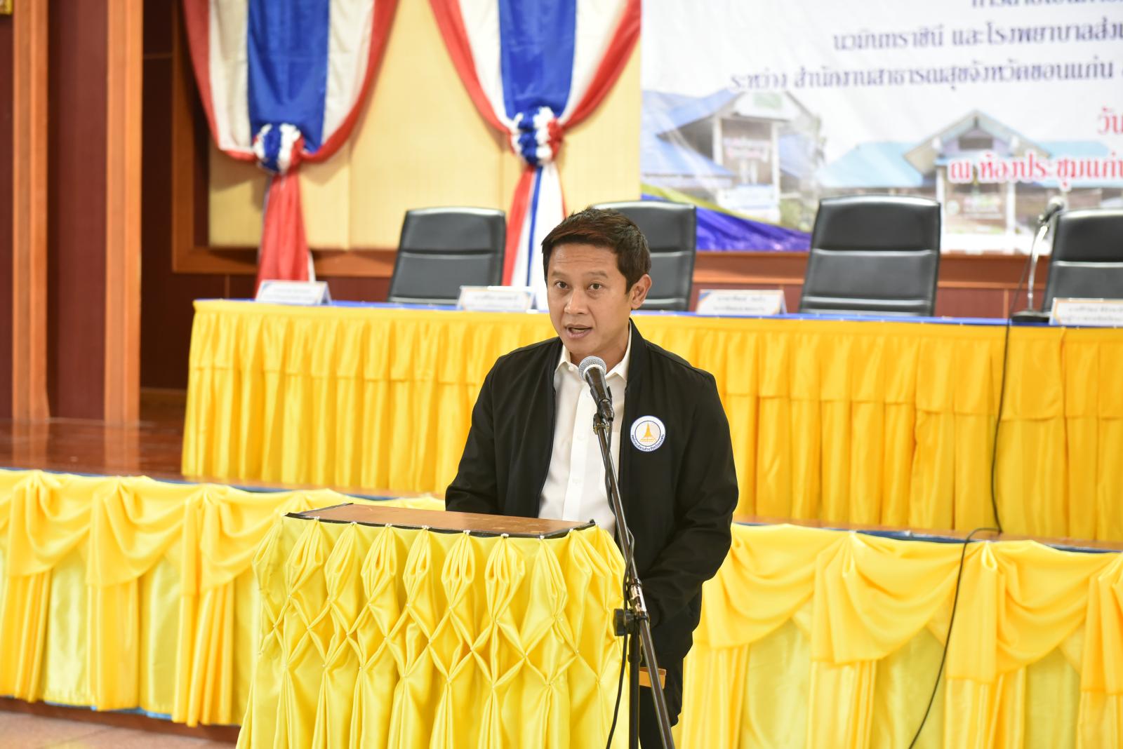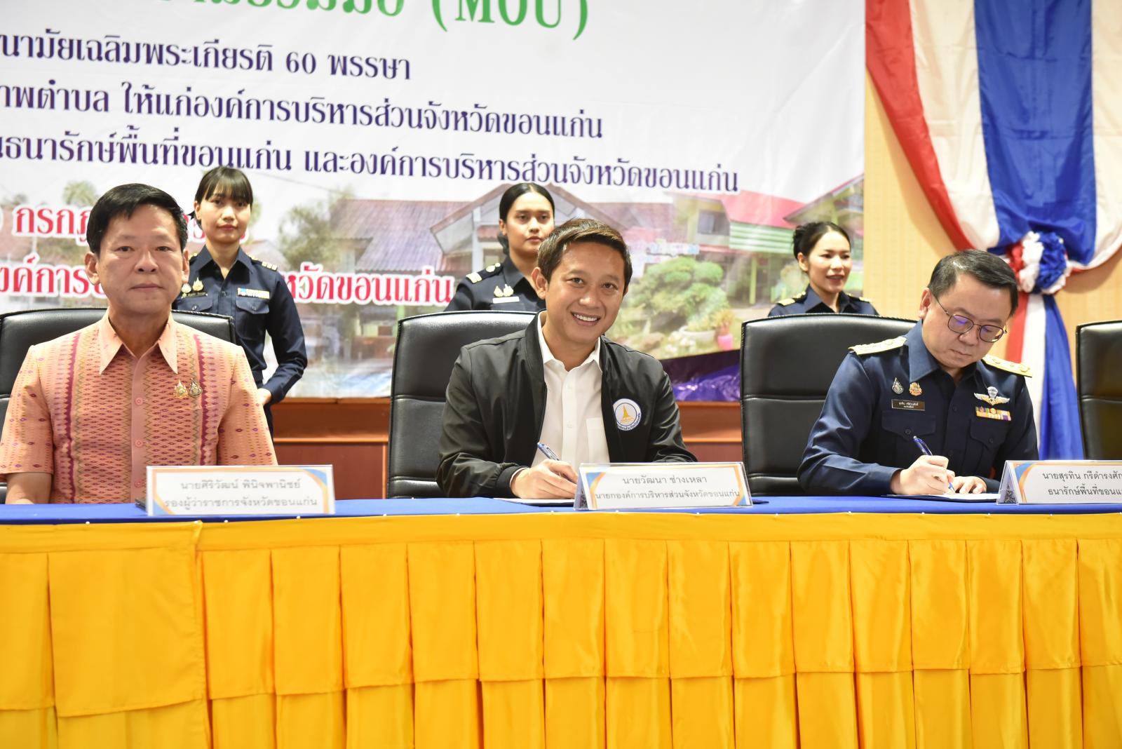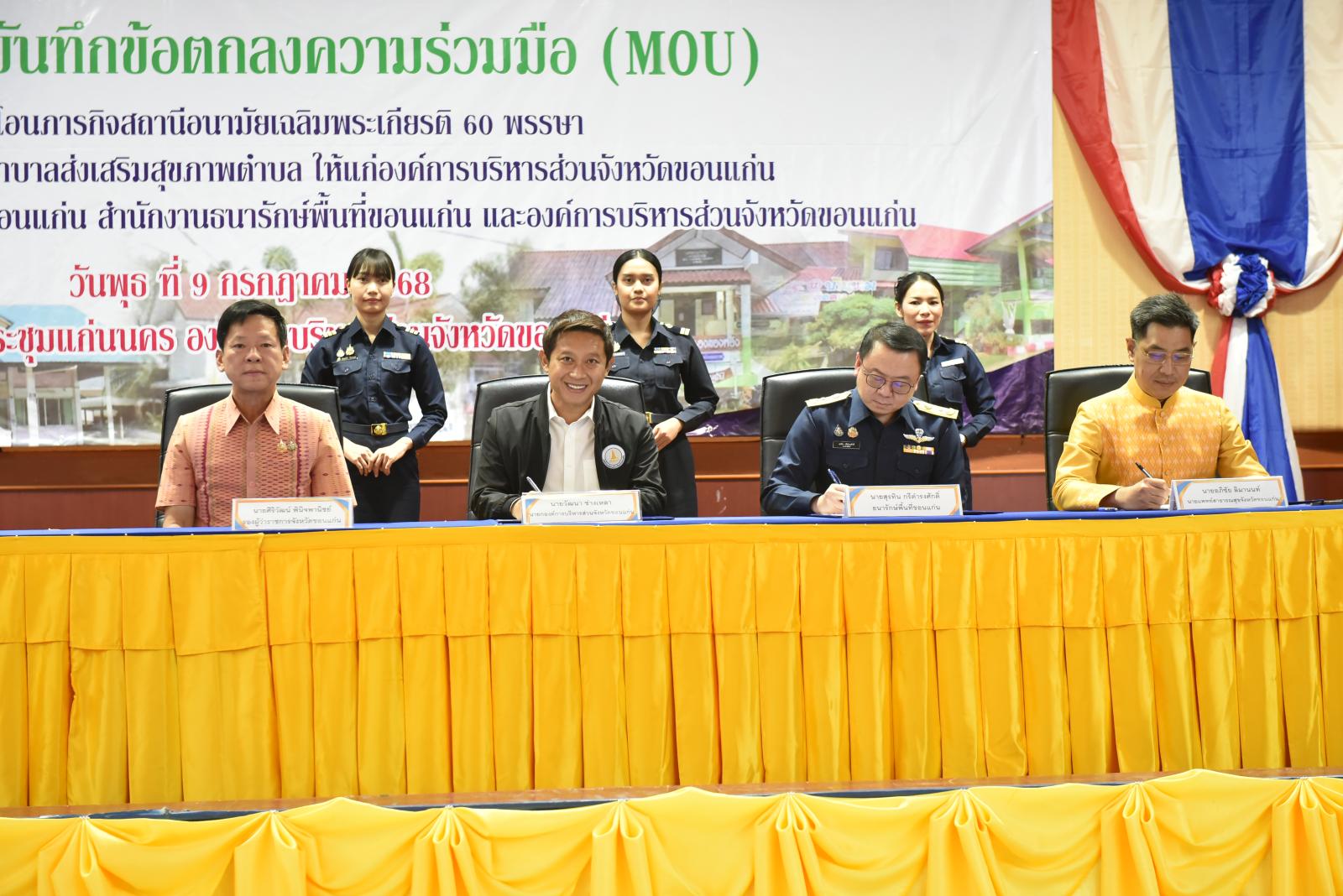พิธีลงนามบันทึกข้อตกลงความร่วมมือ (MOU) การถ่ายโอนภารกิจสถานีอนามัยเฉลิมพระเกียรติ 60 พรรษา นวมินทราชินี และโรงพยาบาลส่งเสริมสุขภาพตำบล ระหว่าง สำนักงานสาธารณสุขจังหวัดขอนแก่น สำนักงานธนารักษ์พื้นที่ขอนแก่น และองค์การบริหารส่วนจังหวัดขอนแก่น