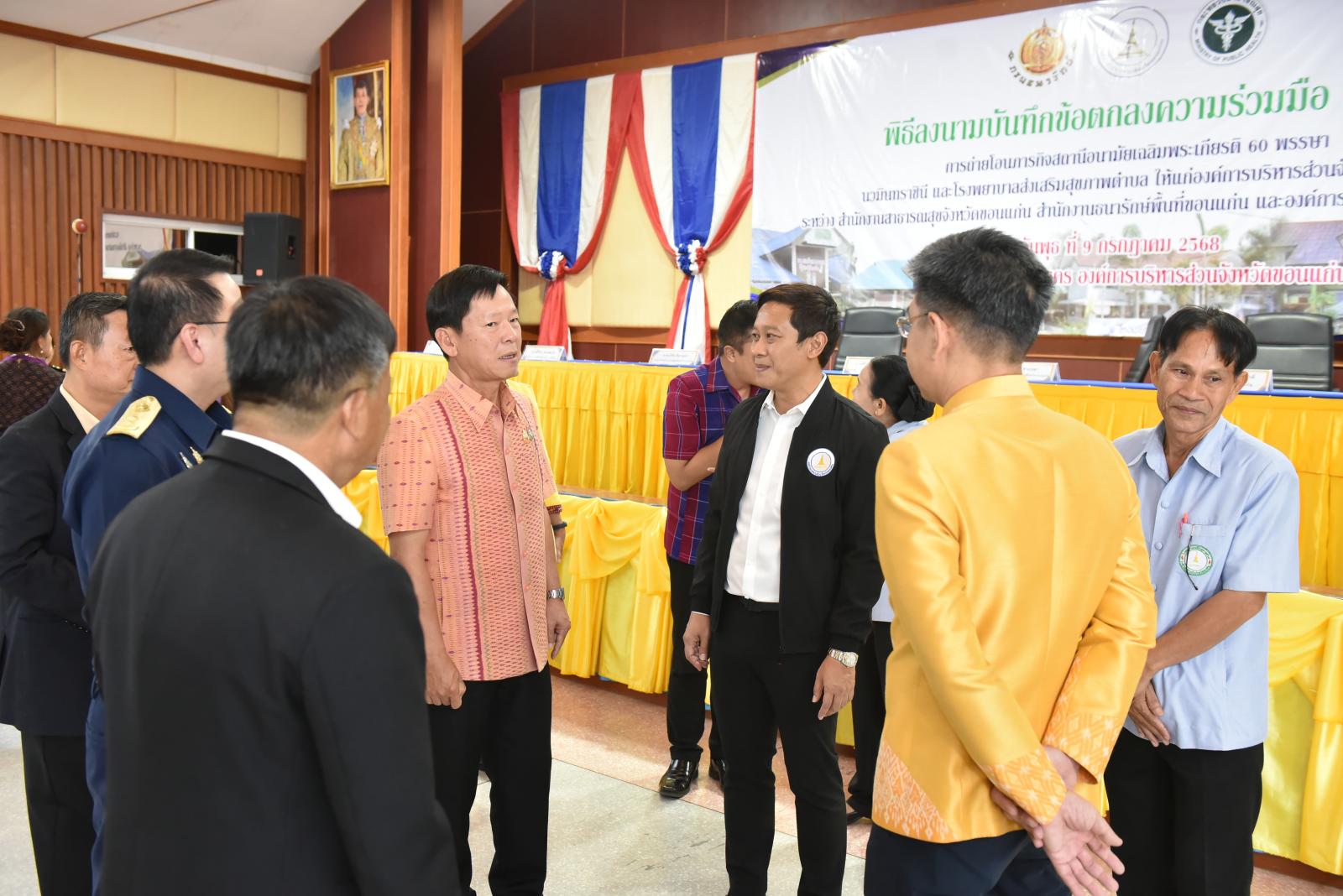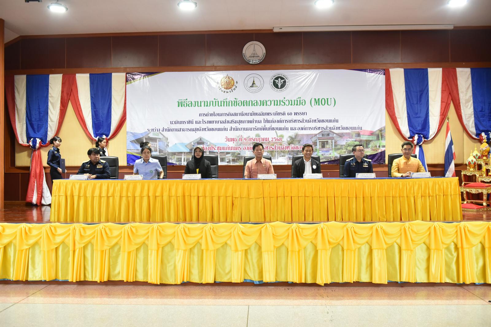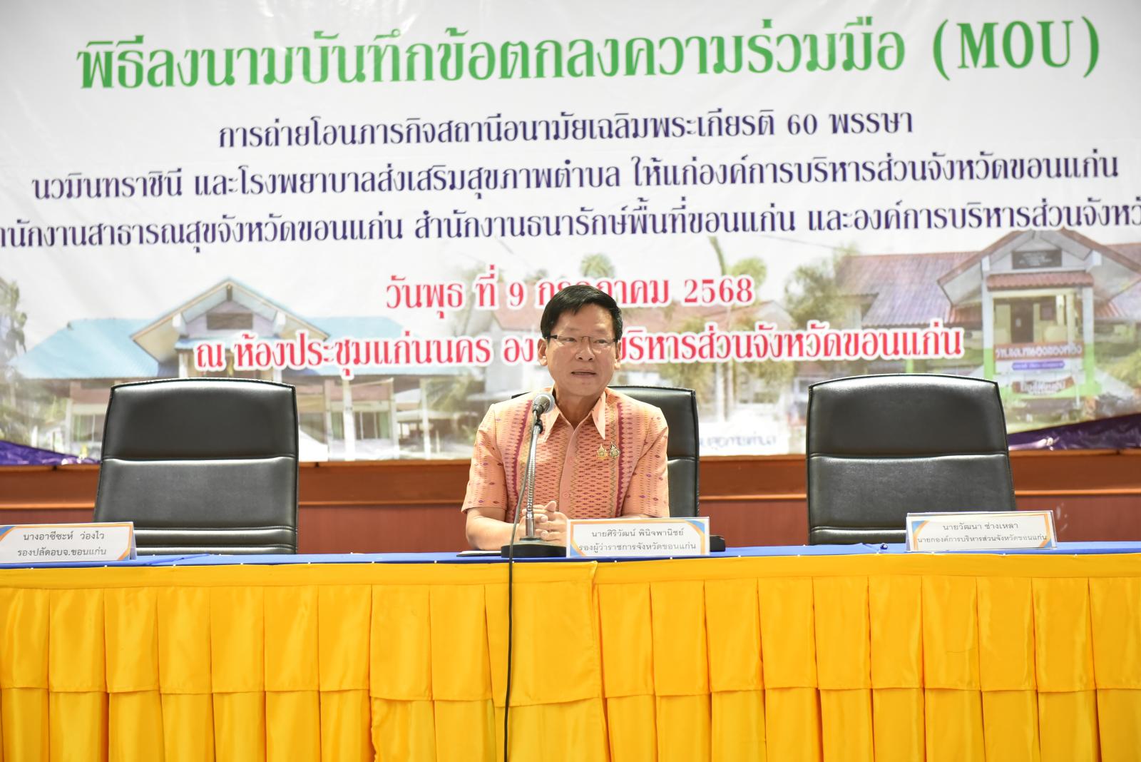 เมื่อวันที่ 9 กรกฎาคม 2568 เวลา 14.00 น. นายวัฒนา ช่างเหลา นายกองค์การบริหารส่วนจังหวัดขอนแก่น กล่าวต้อนรับและร่วมลงนามบันทึกข้อตกลงความร่วมมือฯ (MOU) ในพิธีลงนามบันทึกข้อตกลงความร่วมมือ (MOU) การถ่ายโอนภารกิจสถานีอนามัยเฉลิมพระเกียรติ 60 พรรษา นวมินทราชินี และโรงพยาบาลส่งเสริมสุขภาพตำบล ระหว่าง สำนักงานสาธารณสุขจังหวัดขอนแก่น สำนักงานธนารักษ์พื้นที่ขอนแก่น และองค์การบริหารส่วนจังหวัดขอนแก่น ซึ่งมีวัตถุประสงค์เพื่อให้การขอใช้ที่ราชพัสดุที่เป็นที่ตั้งสถานีอนามัยเฉลิมพระเกียรติ 60 พรรษา นวมินทราชินี และโรงพยาบาลส่งเสริมสุขภาพตำบล รวมทั้งสิ้น 251 แห่ง เป็นไปอย่างมีประสิทธิภาพ โดยมีเป้าประสงค์ร่วมกันจะดำเนินการพิจารณาอนุญาตให้องค์การบริหารส่วนจังหวัดขอนแก่นใช้ที่ราชพัสดุให้แล้วเสร็จภายในปี 2568 การจัดงานในครั้งนี้ได้รับเกียรติจาก นายศิริวัฒน์ พินิจพานิชย์ รองผู้ว่าราชการจังหวัดขอนแก่น เป็นประธาน โดยมี นายอภิชัย ลิมานนท์ นายแพทย์สาธารณสุขจังหวัดขอนแก่น, ดร.สุรทิน กรีดำรงศักดิ์ ธนารักษ์พื้นที่ขอนแก่น ร่วมลงนามในครั้งนี้ ทั้งนี้มี นายทศภณ วงษาลี เลขานุการนายกองค์การบริหารส่วนจังหวัดขอนแก่น, นายวิบูลย์ เรืองประเสริฐกุล ประธานสภาองค์การบริหารส่วนจังหวัดขอนแก่น, นางกรรณาการ์ สืบสารคาม เลขานุการสภาองค์การบริหารส่วนจังหวัดขอนแก่น, นายธีระศักดิ์ ผาเหลา ส.อบจ.ขอนแก่น อ.เมืองขอนแก่น เขต 4, นางอาซีซะห์ ว่องไว รองปลัดงอค์การบริหารส่วนจังหวัดขอนแก่น หัวหน้าส่วนราชการ ผู้อำนวยการโรงพยาบาลส่งเสริมสุขภาพตำบล เข้าร่วมเป็นเกียรติในพิธี ณ หอประชุมแก่นนคร องค์การบริหารส่วนจังหวัดขอนแก่น อ.เมืองขอนแก่น จ.ขอนแก่น