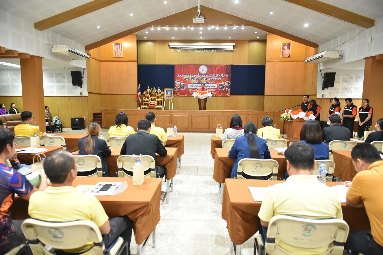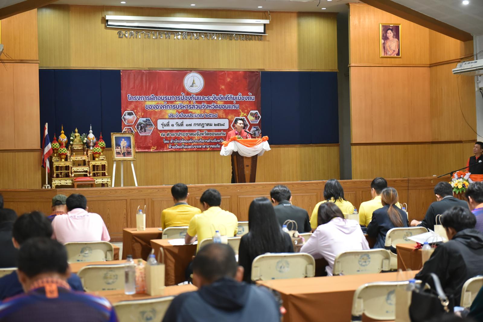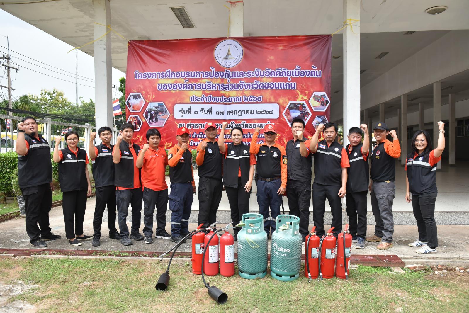 เมื่อวันที่ 17 กรกฎาคม 2568 เวลา 09.30 น. นายวัฒนา ช่างเหลา นายกองค์การบริหารส่วนจังหวัดขอนแก่น มอบหมายให้ นายนาวิน คำเวียง รองนายกองค์การบริหารส่วนจังหวัดขอนแก่น เป็นประธานในพิธีเปิดโครงการฝึกอบรมการป้องกันและระงับอัคคีภัยเบื้องต้นขององค์การบริหารส่วนจังหวัดขอนแก่น รุ่นที่ 1 โดยมี นางสาวศิริวรรณ สุรินทะ หัวหน้าสำนักปลัดองค์การบริหารส่วนจังหวัด กล่าวรายงาน การจัดโครงการขึ้นในครั้งนี้มีวัตถุประสงค์เพื่อให้บุคลากรในสังกัด มีความรู้ ความเข้าใจ เกิดความตระหนักถึงอันตรายที่เกิดจากอัคคีภัย สามารถระงับเหตุอัคคีภัยภายในอาคารสำนักงานได้ทันท่วงที ลดความสูญเสียต่อชีวิตและทรัพย์สินของทางราชการ สร้างความมั่นใจในเรื่องความปลอดภัยต่อผู้ปฏิบัติงาน และประชาชนผู้มาติดต่อราชการ ตลอดจนเป็นการฝึกปฏิบัติเตรียมความพร้อมในการป้องกันและระงับอัคคีภัยเบื้องต้น โดยมีผู้เข้ารับการฝึกอบรม จำนวน 2 รุ่น รุ่นละ 100 คน ในโอกาสนี้มี หัวหน้าส่วนราชการ ข้าราชการ พนักงาน อบจ.ขอนแก่น เข้าร่วมเป็นเกียรติ ณ ห้องประชุมศาลาประชาคมจังหวัดขอนแก่น อ.เมืองขอนแก่น จ.ขอนแก่น