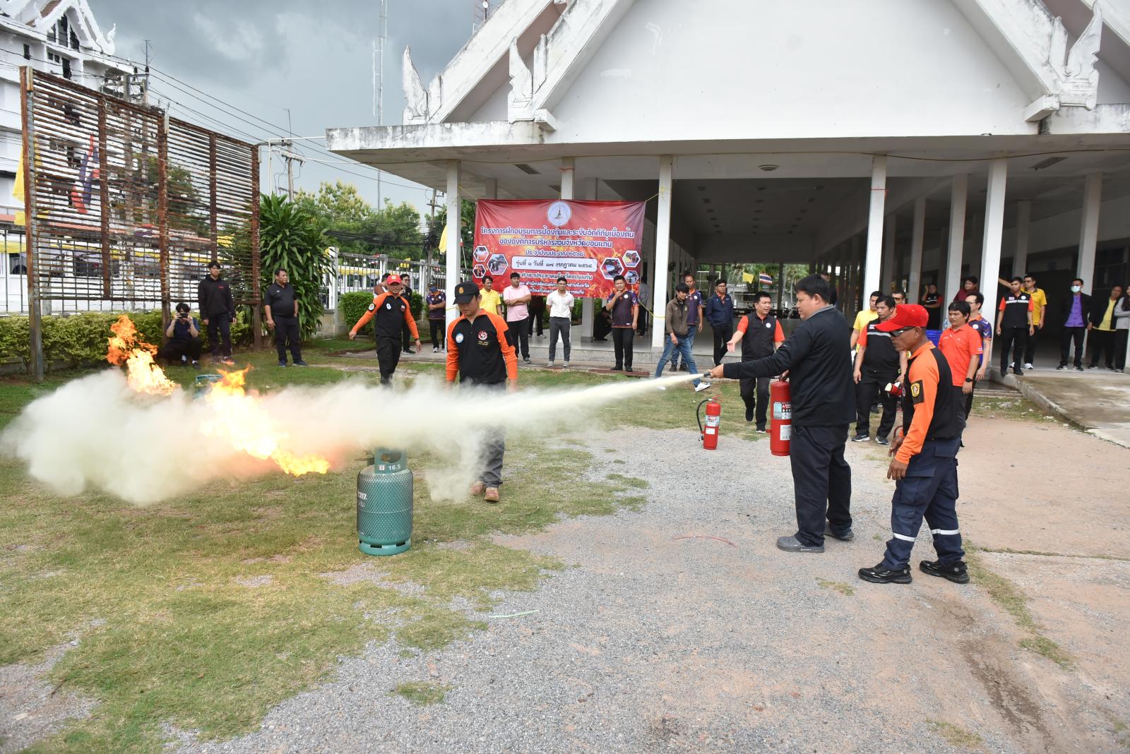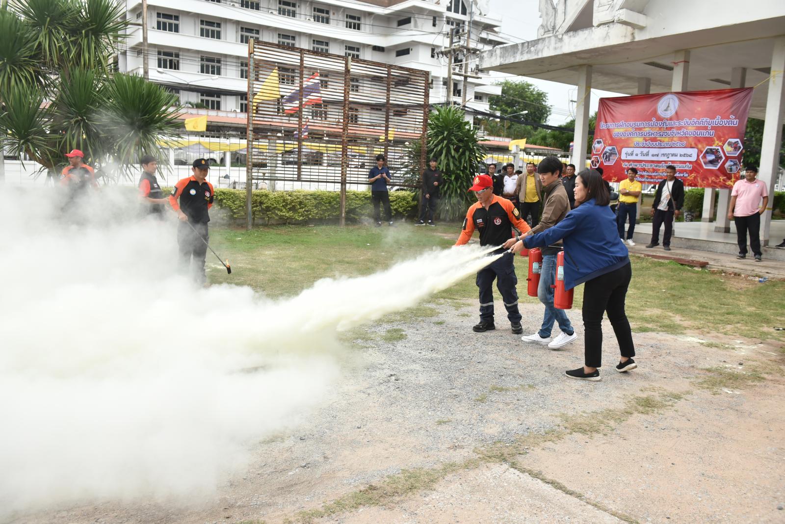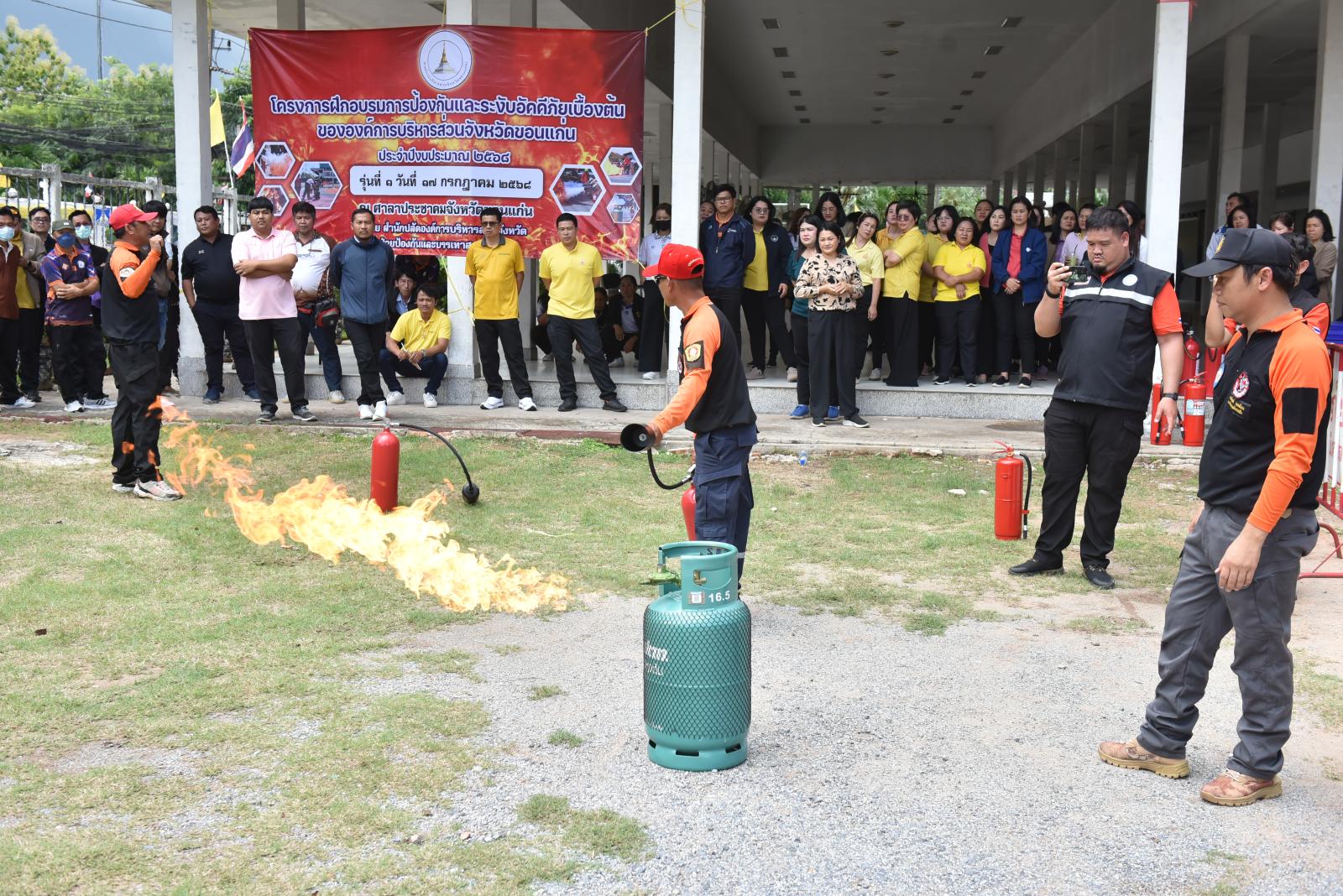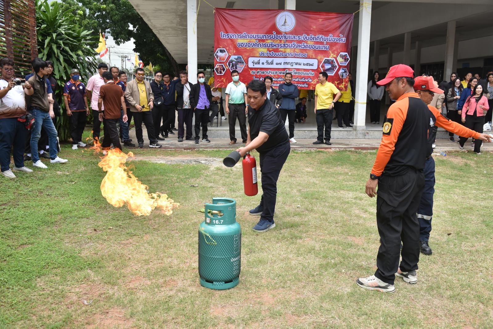 องค์การบริหารส่วนจังหวัดขอนแก่นจัดโครงการฝึกอบรมการป้องกันและระงับอัคคีภัยเบื้องต้นให้กับบุคลากรในสังกัด