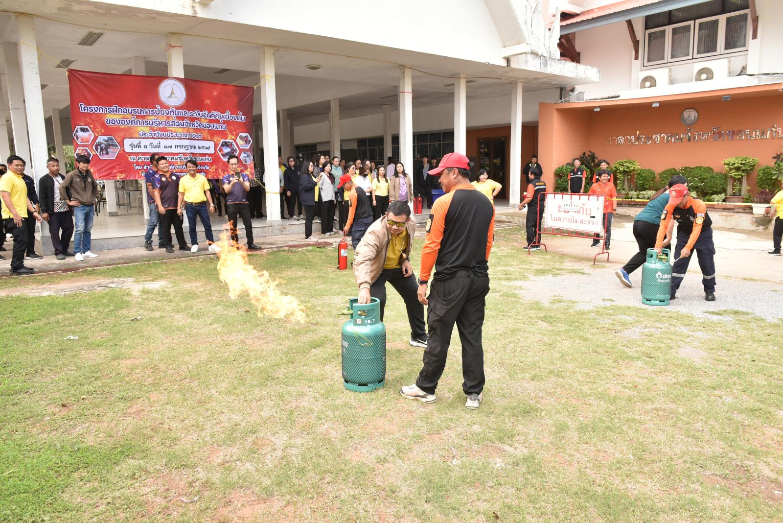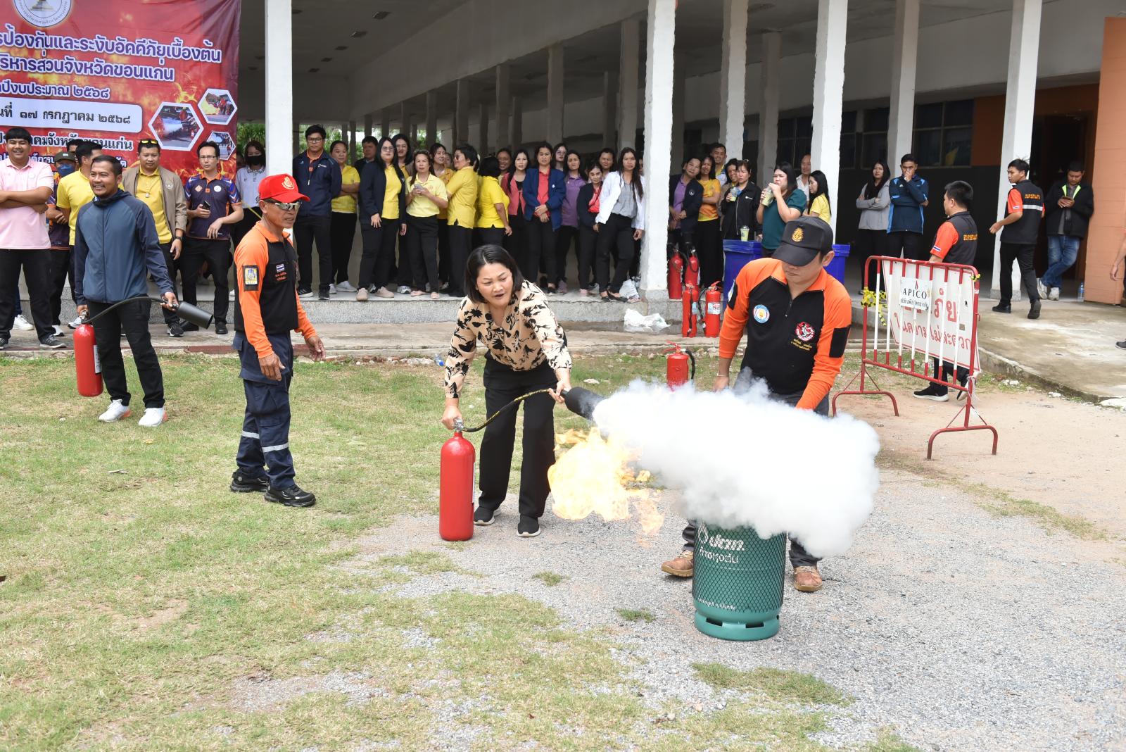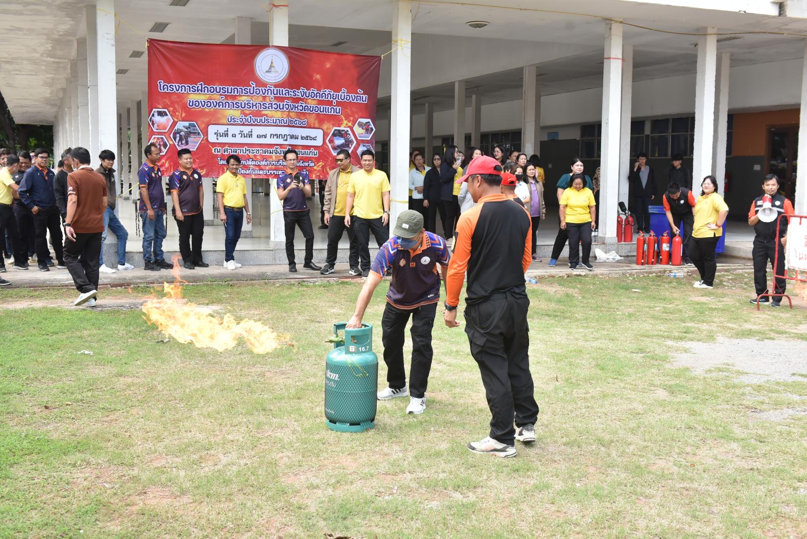 องค์การบริหารส่วนจังหวัดขอนแก่นจัดโครงการฝึกอบรมการป้องกันและระงับอัคคีภัยเบื้องต้นให้กับบุคลากรในสังกัด