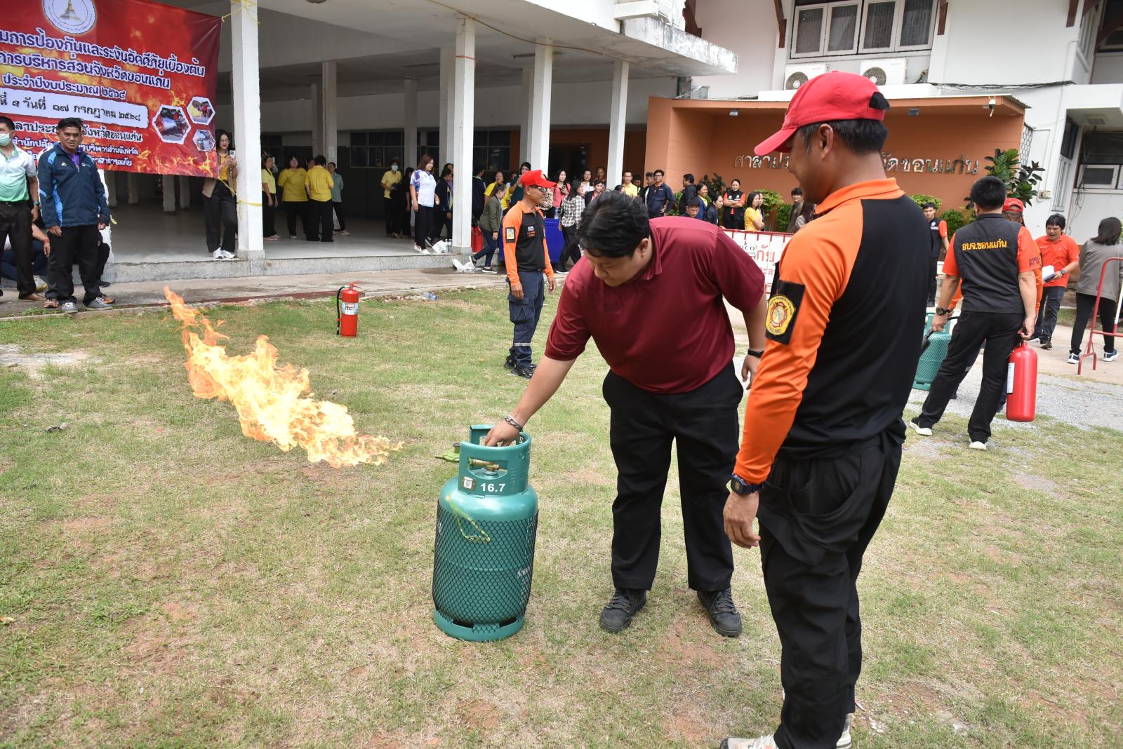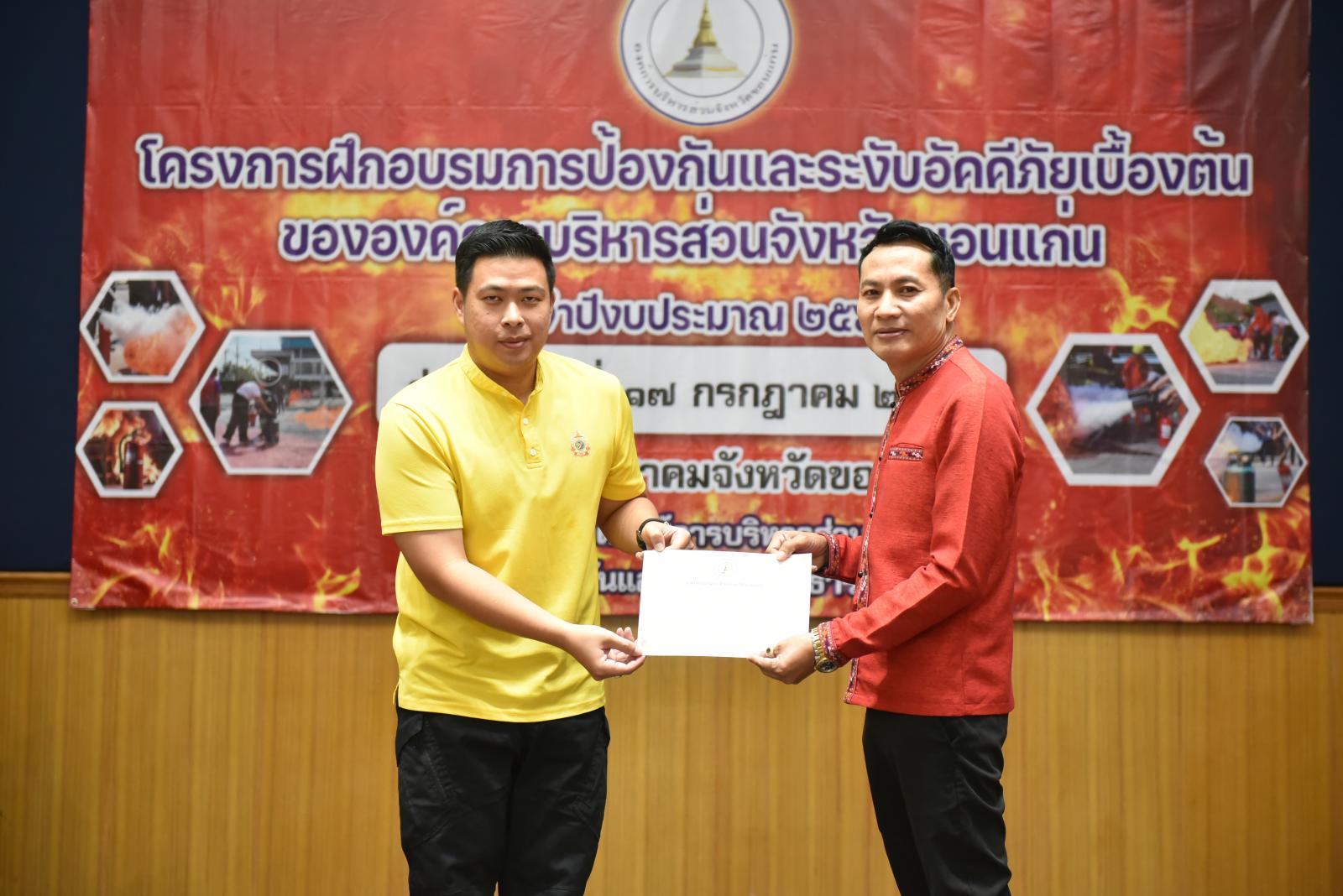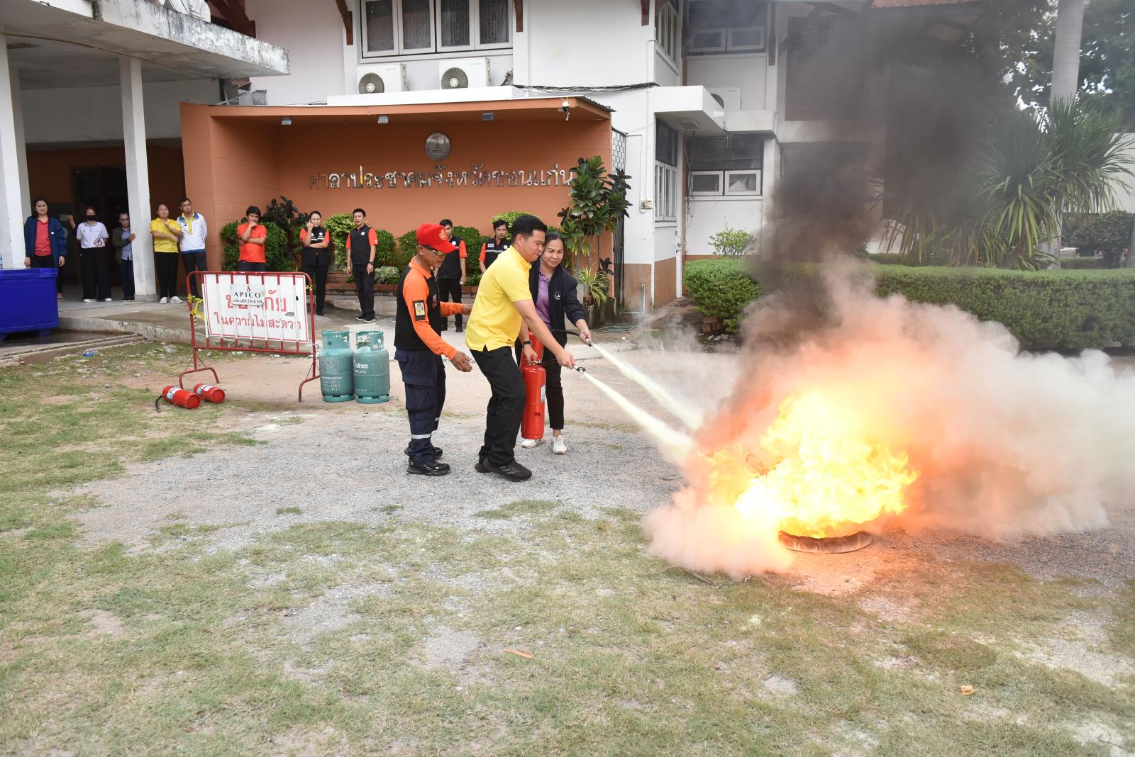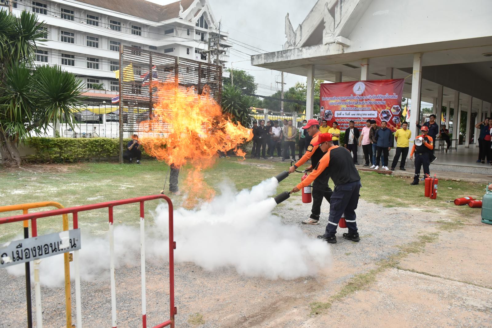 องค์การบริหารส่วนจังหวัดขอนแก่นจัดโครงการฝึกอบรมการป้องกันและระงับอัคคีภัยเบื้องต้นให้กับบุคลากรในสังกัด