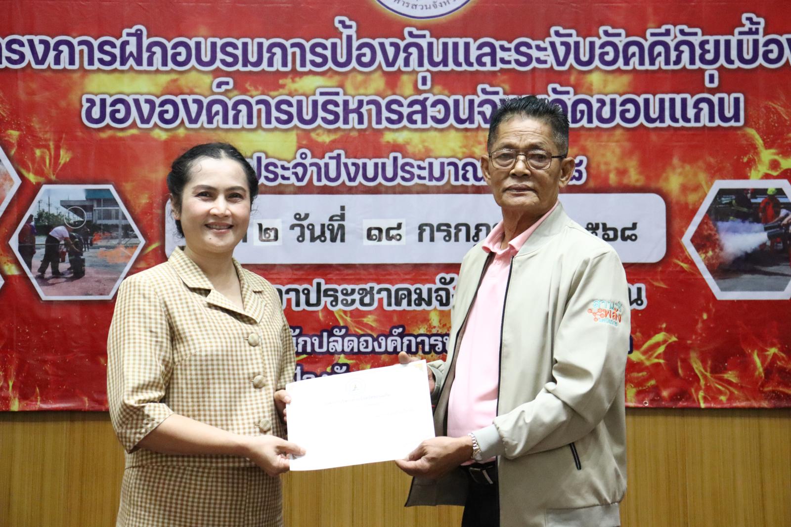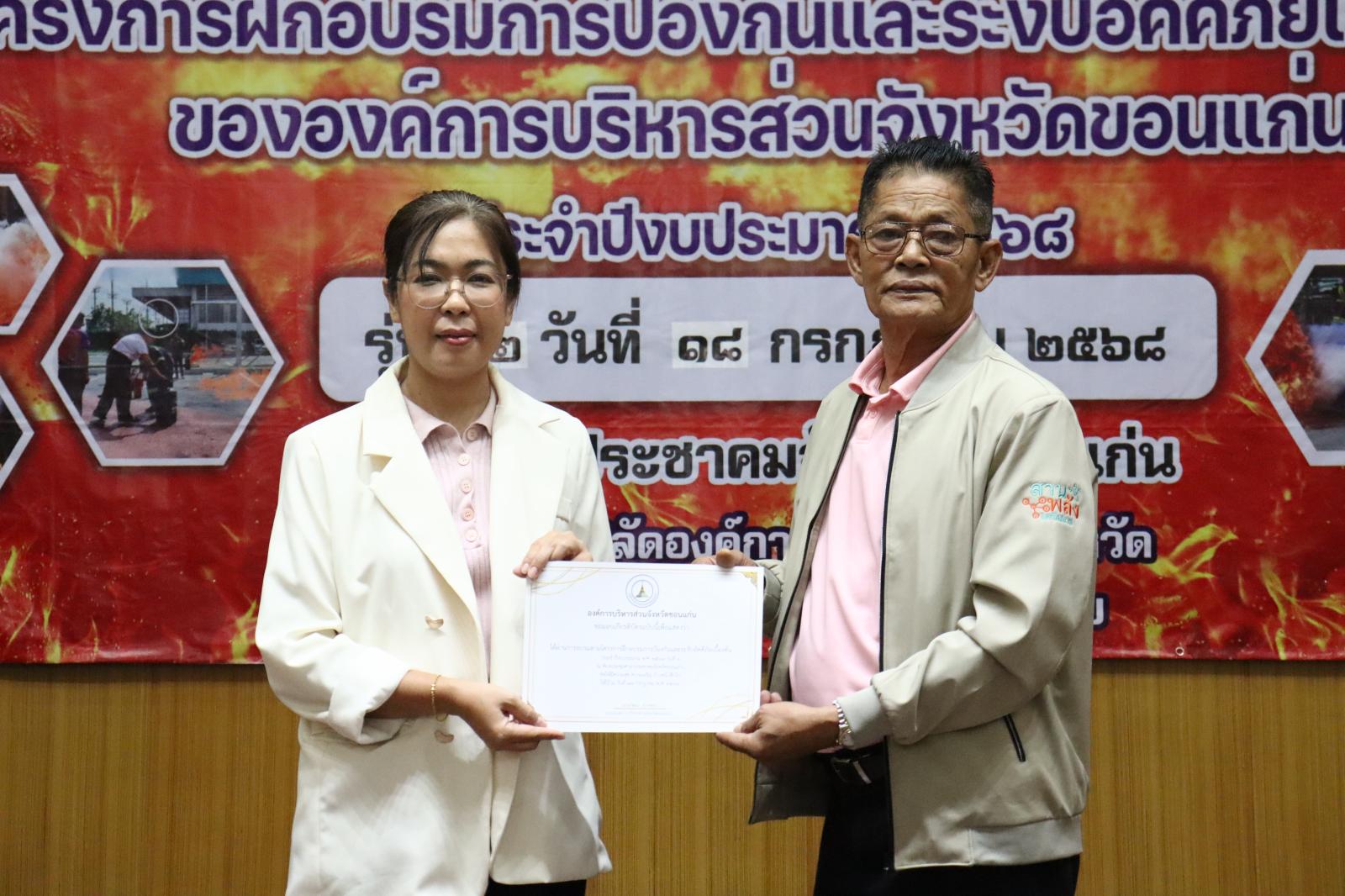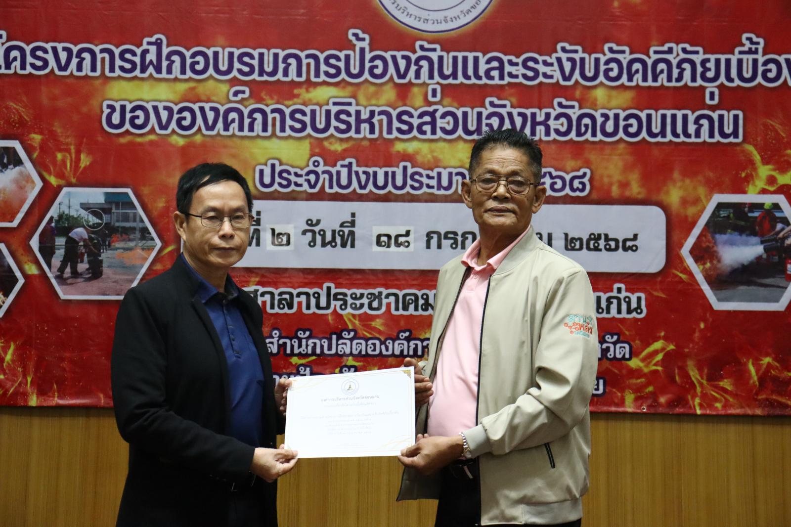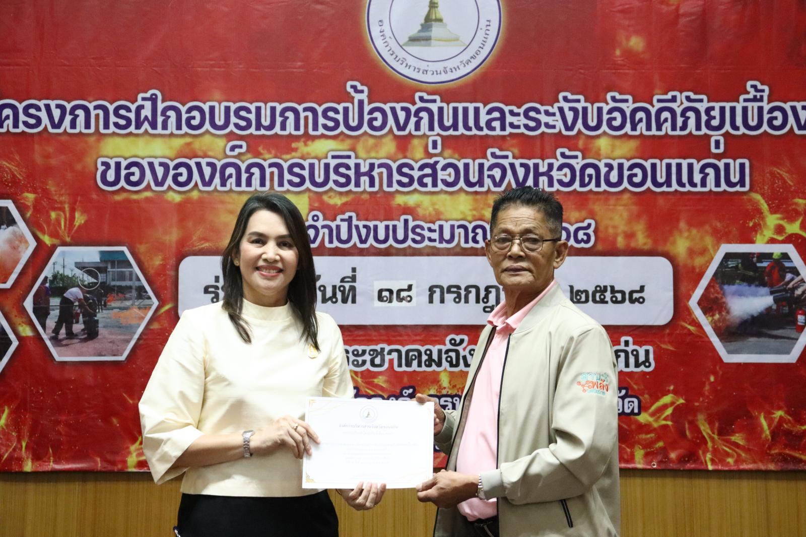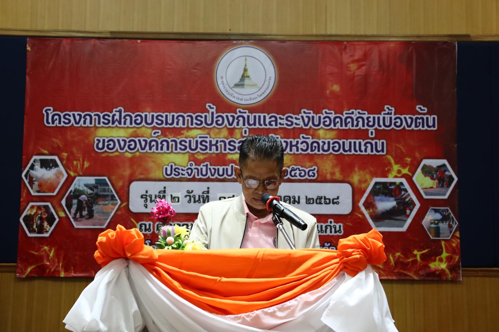 วันที่ 18 กรกฎาคม 2568 เวลา 09.30 น. นายวัฒนา ช่างเหลา นายกองค์การบริหารส่วนจังหวัดขอนแก่น มอบหมายให้ นายอดุลย์ คามดิษฐ์ รองนายกองค์การบริหารส่วนจังหวัดขอนแก่น เป็นประธานในพิธีเปิดโครงการฝึกอบรมการป้องกันและระงับอัคคีภัยเบื้องต้นขององค์การบริหารส่วนจังหวัดขอนแก่น รุ่นที่ 2 โดยมี นางสาวศิริวรรณ สุรินทะ หัวหน้าสำนักปลัดองค์การบริหารส่วนจังหวัด กล่าวรายงาน วัตถุประสงค์ เพื่อให้บุคลากรในสังกัด มีความรู้ ความเข้าใจ เกิดความตระหนักถึงอันตรายที่เกิดจากอัคคีภัย สามารถระงับเหตุอัคคีภัยภายในอาคารสำนักงานได้ทันท่วงที ลดความสูญเสียต่อชีวิตและทรัพย์สินของทางราชการ สร้างความมั่นใจในเรื่องความปลอดภัยต่อผู้ปฏิบัติงาน และประชาชนผู้มาติดต่อราชการ ตลอดจนเป็นการฝึกปฏิบัติเตรียมความพร้อมในการป้องกันและระงับอัคคีภัยเบื้องต้น โดยมีผู้เข้ารับการฝึกอบรม 100 คน ในโอกาสนี้มี หัวหน้าส่วนราชการ ข้าราชการ พนักงาน อบจ.ขอนแก่น เข้าร่วมเป็นเกียรติ ณ ห้องประชุมศาลาประชาคมจังหวัดขอนแก่น อ.เมืองขอนแก่น จ.ขอนแก่น