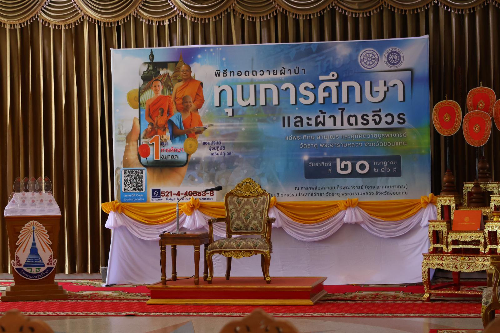 เมื่อวันที่ 20 กรกฎาคม 2568 เวลา 09.00 น องค์การบริหารส่วนจังหวัดขอนแก่น นำโดย นายวัฒนา ช่างเหลา นายกองค์การบริหารส่วนจังหวัดขอนแก่น มอบหมายให้ นายอดุลย์ คามดิษฐ์ รองนายกองค์การบริหารส่วนจังหวัดขอนแก่น เป็นประธานในพิธีทอดผ้าป่าการศึกษา คืนสู่เหย้า ศิษย์เก่าวัดธาตุ ในโอกาสนี้มี พระราชพัฒนวัชรบัณฑิต(สุกันยา อรุโณ,รศ.ดร.) รองเจ้าคณะจังหวัดขอนแก่น คณะกรรมการวัด คณะศิษย์เก่าและศิษย์ปัจจุบัน ตลอดจนประชาชนผู้มีจิตศรัทธา เข้าร่วมในพิธี ณ วัดธาตุ พระอารามหลวง อำเภอเมือง จังหวัดขอนแก่น