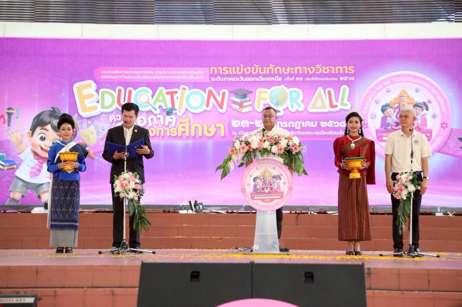 วันที่ 23 กรกฎาคม 2568 เวลา 16.00 น. องค์การบริหารส่วนจังหวัดขอนแก่น นำโดย นายวัฒนา ช่างเหลา นายกองค์การบริหารส่วนจังหวัดขอนแก่น มอบหมายให้ นายอดุลย์ คามดิษฐ์ รองนายกองค์การบริหารส่วนจังหวัดขอนแก่น เป็นตัวแทนรับโล่เกียรติคุณการเข้าร่วมจัดนิทรรศการ ในการแข่งขันทักษะวิชาการ ระดับภาคตะวันออกเฉียงเหนือ ครั้งที่ 30 จาก นายชัชวาลย์ เบญจศิริวงศ์ ผู้ว่าราชการจังหวัดร้อยเอ็ด ประธานในพิธี โดยมี นายพลวัฒน์ การุญภาสกร ผู้อำนวยการกองส่งเสริมและพัฒนาการจัดการศึกษาท้องถิ่น กล่าวถึงวัตถุประสงค์การจัดงาน และนายบรรจง โฆษิตจิรนันท์ นายกเทศมนตรีเมืองร้อยเอ็ด เป็นผู้กล่าวรายงาน ในโอกาสนี้ นางวรรณภา พุดสี ผู้อำนวยการสำนักการศึกษาฯ นายกิตติชัย อุทธา ผู้อำนวยการส่วนบริหารการศึกษา หัวหน้าฝ่าย ผู้บริหารสถานศึกษา คณะครูและบุคลากรทางการศึกษา เข้าร่วมพิธีเปิดฯ พร้อมกันนี้ผู้บริหารสถานศึกษา คณะครูและนักเรียนโรงเรียนในสังกัด ร่วมจัดแสดงผลงานทางวิชาการ ณ ลานสาเกตนคร สวนสมเด็จพระศรีนครินทร์ร้อยเอ็ด