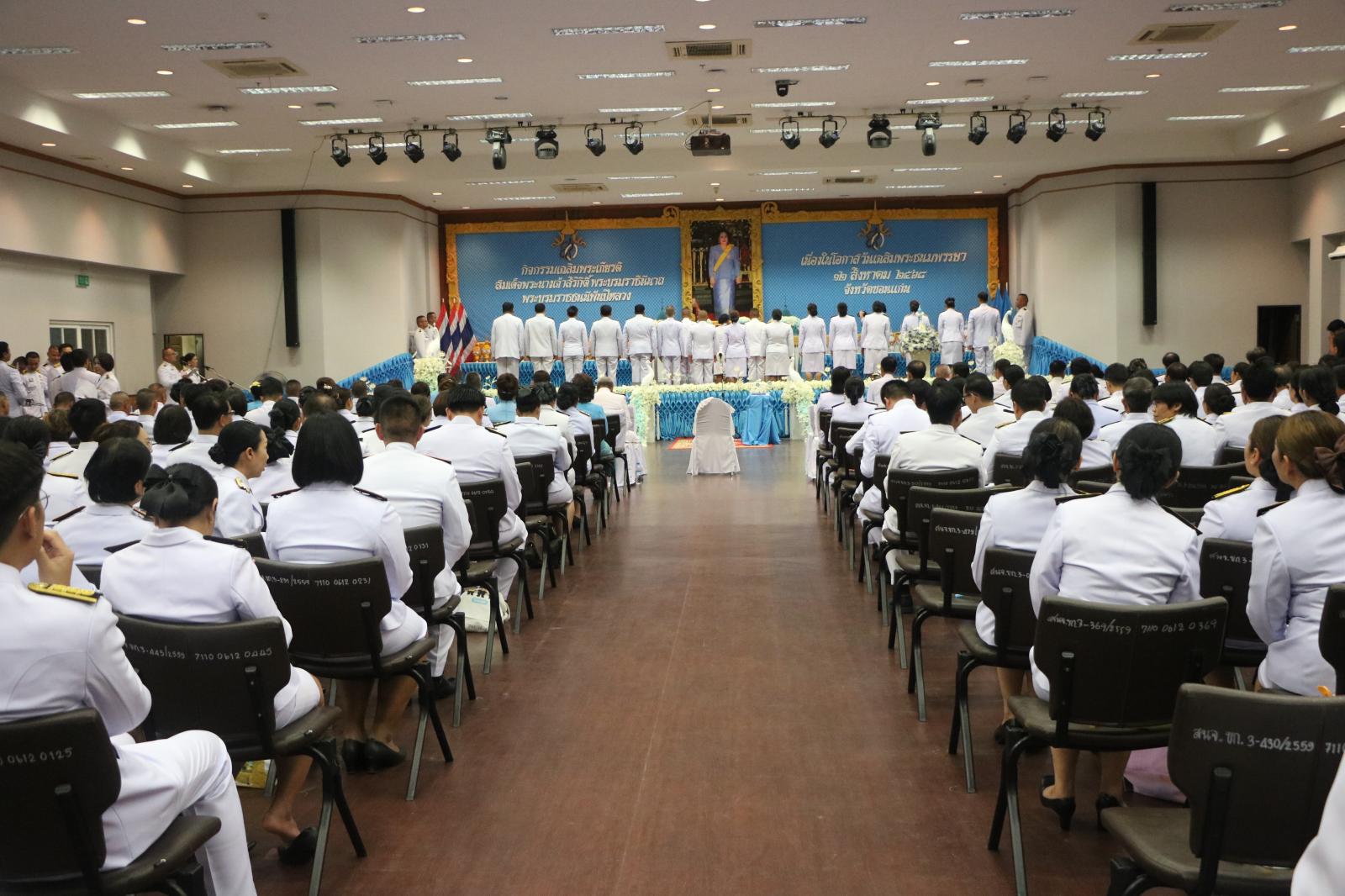 พิธีดังกล่าวจัดขึ้นอย่างสง่างาม ณ ห้องประชุมแก่นเมือง ศาลากลางจังหวัดขอนแก่น อำเภอเมือง จังหวัดขอนแก่น โดยมีผู้แทนจากหน่วยงานราชการ ภาคเอกชน และประชาชนชาวขอนแก่น เข้าร่วมอย่างพร้อมเพรียง เพื่อแสดงออกถึงความจงรักภักดีและสำนึกในพระมหากรุณาธิคุณอันหาที่สุดมิได้