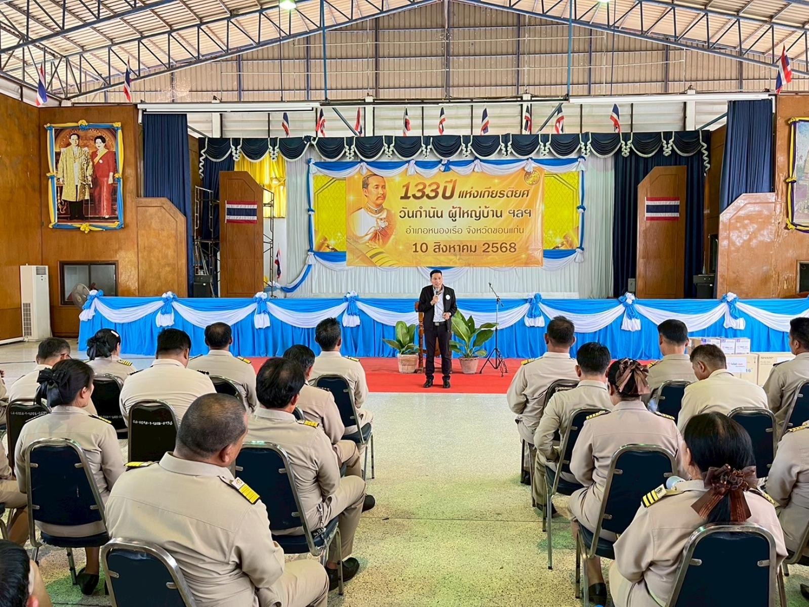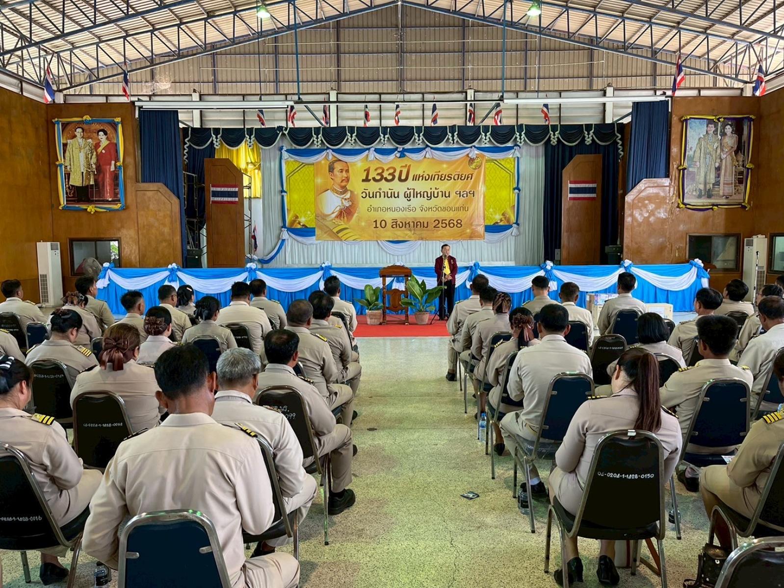 บรรยากาศเต็มไปด้วยความอบอุ่น มีข้าราชการ ผู้นำท้องถิ่น และแขกผู้มีเกียรติ เข้าร่วมอย่างพร้อมเพรียง ณ หอประชุมอาคารอเนกประสงค์ อำเภอหนองเรือ