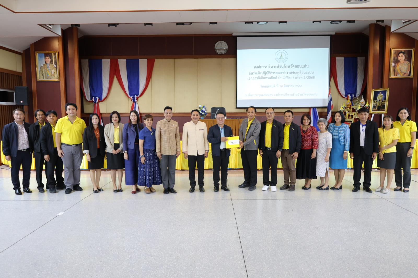 และได้รับเกียรติจากคณะวิทยากรจากโทรคมนาคมจังหวัดขอนแก่น บรรยายให้ความรู้เกี่ยวกับแนวทางการใช้ระบบ e-Office การสร้างและจัดเก็บเอกสารอิเล็กทรอนิกส์ การลงนามเอกสารด้วยลายเซ็นดิจิทัล รวมถึงการฝึกปฏิบัติจริง เพื่อให้ผู้เข้าร่วมสามารถนำความรู้ไปประยุกต์ใช้ในงานประจำวันได้อย่างมีประสิทธิภาพ