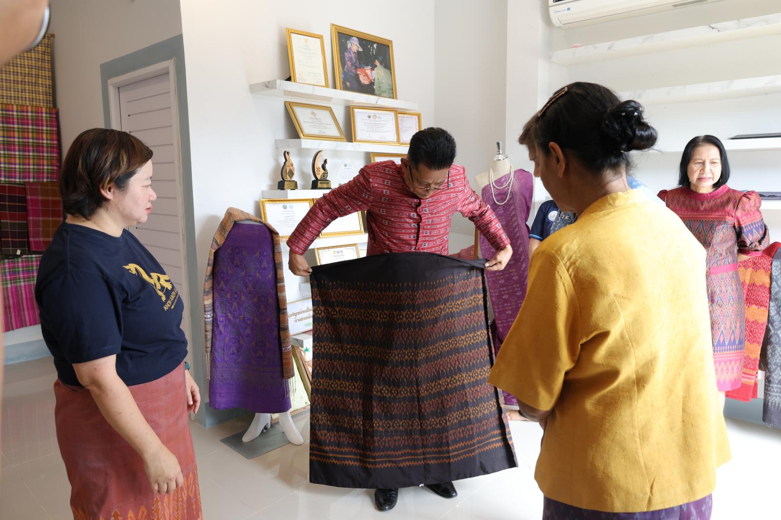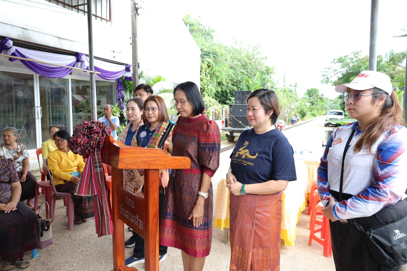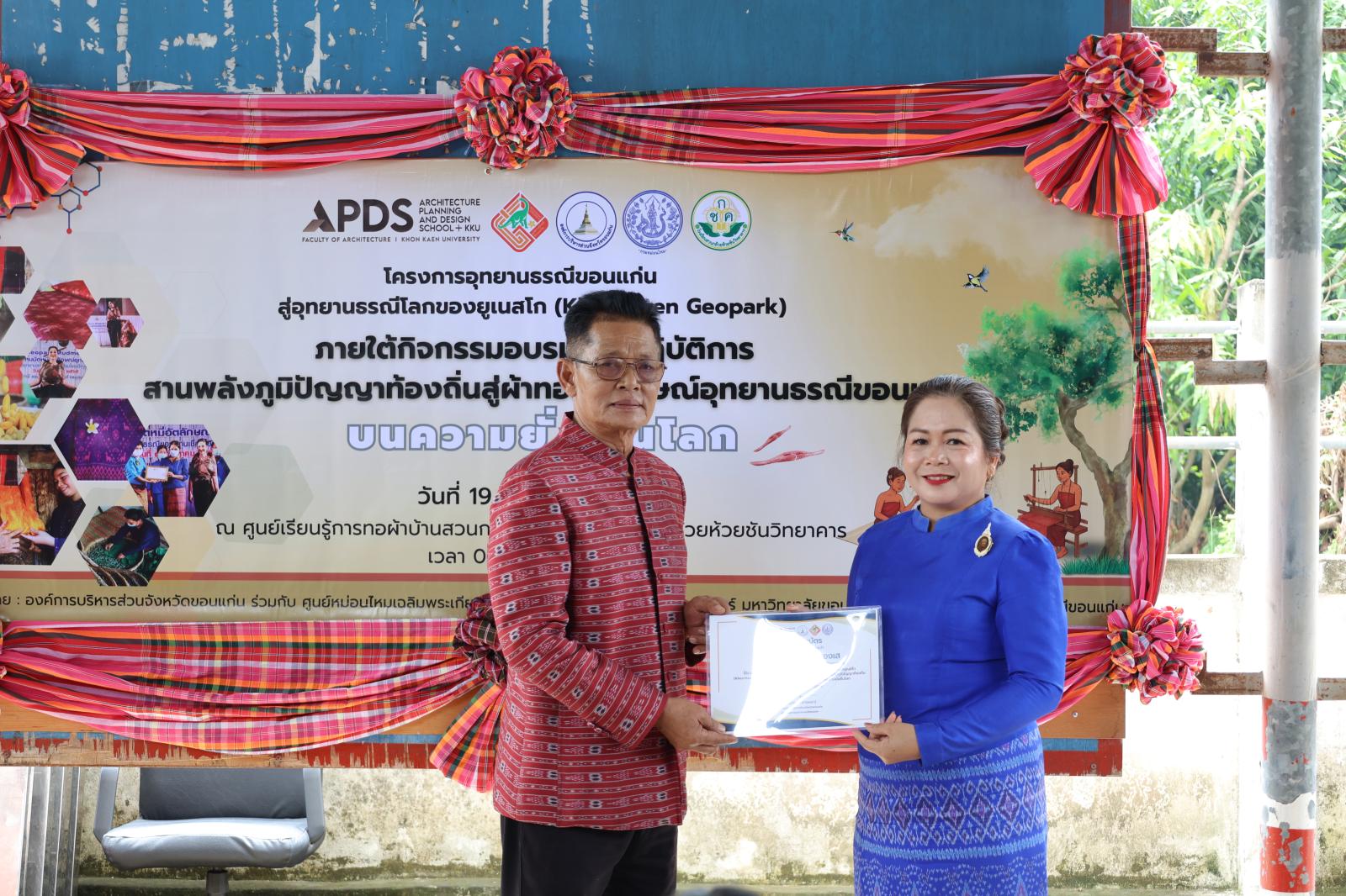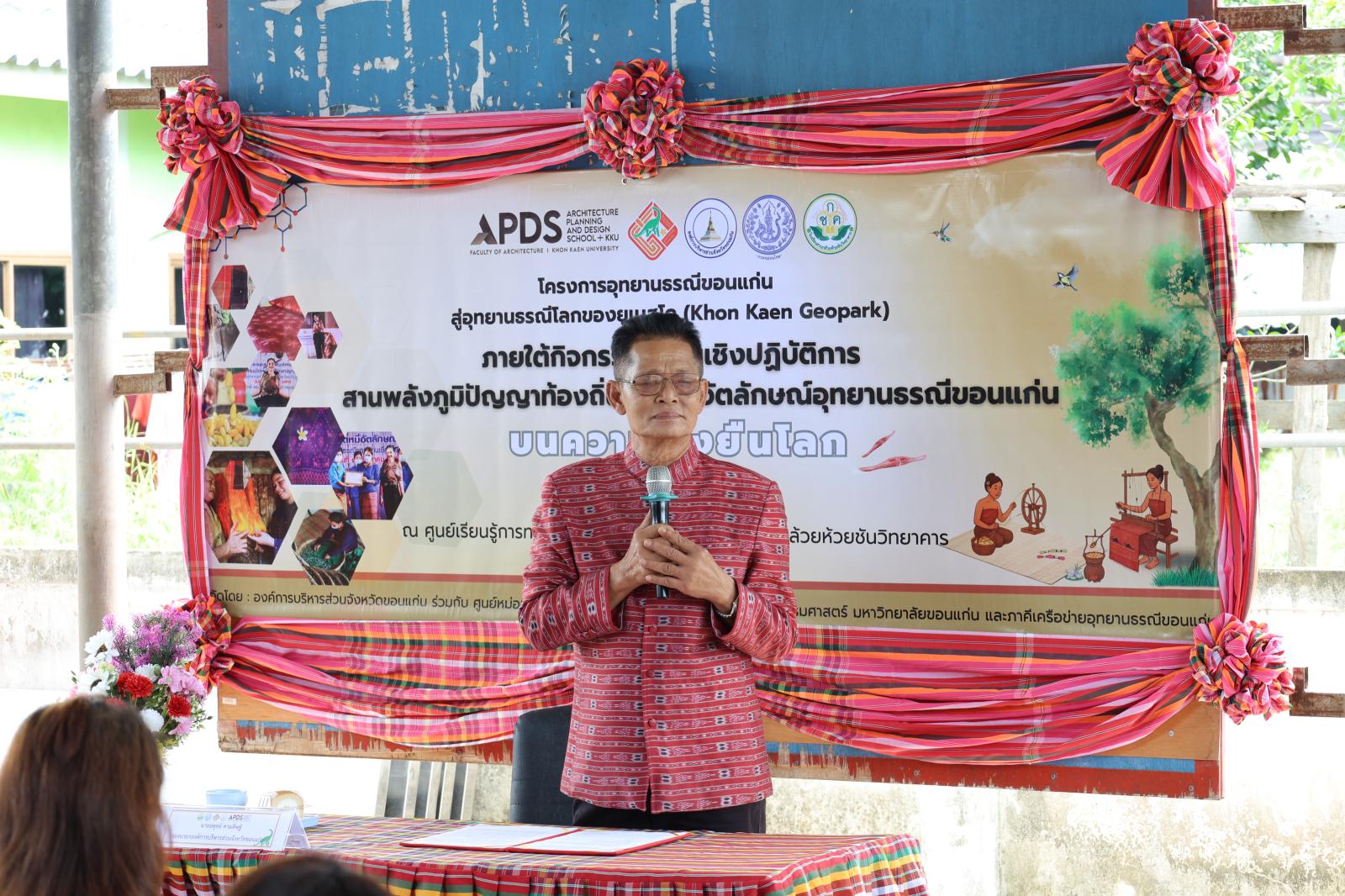 ภายใต้กิจกรรม อบรมเชิงปฏิบัติการสานพลังแห่งภูมิปัญญาท้องถิ่น สู่ผ้าทออัตลักษณ์อุทยานธรณีขอนแก่น บนเส้นทางความยั่งยืนโลก โดยมี นางสุภาพร ภูเงิน ผู้อำนวยการกองการท่องเที่ยวและกีฬา องค์การบริหารส่วนจังหวัดขอนแก่น กล่าวรายงาน ในโอกาสนี้ได้รับเกียรติจาก นางวิภา เรืองประเสริฐกุล สมาชิกองค์การบริหารส่วนจังหวัดขอนแก่น เขตอำเภอภูเวียง นางสุวรรณา วรรณศรี นายอำเภอภูเวียง หัวหน้าส่วนราชการ ชาวบ้าน รวมทั้งคณะครูและนักเรียนจากโรงเรียนสวนกล้วยห้วยชันวิทยาคาร เข้าร่วมกิจกรรมอย่างพร้อมเพรียง งานจัดขึ้น ณ ศูนย์เรียนรู้การทอผ้าไหมบ้านสวนกล้วย อำเภอภูเวียง จังหวัดขอนแก่น โดยมีวัตถุประสงค์เพื่อส่งเสริมภูมิปัญญาท้องถิ่น สร้างอัตลักษณ์ผ้าทอที่สะท้อนความโดดเด่นของอุทยานธรณีขอนแก่น และก้าวสู่มาตรฐานในระดับสากลอย่างยั่งยืน