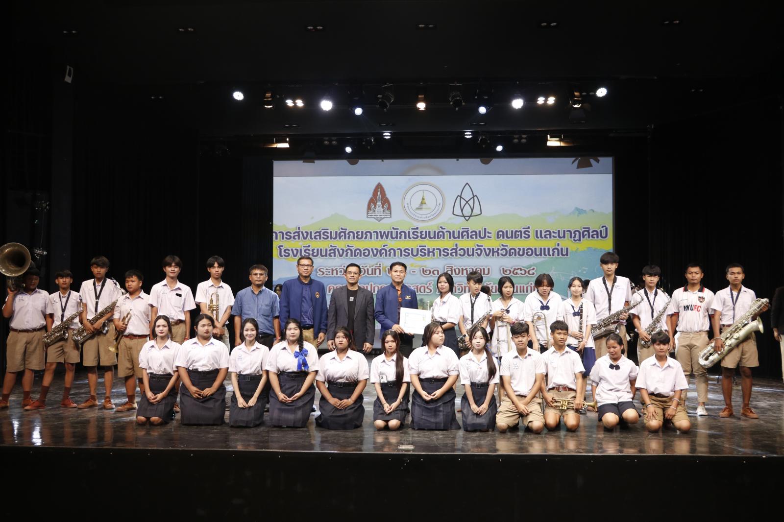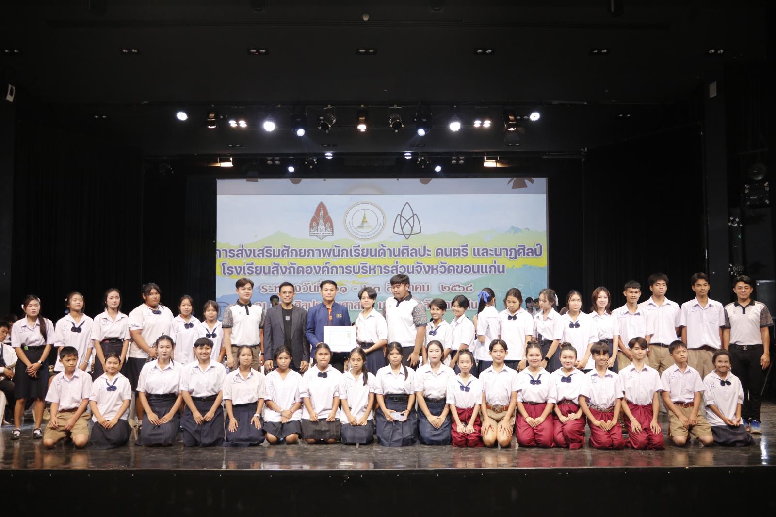 เมื่อวันที่ 23 สิงหาคม 2568 เวลา 13.30 น. องค์การบริหารส่วนจังหวัดขอนแก่น โดย นายวัฒนา ช่างเหลา นายก อบจ. ขอนแก่น มอบหมายให้ นายนำศิลป์ วิเศษ รองปลัด อบจ. ขอนแก่น เป็นประธานในพิธีเปิด โครงการส่งเสริมศักยภาพนักเรียนด้านศิลปะ ดนตรี และนาฏศิลป์ สำหรับโรงเรียนในสังกัด อบจ. ขอนแก่น