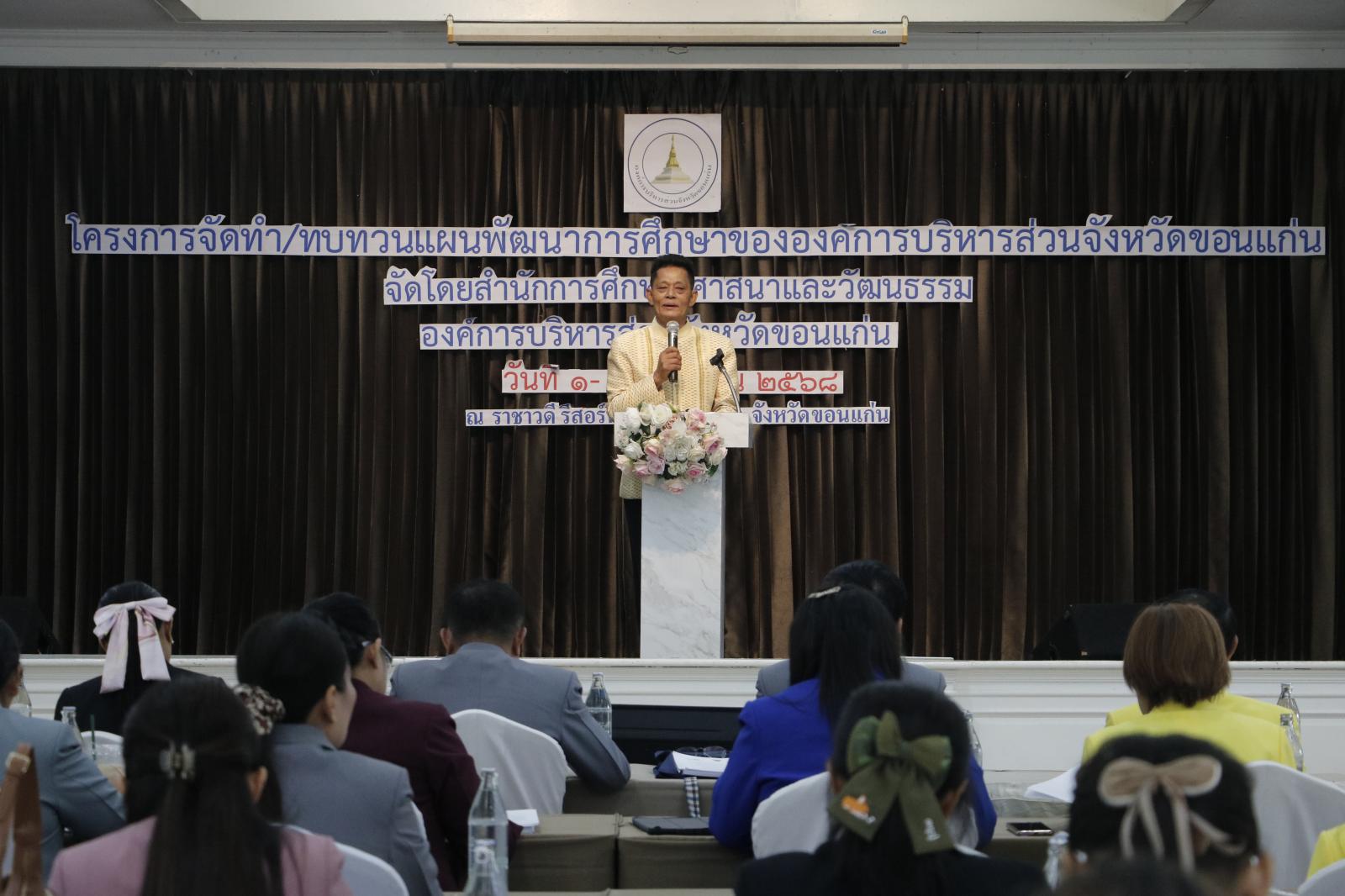 เมื่อวันที่ 1 กันยายน 2568 เวลา 09.30 น. นายวัฒนา ช่างเหลา นายกองค์การบริหารส่วนจังหวัดขอนแก่น มอบหมายให้ นายอดุลย์ คามดิษฐ์ รองนายกองค์การบริหารส่วนจังหวัดขอนแก่น เป็นประธานในพิธีเปิด โครงการจัดทำ/ทบทวนแผนพัฒนาการศึกษาขององค์การบริหารส่วนจังหวัดขอนแก่นภายในงาน นางวรรณภา พุดสี ผู้อำนวยการสำนักการศึกษา ศาสนาและวัฒนธรรม ได้กล่าวรายงาน พร้อมด้วย นางอาซีซะห์ ว่องไว รองปลัดองค์การบริหารส่วนจังหวัดขอนแก่น ผู้บริหารสถานศึกษา คณะครู และบุคลากรทางการศึกษาที่เกี่ยวข้อง เข้าร่วมอย่างคับคั่งการจัดโครงการครั้งนี้จัดขึ้น ณ โรงแรมราชาวดีรีสอร์ท แอนด์ โฮเทล อำเภอเมือง จังหวัดขอนแก่น เพื่อเป็นเวทีแลกเปลี่ยนความคิดเห็น กำหนดทิศทาง และยกระดับคุณภาพการศึกษาในจังหวัดขอนแก่น ให้ก้าวทันการเปลี่ยนแปลงของสังคม และสร้างโอกาสที่มั่นคงแก่เด็กและเยาวชนในอนาคต