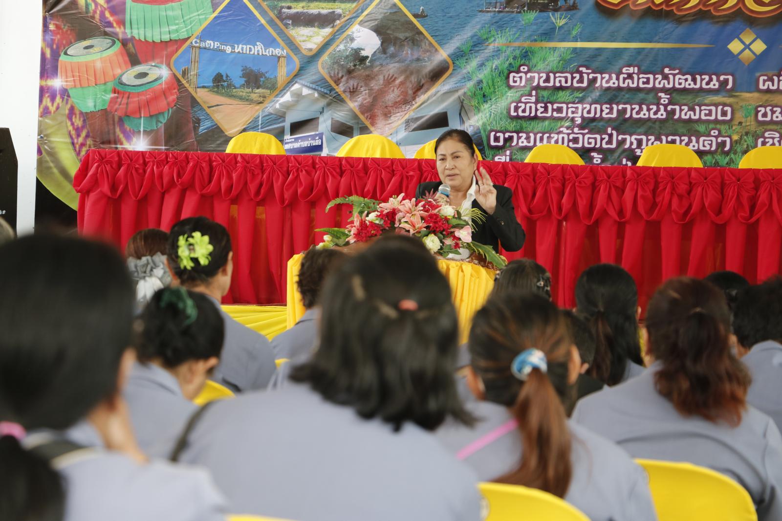 • แพทย์หญิงเรียมใจ พลเวียง ผู้อำนวยการโรงพยาบาลหนองเรือ กล่าวรายงาน