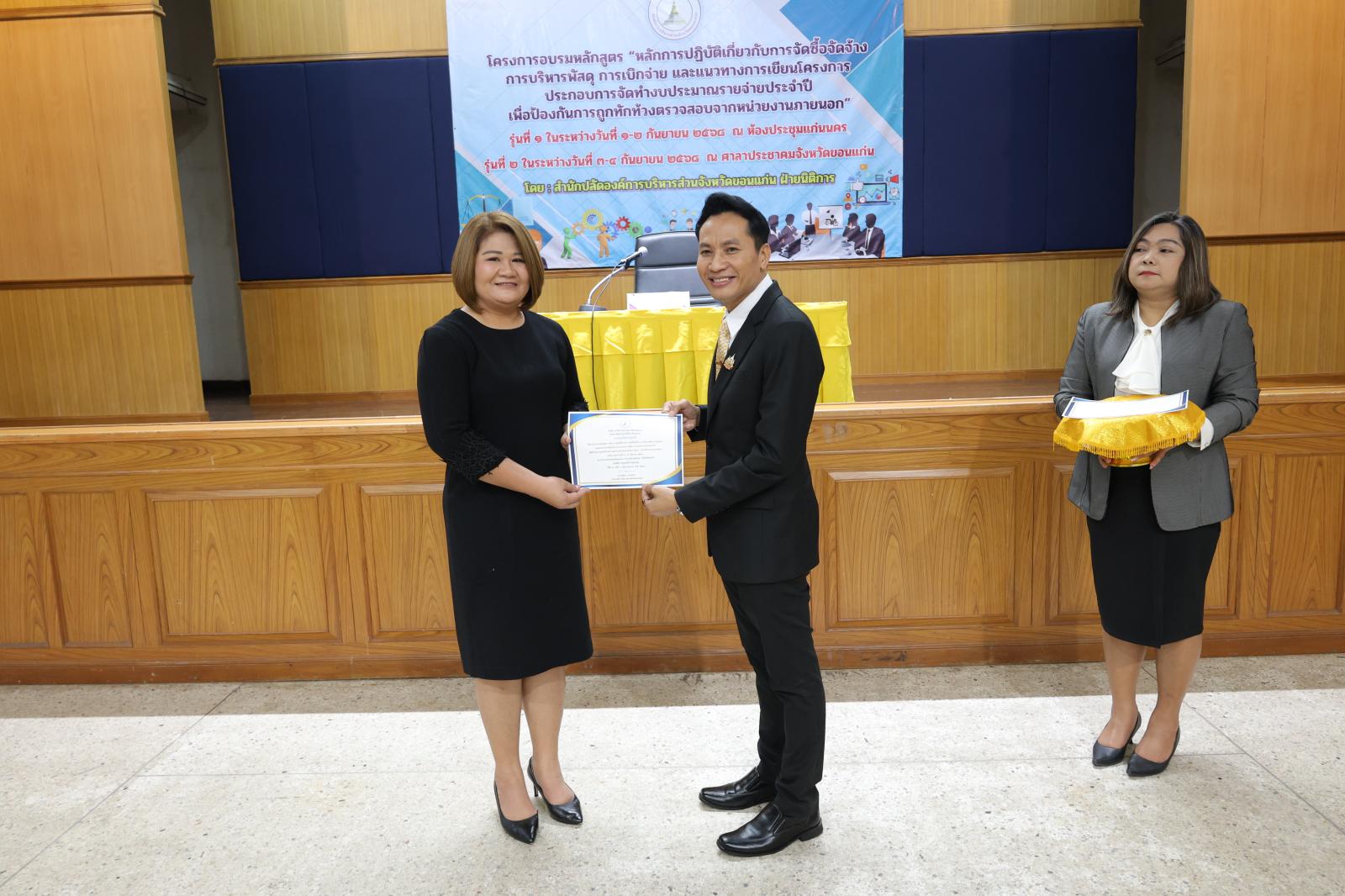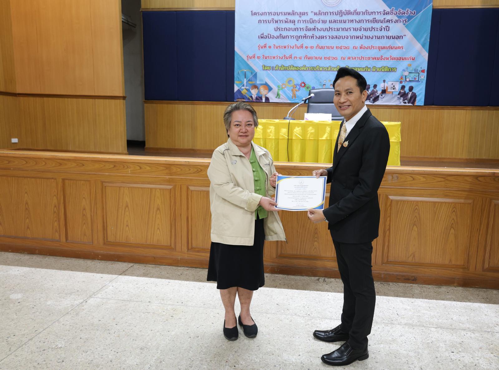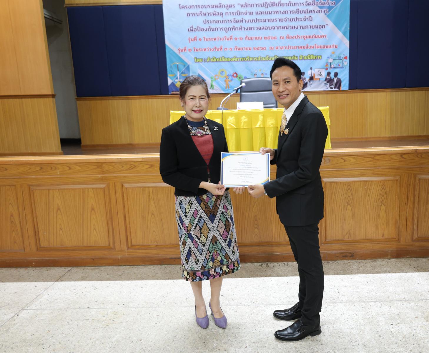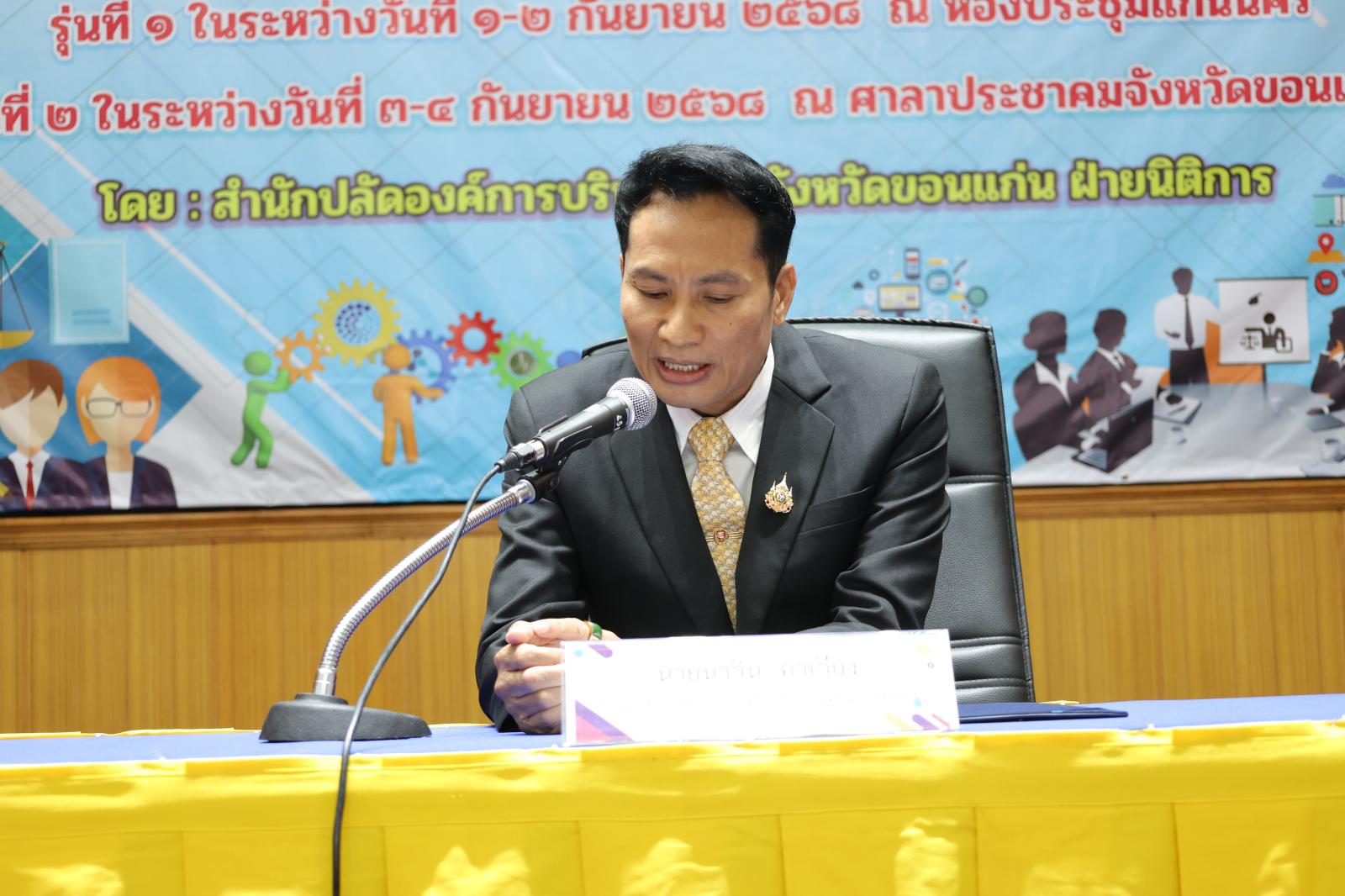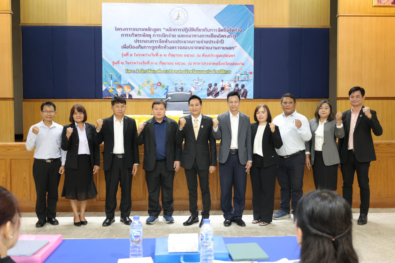 องค์การบริหารส่วนจังหวัดขอนแก่น นำโดย นายวัฒนา ช่างเหลา นายก อบจ.ขอนแก่น มอบหมายให้ นายนาวิน คำเวียง รองนายก อบจ.ขอนแก่น เป็นประธานในพิธีเปิด โครงการอบรมหลักสูตร “หลักการปฏิบัติเกี่ยวกับการจัดซื้อจัดจ้าง การบริหารพัสดุ การเบิกจ่าย และแนวทางการเขียนโครงการประกอบการจัดทำงบประมาณรายจ่ายประจำปี เพื่อป้องกันการถูกทักท้วงจากหน่วยตรวจสอบภายนอก” ประจำปีงบประมาณ 2568 รุ่นที่ 2