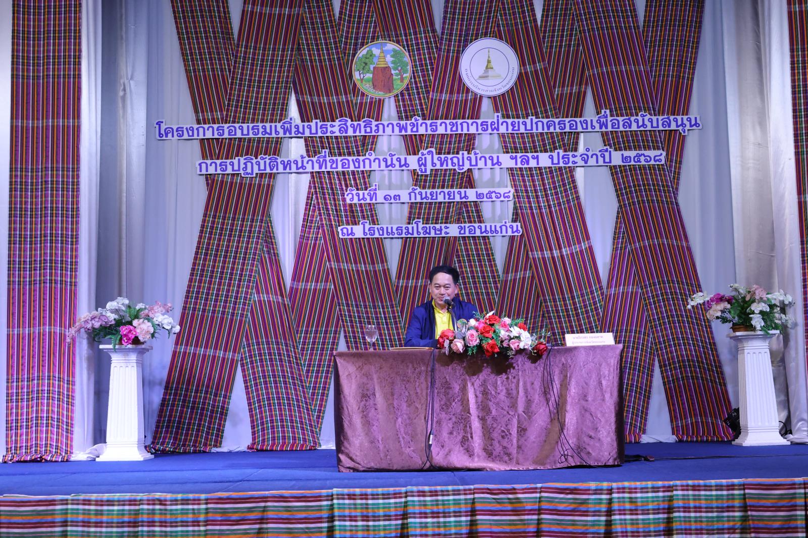 สนับสนุนงบประมาณจัด โครงการอบรมเพิ่มประสิทธิภาพข้าราชการฝ่ายปกครองเพื่อสนับสนุนการปฏิบัติหน้าที่ของกำนัน ผู้ใหญ่บ้าน ประจำปี 2568