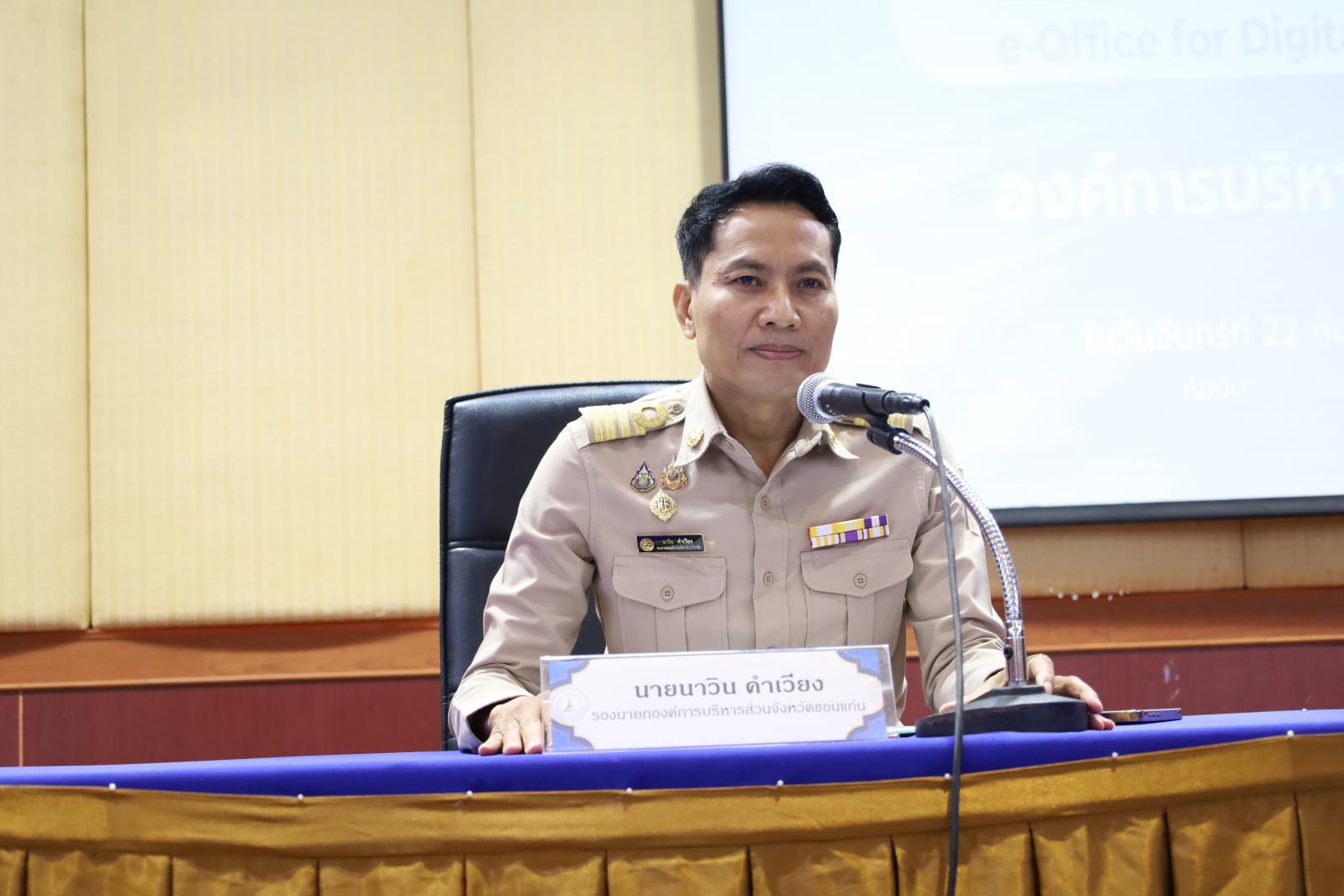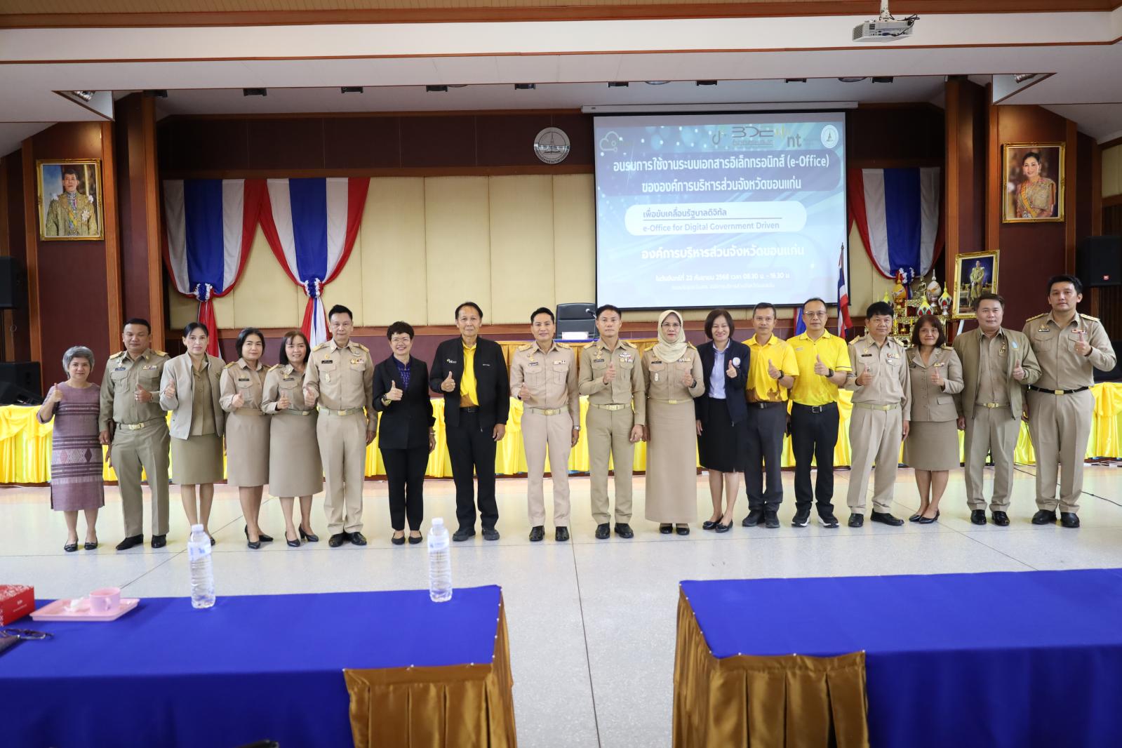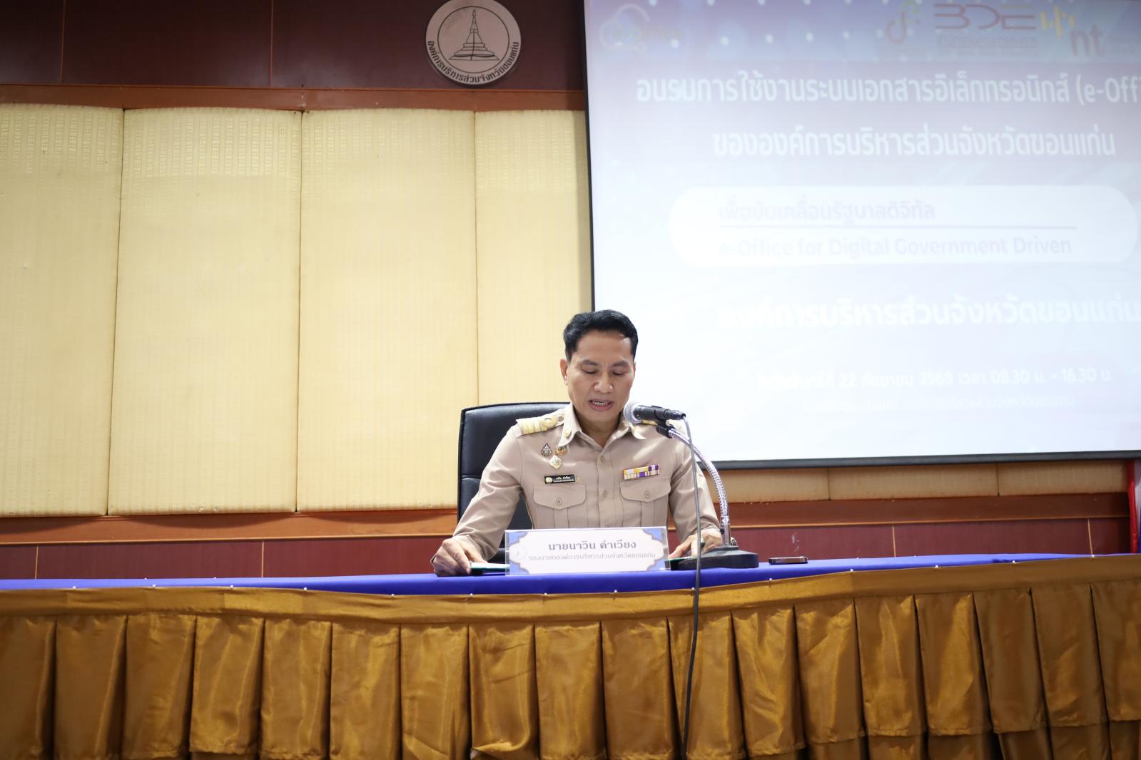 นที่ 22 กันยายน 2568 เวลา 09.00 น. องค์การบริหารส่วนจังหวัดขอนแก่น นำโดย นายวัฒนา ช่างเหลา นายกองค์การบริหารส่วนจังหวัดขอนแก่น มอบหมายให้ นายนาวิน คำเวียง รองนายกองค์การบริหารส่วนจังหวัดขอนแก่น เป็นประธานเปิดโครงการอบรมการใช้งานระบบเอกสารอิเล็กทรอนิกส์ (e-Office) ณ ห้องประชุมแก่นนคร อบจ.ขอนแก่น