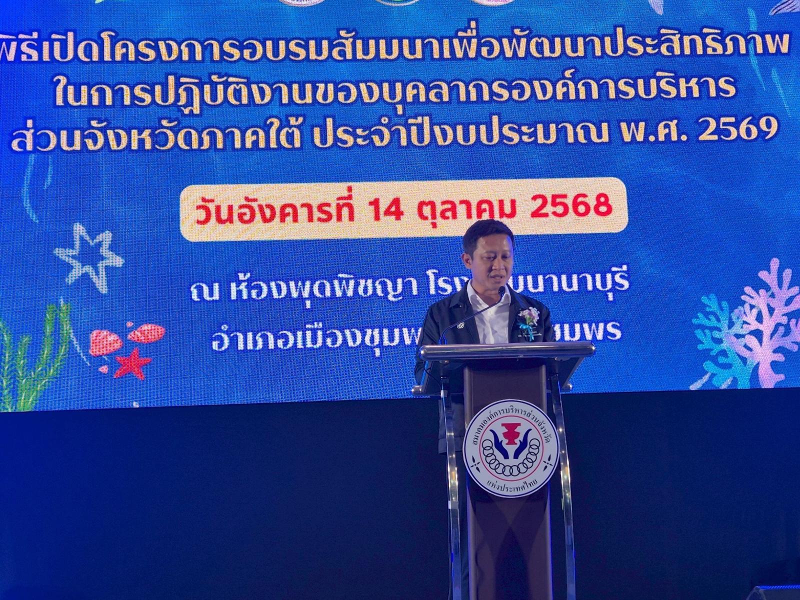 เข้าร่วมพิธีเปิด โครงการอบรมสัมมนาเพื่อพัฒนาประสิทธิภาพในการปฏิบัติงานของบุคลากรองค์การบริหารส่วนจังหวัดภาคใต้