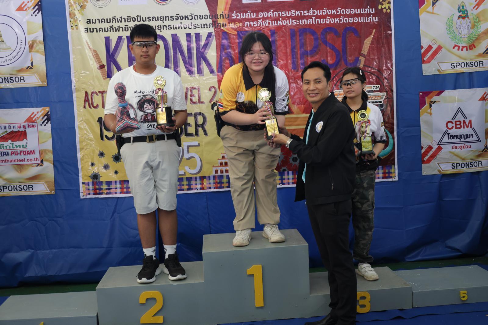 องค์การบริหารส่วนจังหวัดขอนแก่น นำโดย นายวัฒนา ช่างเหลา นายกองค์การบริหารส่วนจังหวัดขอนแก่น มอบหมายให้ นายนาวิน คำเวียง รองนายกองค์การบริหารส่วนจังหวัดขอนแก่น เป็นประธานในพิธี มอบรางวัลการแข่งขันกีฬายิงปืนอัดลมเบา “Khonkaen IPSC Action Air 2025 Level 2”