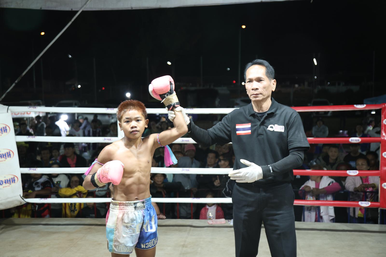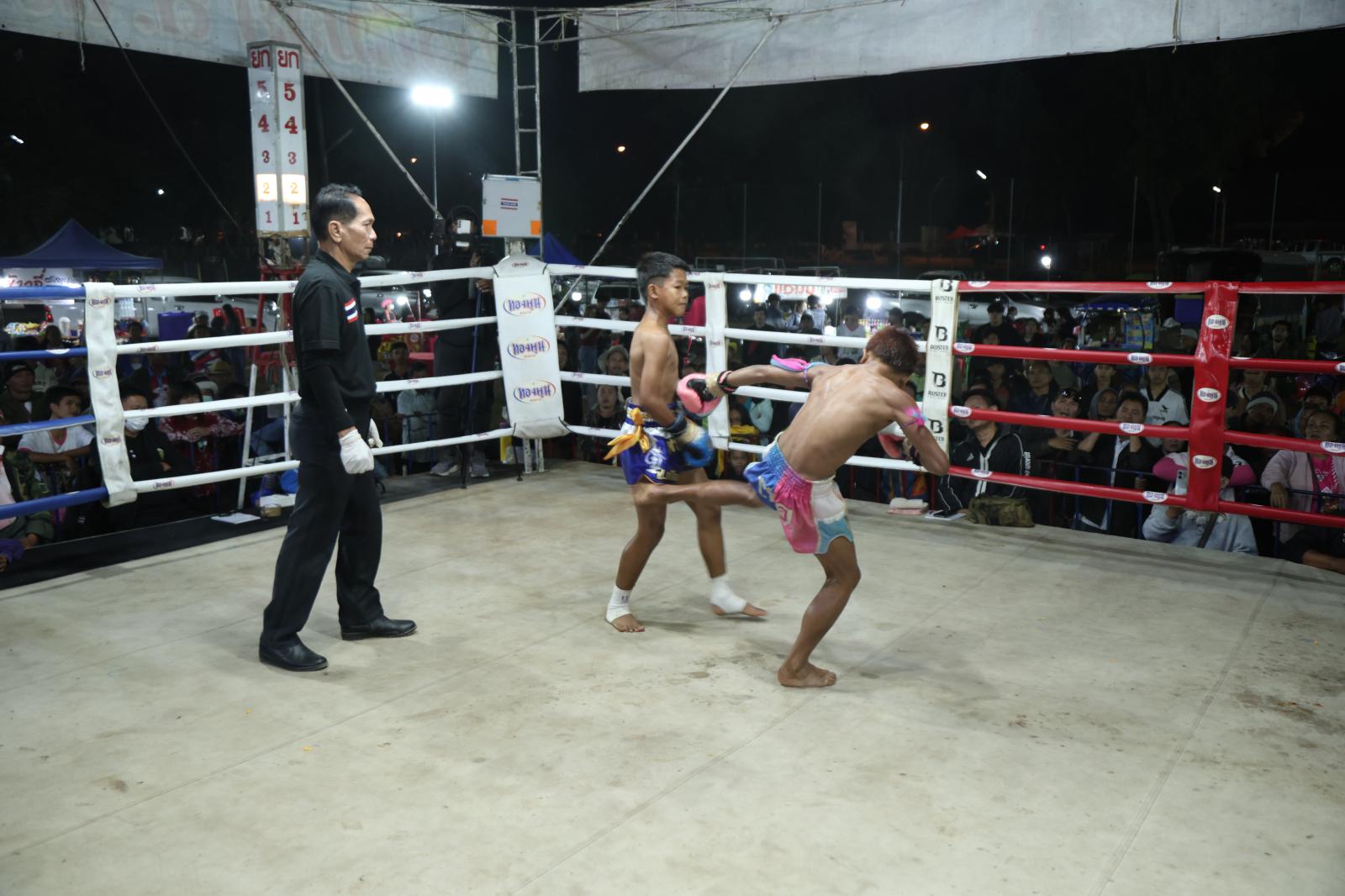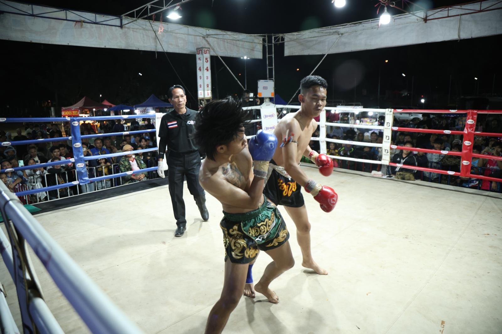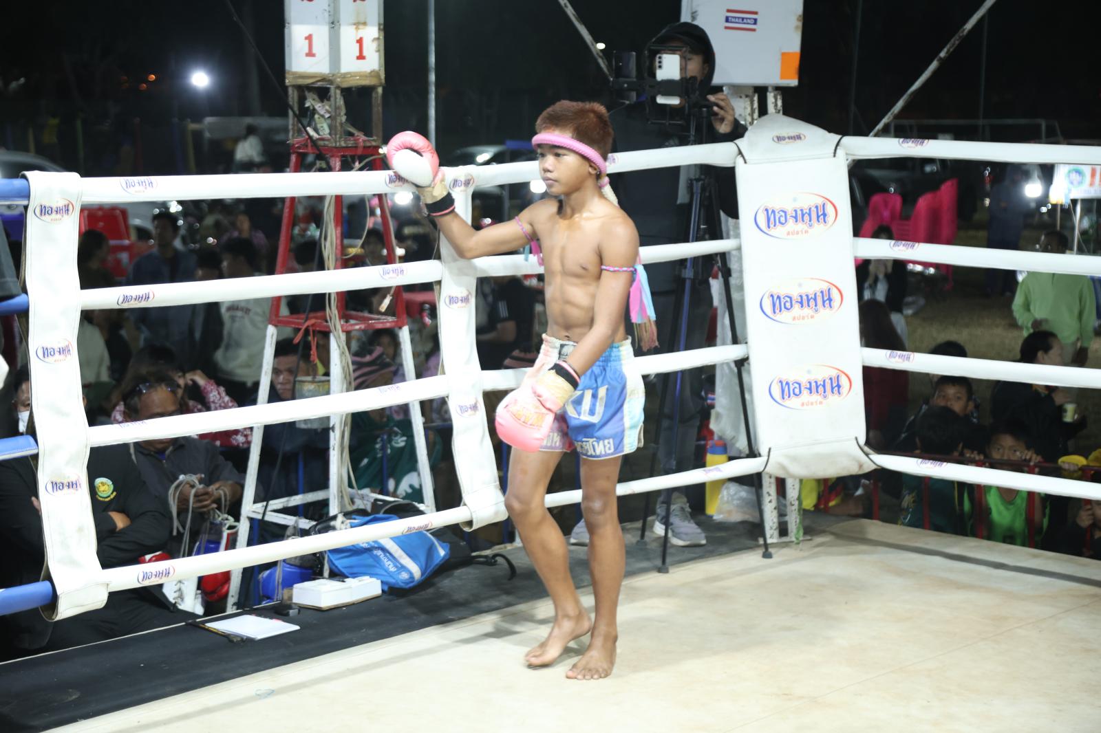 ณ เวทีมวยชั่วคราวองค์การบริหารส่วนตำบลดูนสาด อ.กระนวน จ.ขอนแก่น