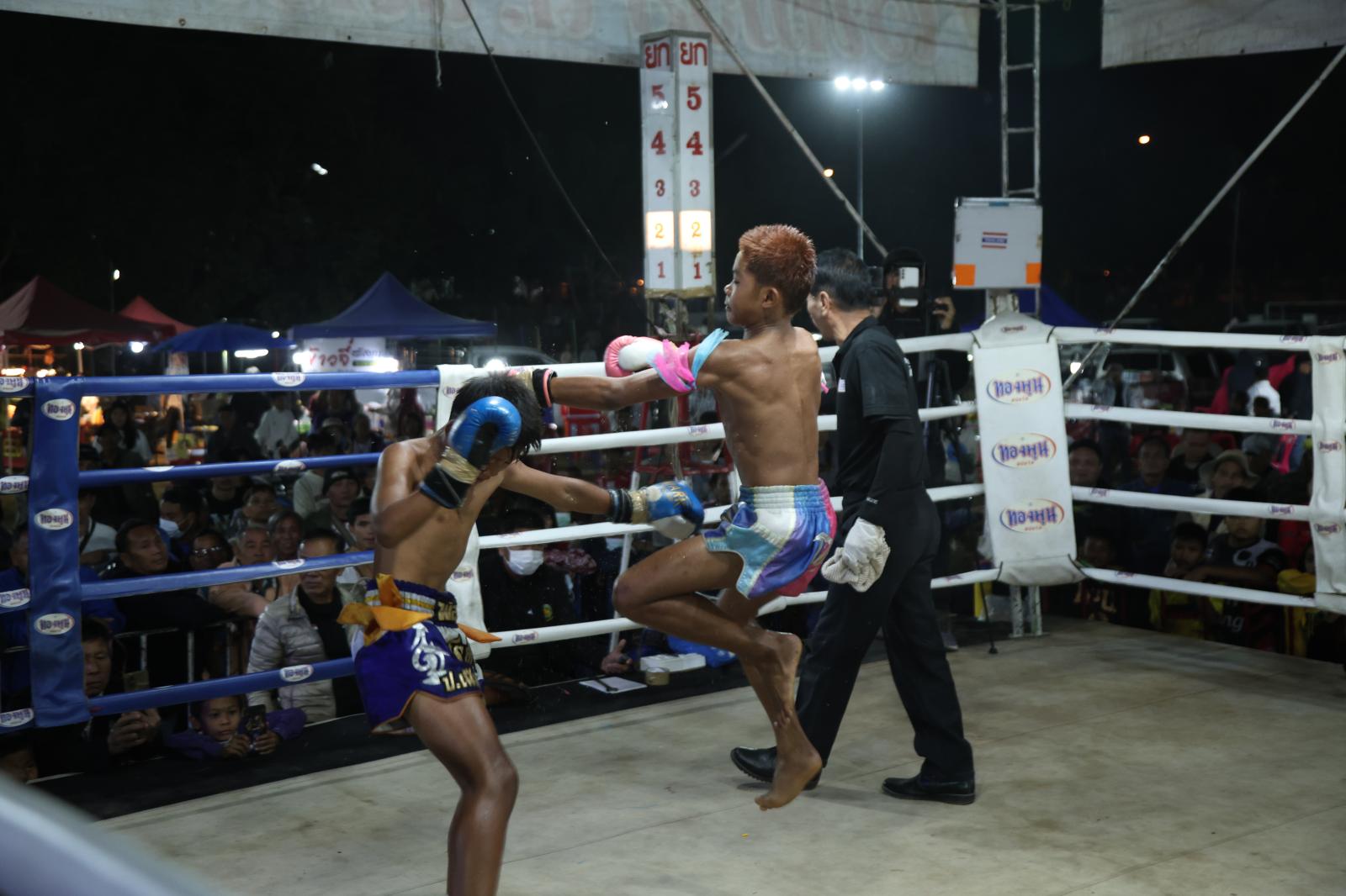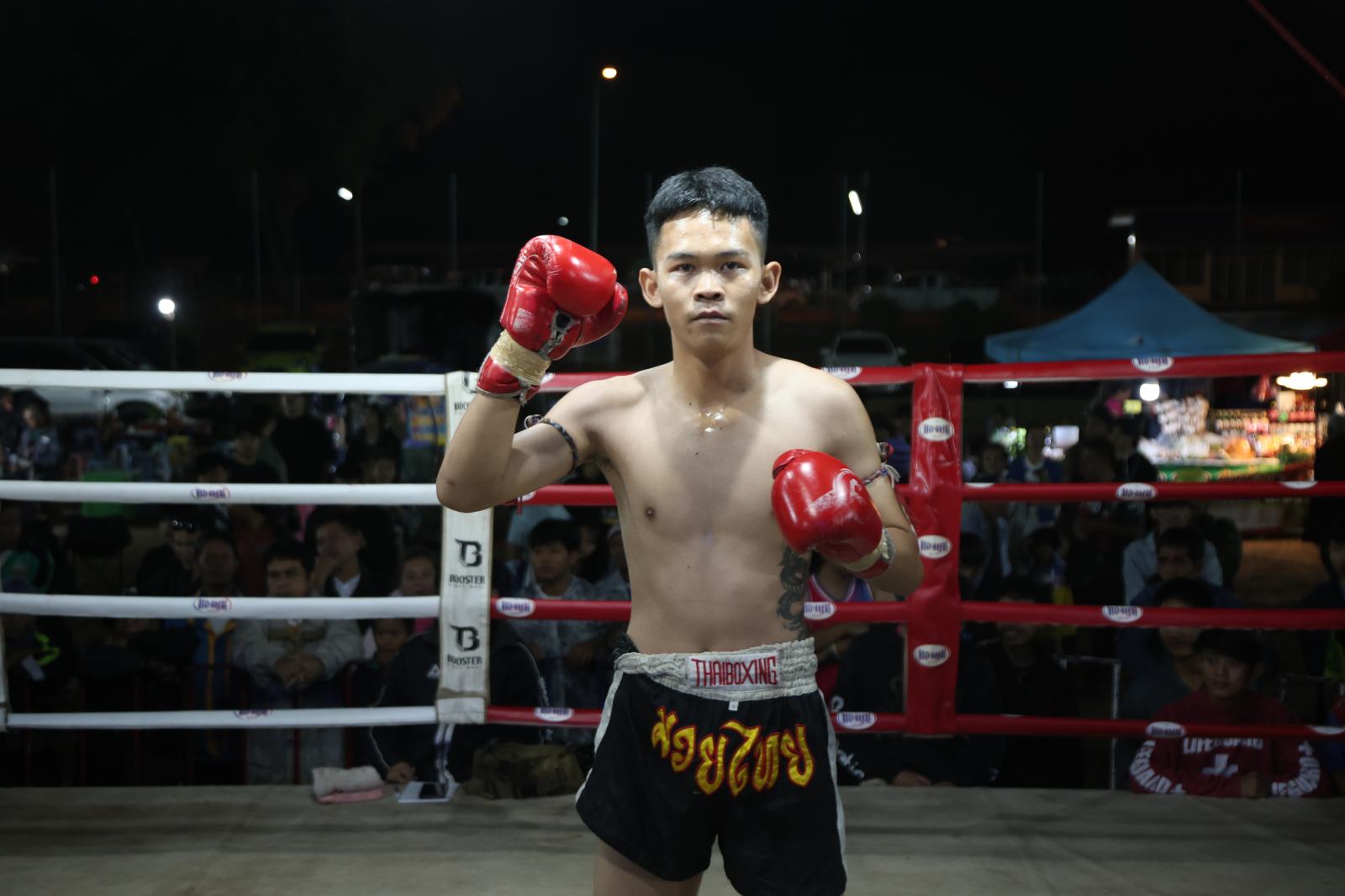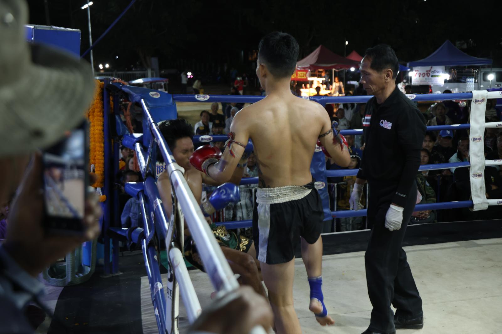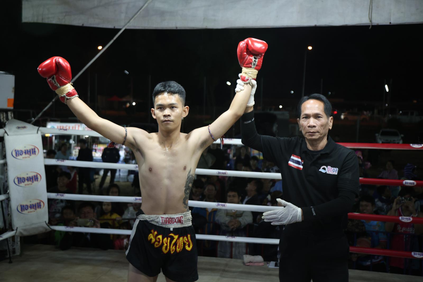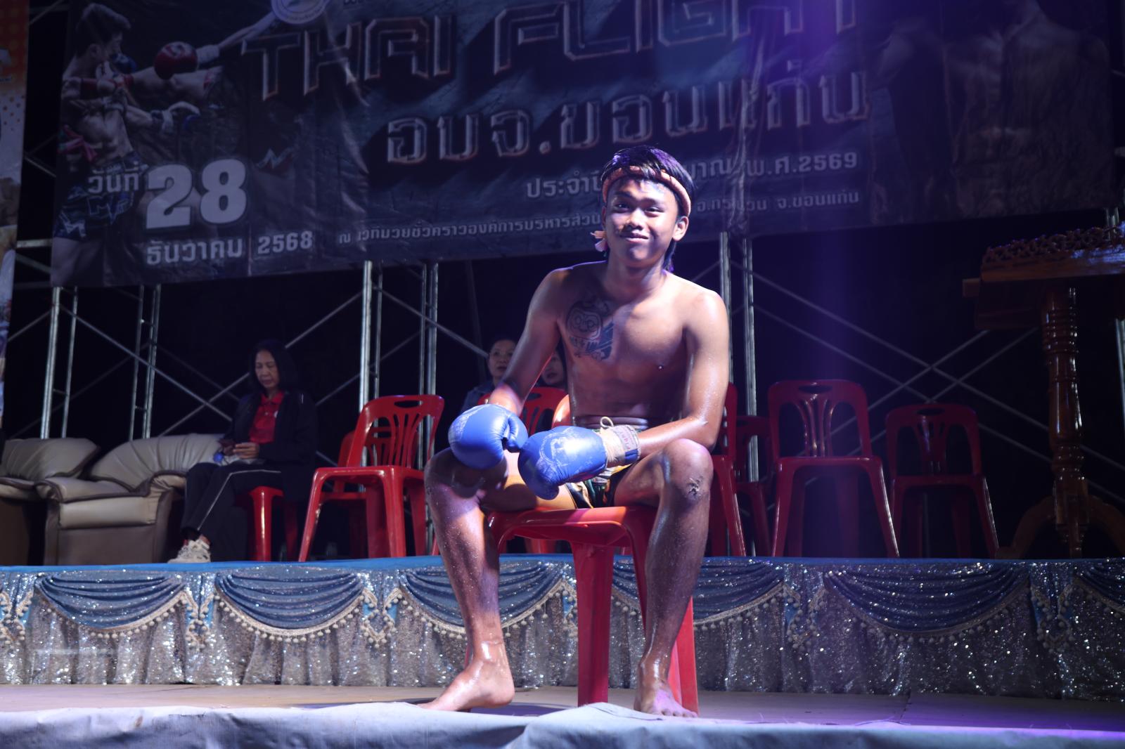 ณ เวทีมวยชั่วคราวองค์การบริหารส่วนตำบลดูนสาด อ.กระนวน จ.ขอนแก่น