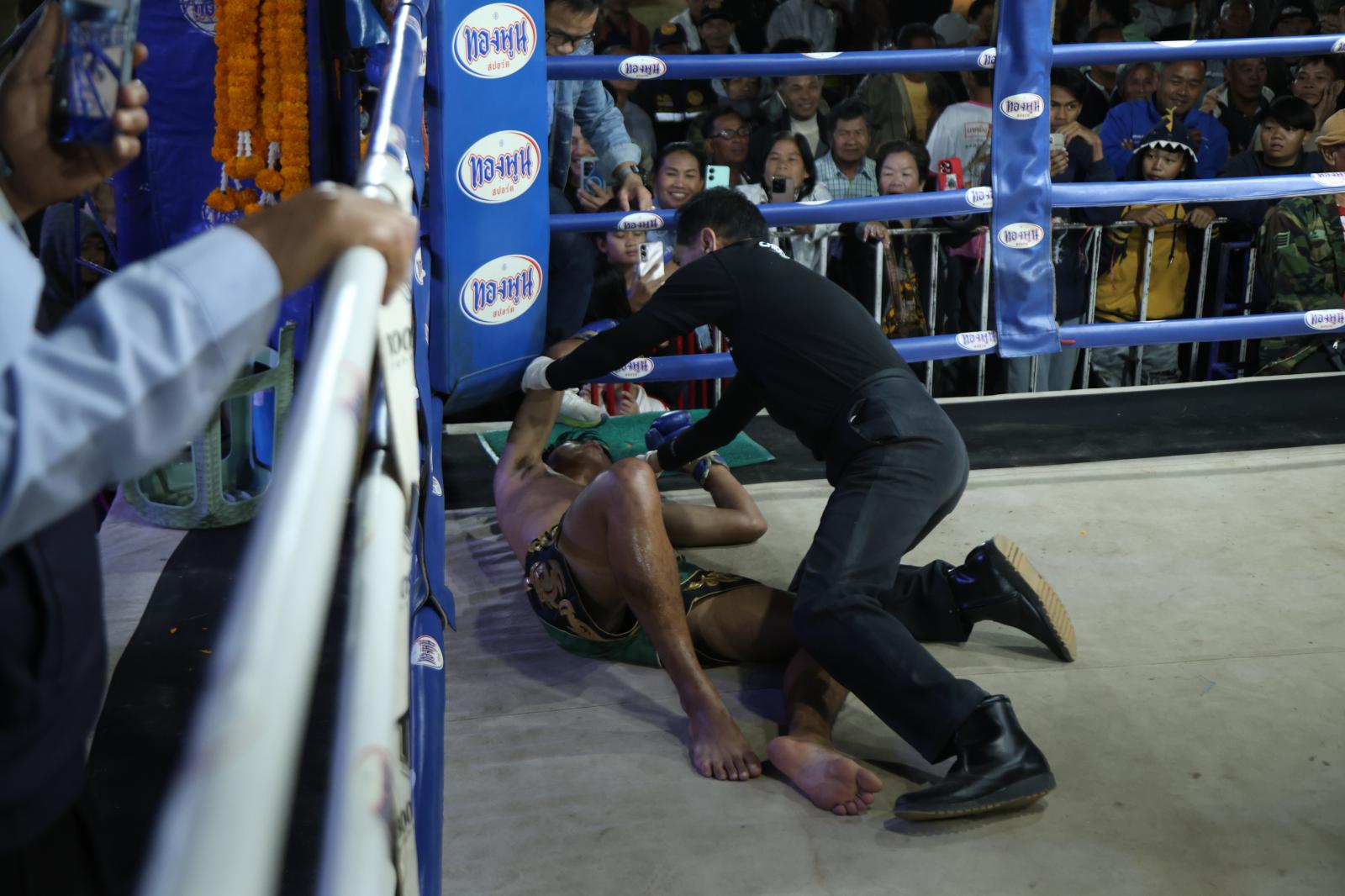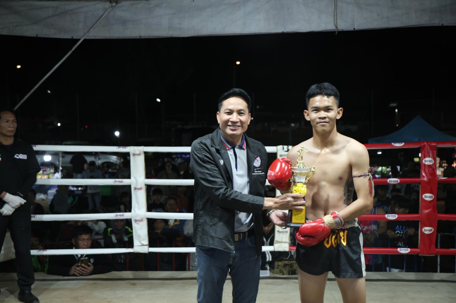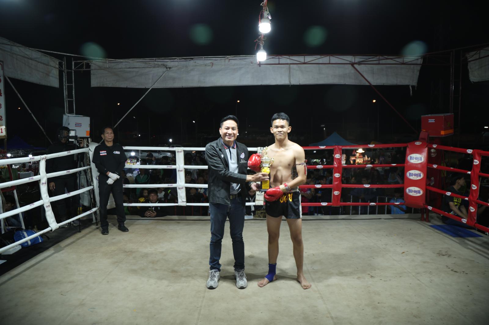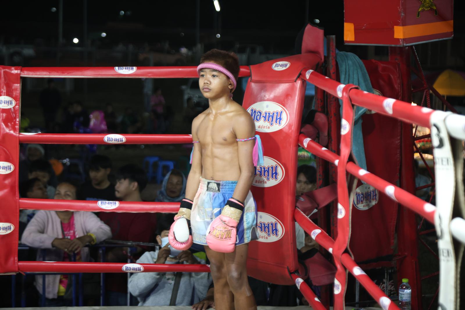 ณ เวทีมวยชั่วคราวองค์การบริหารส่วนตำบลดูนสาด อ.กระนวน จ.ขอนแก่น