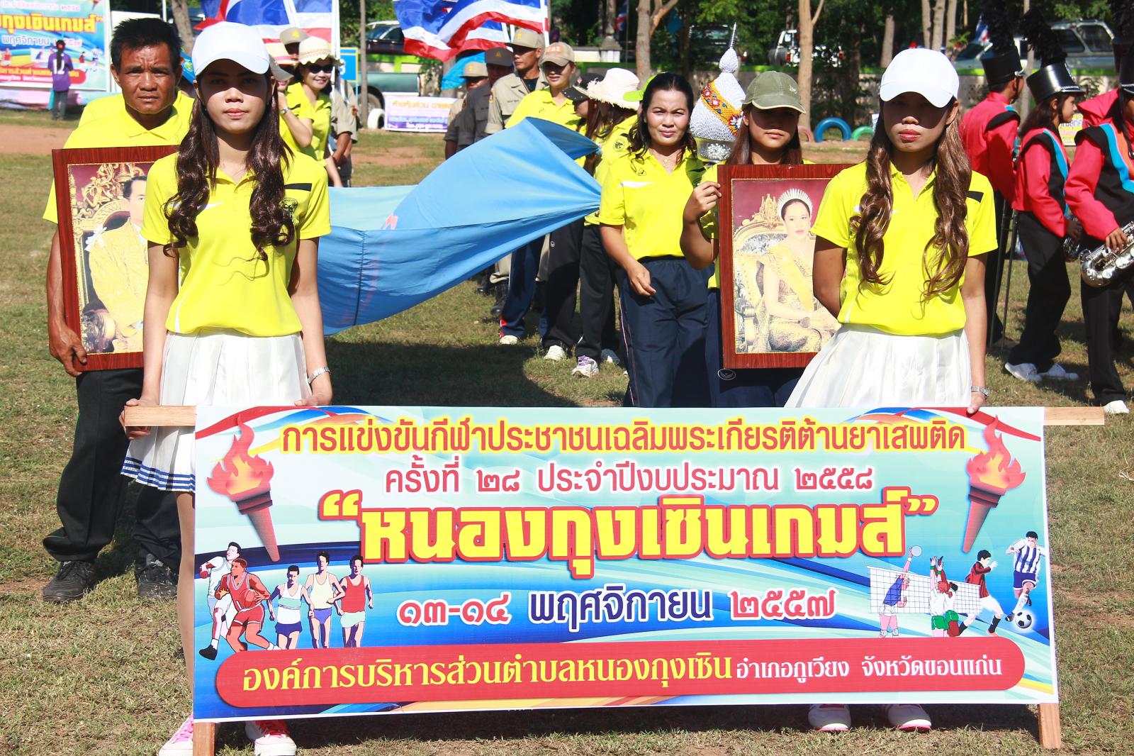 เมื่อวันที่ ๑๓ พฤศจิกายน ๒๕๕๗ นายก อบจ.ขอนแก่น ดร.พงษ์ศักดิ์ ตั้งวานิชกพงษ์ มอบหมายให้ รองนายก อบจ.ขอนแก่น นายสิทธิกุล ภูคำวงศ์ เป็นประธานในพิธีเปิดการแข่งขันกีฬาประชาชนเฉลิม พระเกียรติต้านยาเสพติด ครั้งที่ ๑๘ ประจำปีงบประมาณ ๒๕๕๘ มีวัตถุประสงค์เพื่อให้ประชาชนในพื้นที่เกิดความสามัคคี และห่างไกลยาเสพติด ณ สนามกีฬาโรงเรียนโนนศิลาโนนม่วงวิทยา ต.หนองกุงเซิน อ.ภูเวียง จ.ขอนแก่น