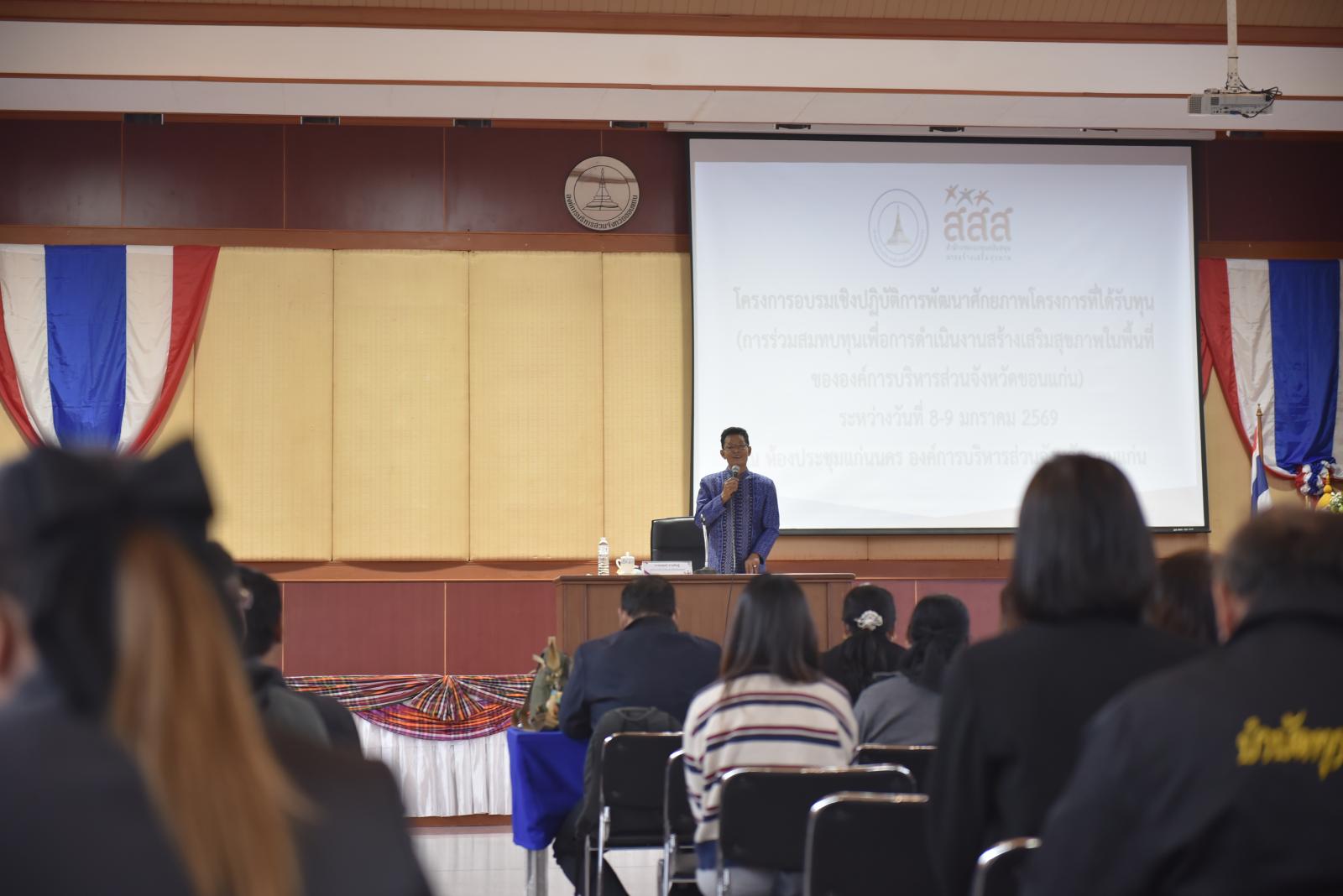 อบจ.ขอนแก่น เปิดโครงการอบรมเชิงปฏิบัติการ พัฒนาผู้รับทุนยกระดับแผนงานสร้างเสริมสุขภาพในพื้นที่