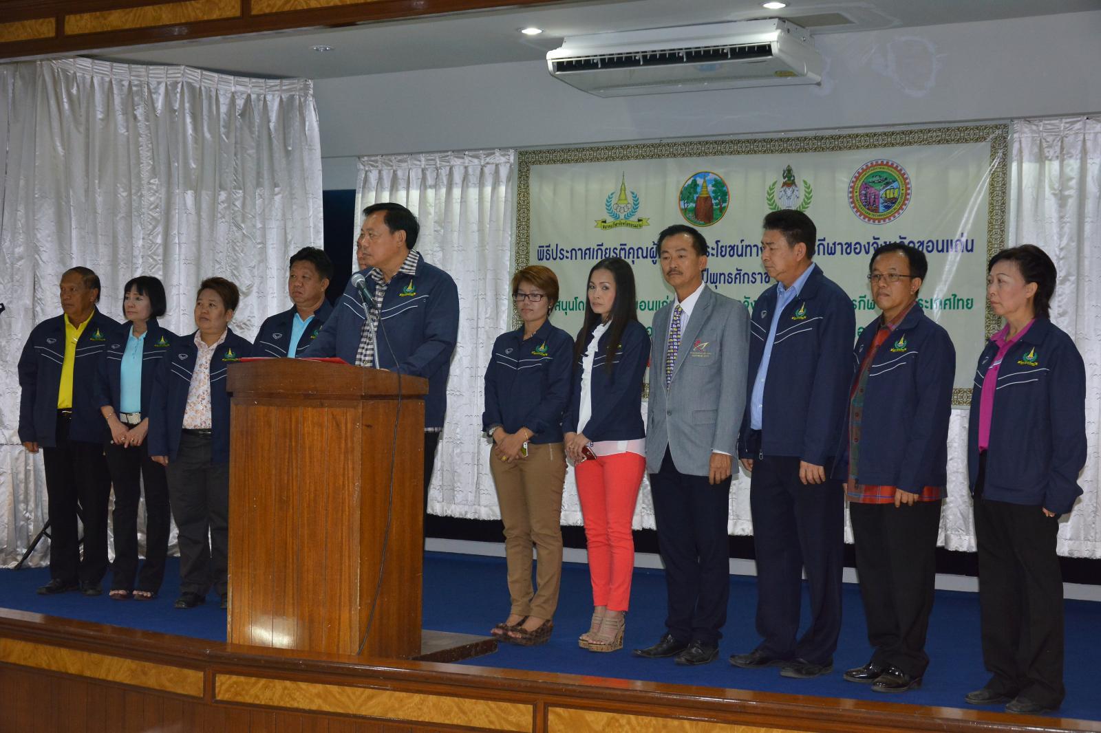 ดร.พงษ์ศักดิ์ ตั้งวานิชกพงษ์ นายกองค์การบริหารส่วนจังหวัดขอนแก่น เข้ารับโล่รางวัล ประกาศเกียรติคุณผู้ทำคุณประโยชน์ในด้านกีฬาจังหวัดขอนแก่น เมื่อวันที่ 14 พฤศจิกายน 2557 ที่ผ่านมา ณ หอประชุมวิทยาลัยเทคโนโลยีภาคตะวันออกเฉียงเหนือ