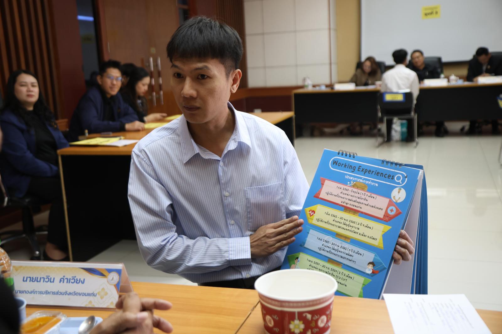 ในวันที่ 15 มกราคม 2569 เวลา 09.00 น. องค์การบริหารส่วนจังหวัดขอนแก่น นำโดย นายวัฒนา ช่างเหลา นายกองค์การบริหารส่วนจังหวัดขอนแก่น มอบหมายให้ นายนาวิน คำเวียง รองนายกองค์การบริหารส่วนจังหวัดขอนแก่น เป็นประธานในการประชุมคณะกรรมการประเมินความเหมาะสมกับตำแหน่ง(ภาค ค) ในการคัดเลือกกรณีที่มีเหตุพิเศษที่ไม่จำเป็นต้องสอบแข่งขัน เพื่อบรรจุและแต่งตั้งบุคคลเป็นข้าราชการองค์การบริหารส่วนจังหวัด สังกัด องค์การบริหารส่วนจังหวัดขอนแก่น ในโอกาสนี้มี ว่าที่ร้อยเอกพงเจตน์ พรกุณา ปลัดองค์การบริหารส่วนจังหวัดขอนแก่น, นายนำศิลป์ วิเศษ รองปลัดองค์การบริหารส่วนจังหวัดขอนแก่น, หัวหน้าส่วนราชการ เข้าร่วมการประชุม ณ ห้องประชุมแก่นนคร องค์การบริหารส่วนจังหวัดขอนแก่น