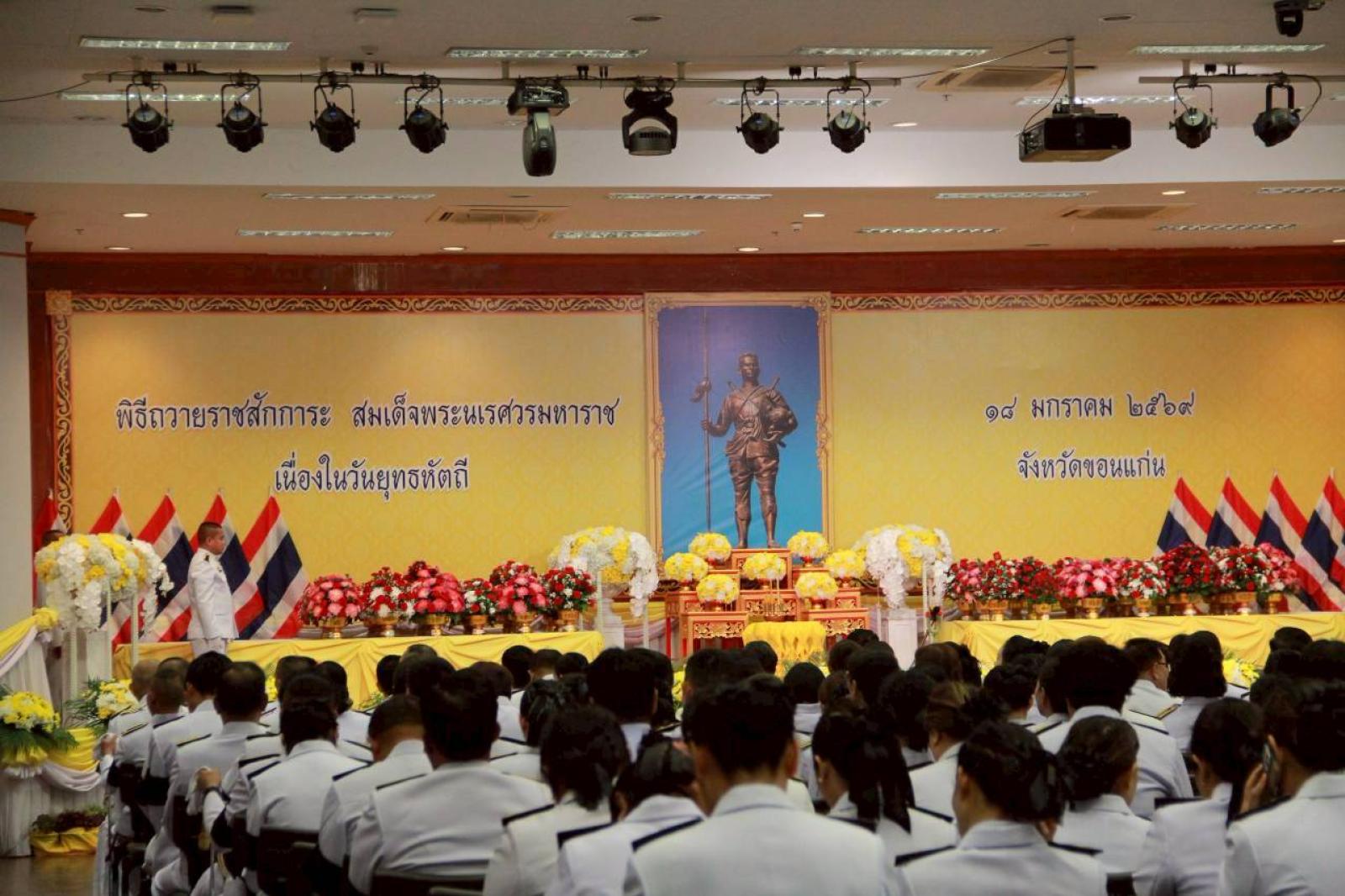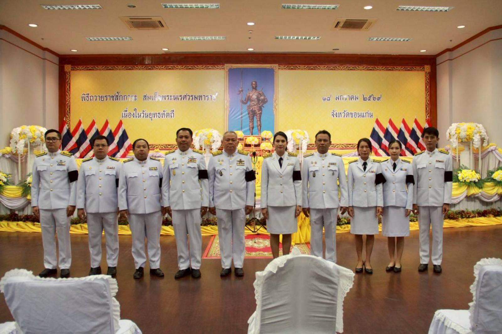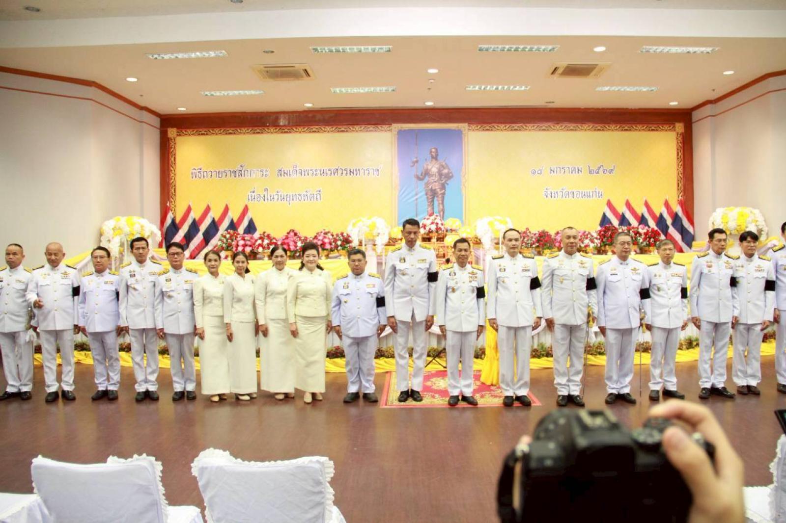 พิธีวางพานพุ่มดอกไม้สดเพื่อถวายราชสักการะสมเด็จพระนเรศวรมหาราช เนื่องในวันยุทธหัตถี 18 มกราคม 2569 จังหวัดขอนแก่น