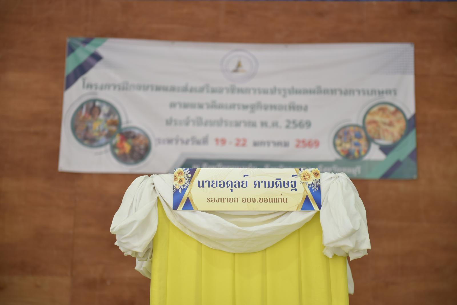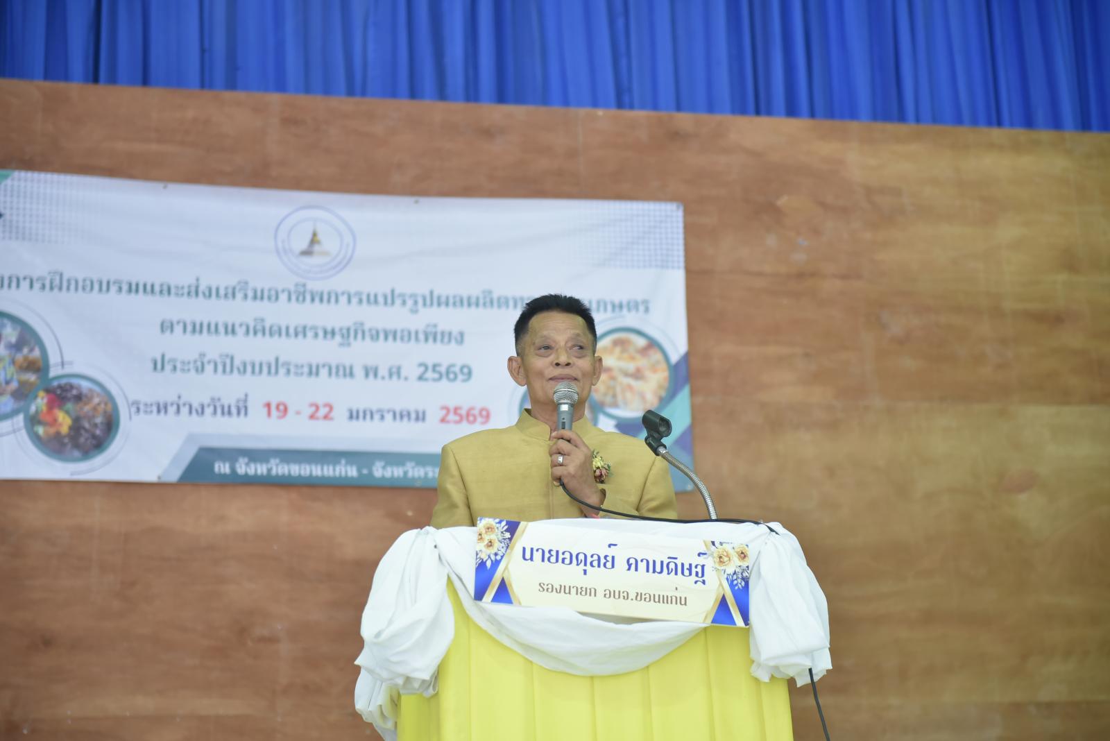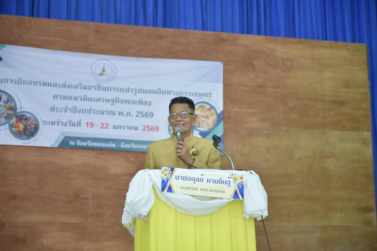 องค์การบริหารส่วนจังหวัดขอนแก่น นำโดย นายวัฒนา ช่างเหลา นายกองค์การบริหารส่วนจังหวัดขอนแก่น มอบหมายให้ นายอดุลย์ คามดิษฐ์ รองนายกองค์การบริหารส่วนจังหวัดขอนแก่น เป็นประธานในพิธีเปิดโครงการฝึกอบรมและส่งเสริมอาชีพการแปรรูปผลผลิตทางการเกษตร ตามแนวคิดเศรษฐกิจพอเพียง ประจำปีงบประมาณ 2569