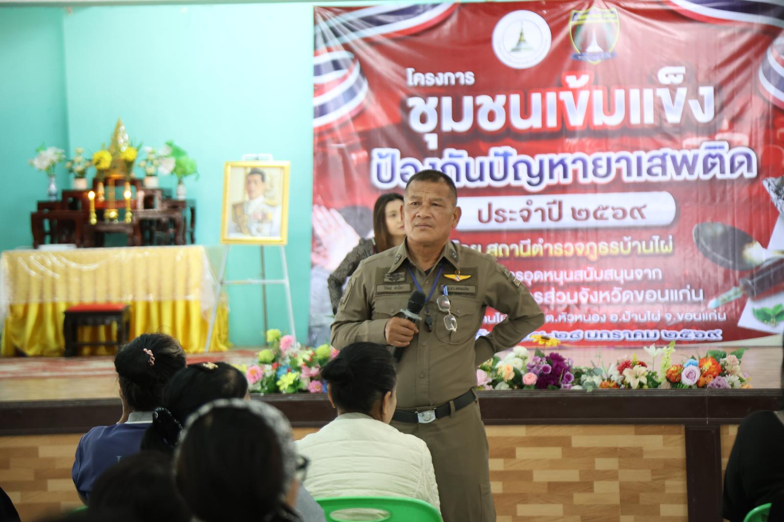 ในการนี้มี ผู้กำกับสถานีตำรวจภูธรบ้านไผ่ คณะวิทยากรจากสถานีตำรวจภูธรบ้านไผ่ ผู้นำชุมชน ผู้นำท้องที่ ผู้บริหารสถานศึกษา คณะครู นักเรียน และประชาชนผู้เข้าร่วมโครงการดังกล่าว
