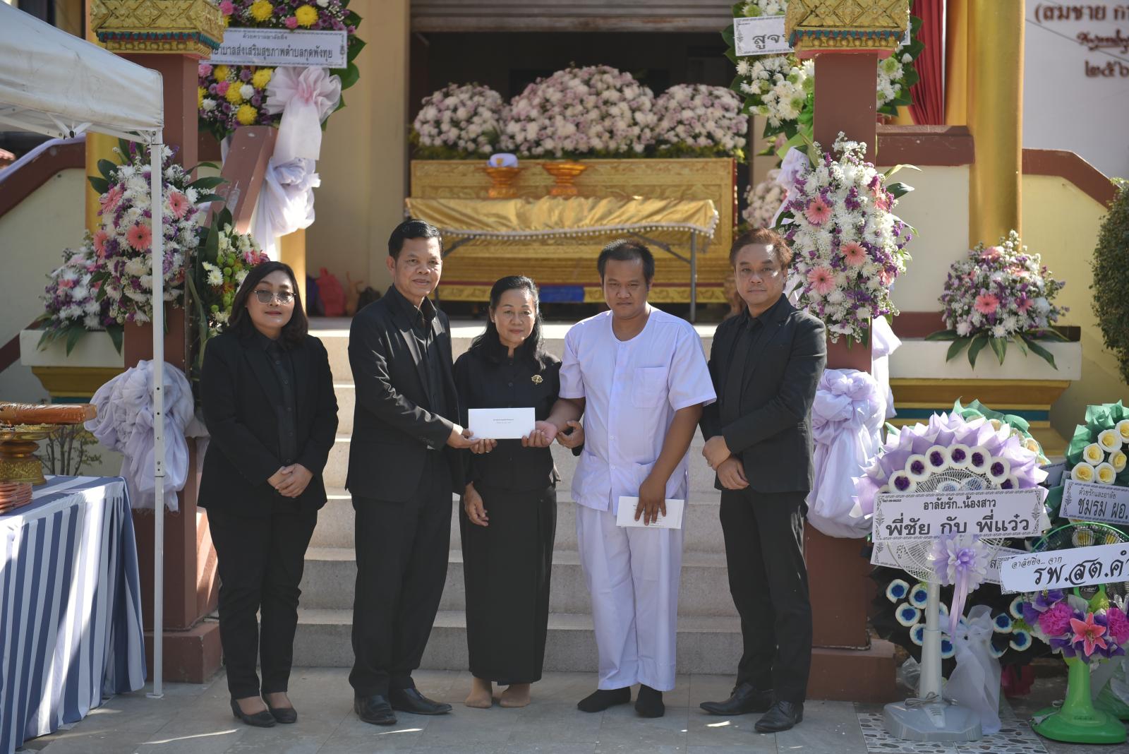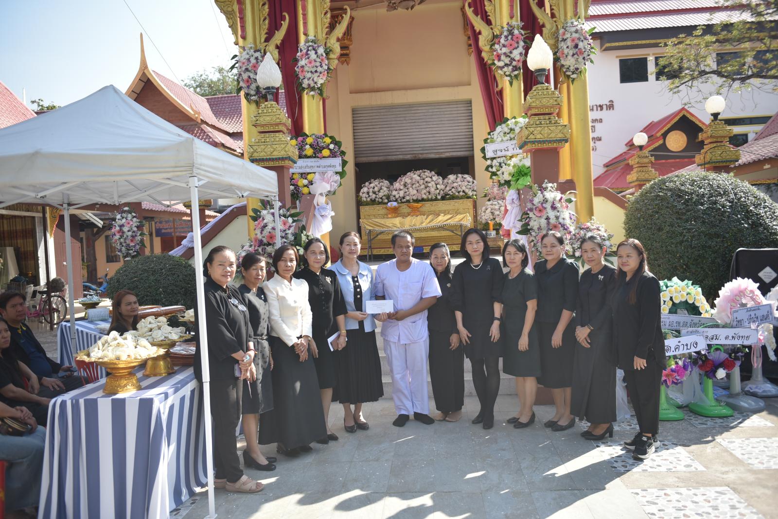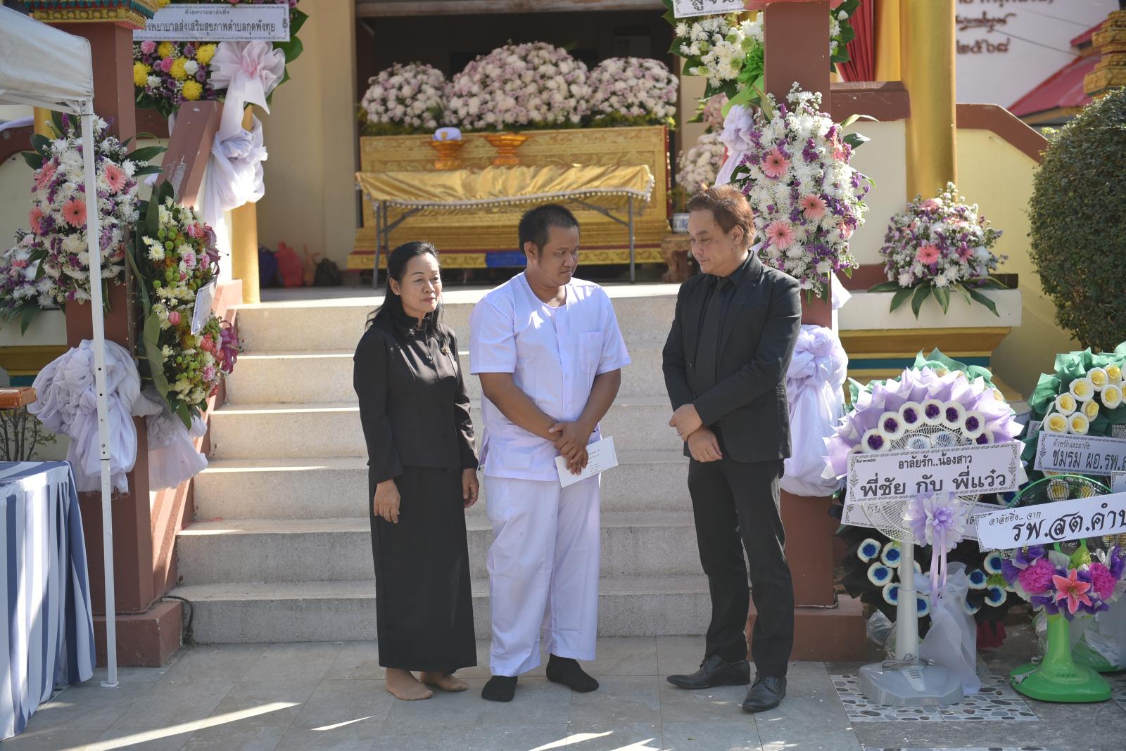 ในโอกาสนี้ มี นายธีระศักดิ์ ผาเหลา สมาชิกสภาองค์การบริหารส่วนจังหวัดขอนแก่น อำเภอเมือง เขต 4 ร่วมทอดผ้าไตรบังสุกุล พร้อมด้วยคณะผู้บริหารโรงพยาบาลส่งเสริมสุขภาพตำบล เจ้าหน้าที่ และแขกผู้มีเกียรติ ร่วมแสดงความอาลัย