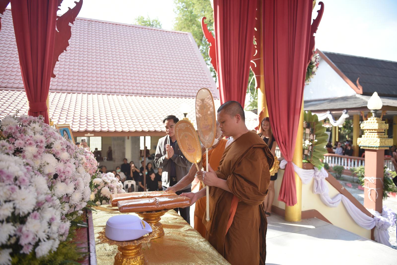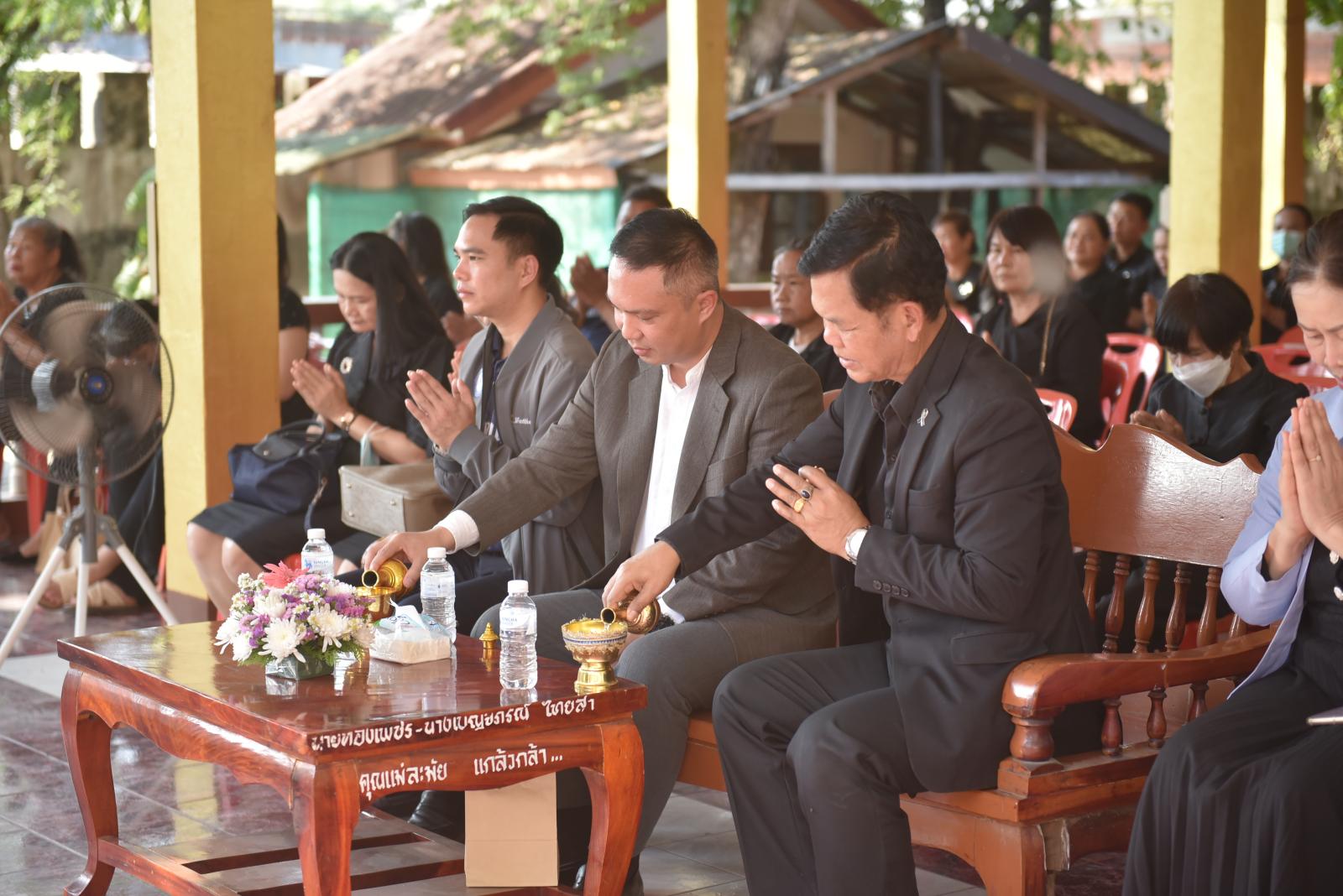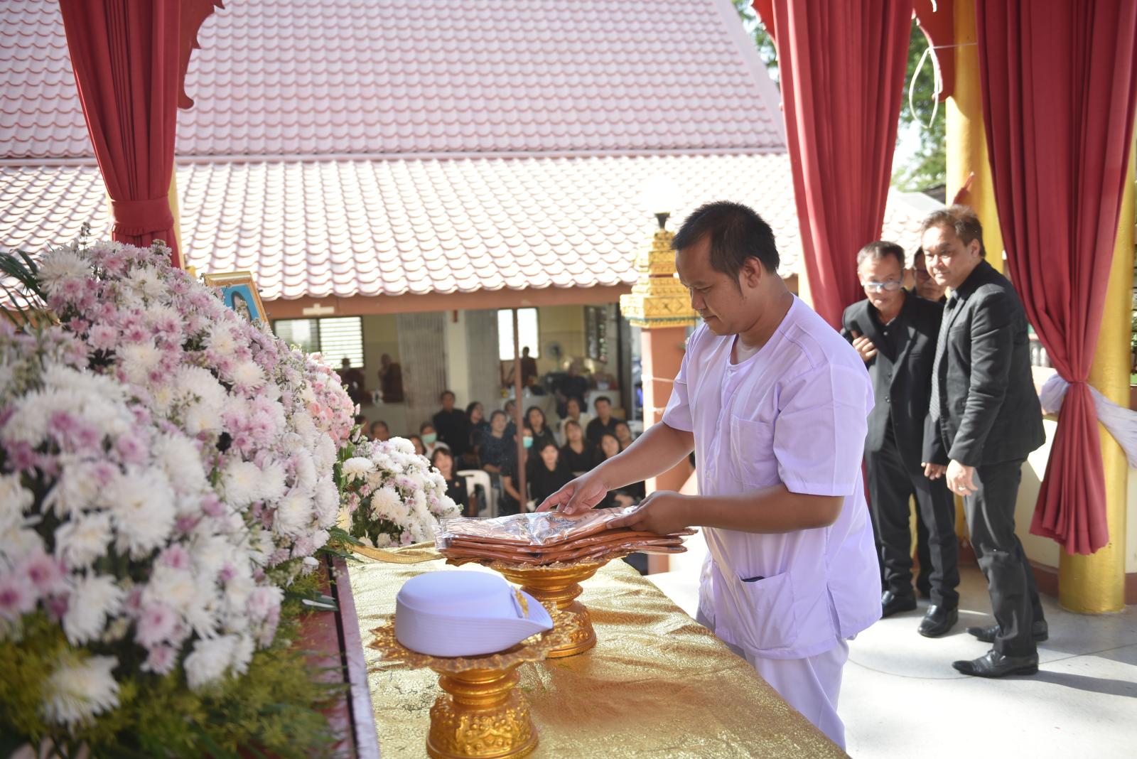 ในโอกาสนี้ มี นายธีระศักดิ์ ผาเหลา สมาชิกสภาองค์การบริหารส่วนจังหวัดขอนแก่น อำเภอเมือง เขต 4 ร่วมทอดผ้าไตรบังสุกุล พร้อมด้วยคณะผู้บริหารโรงพยาบาลส่งเสริมสุขภาพตำบล เจ้าหน้าที่ และแขกผู้มีเกียรติ ร่วมแสดงความอาลัย
