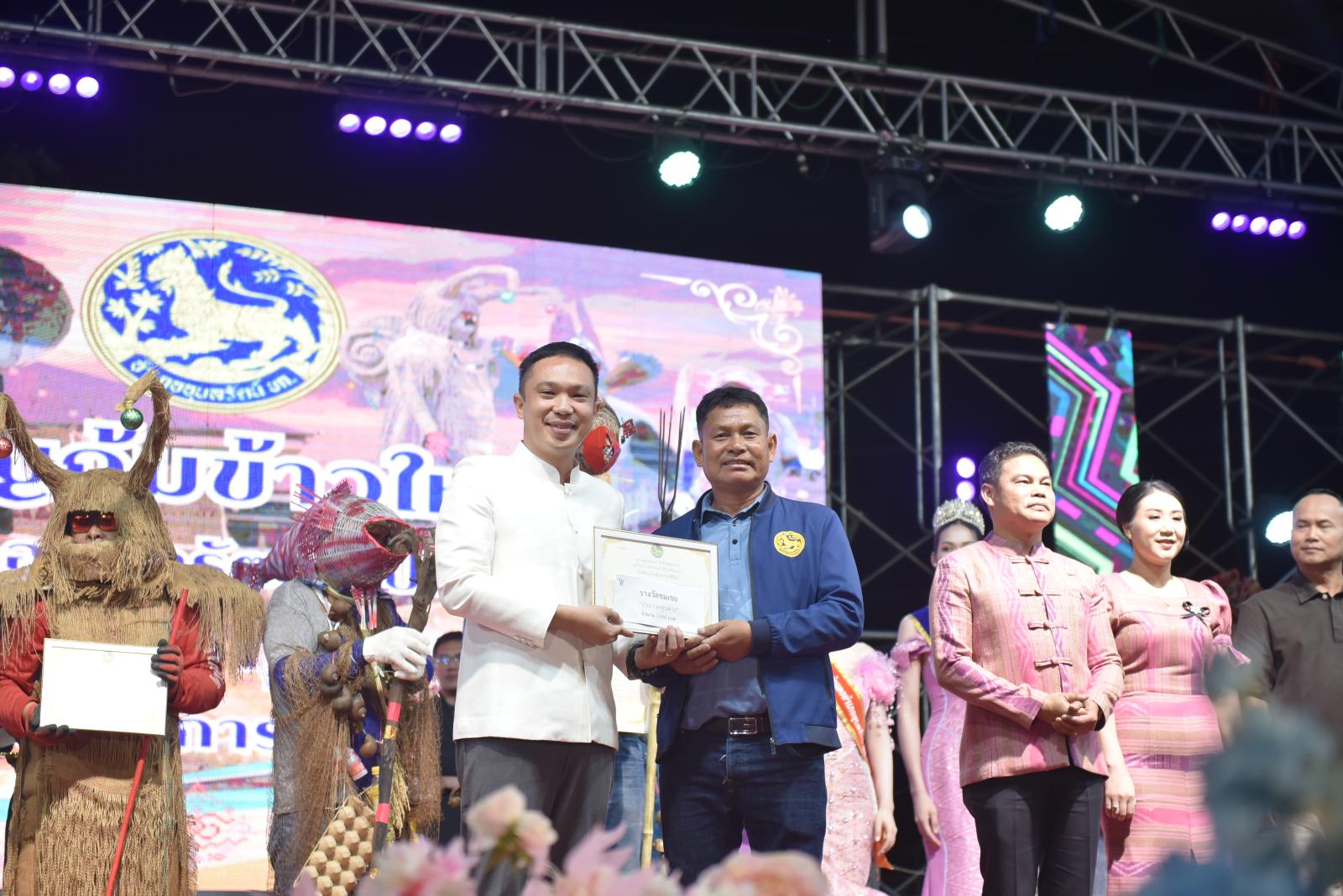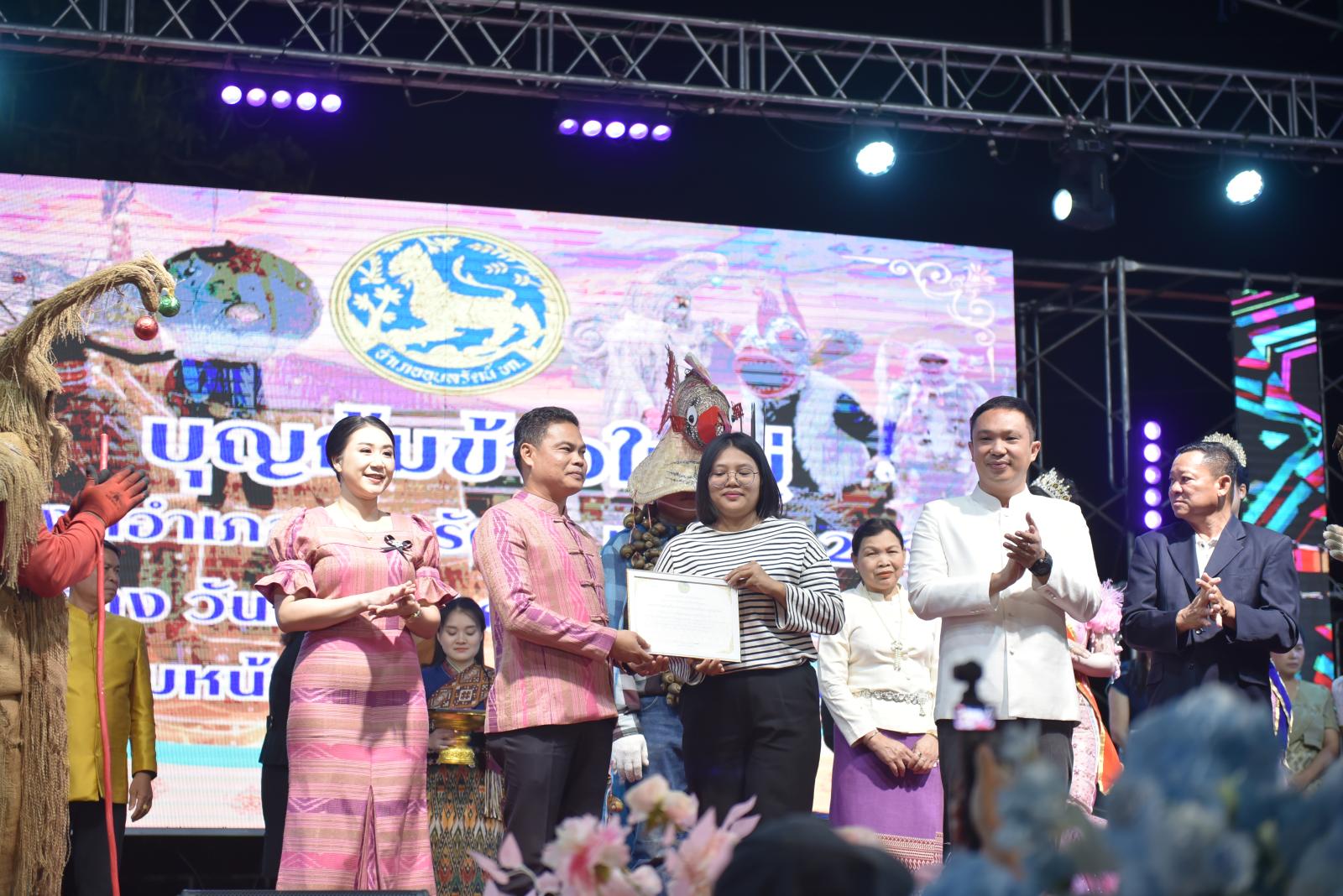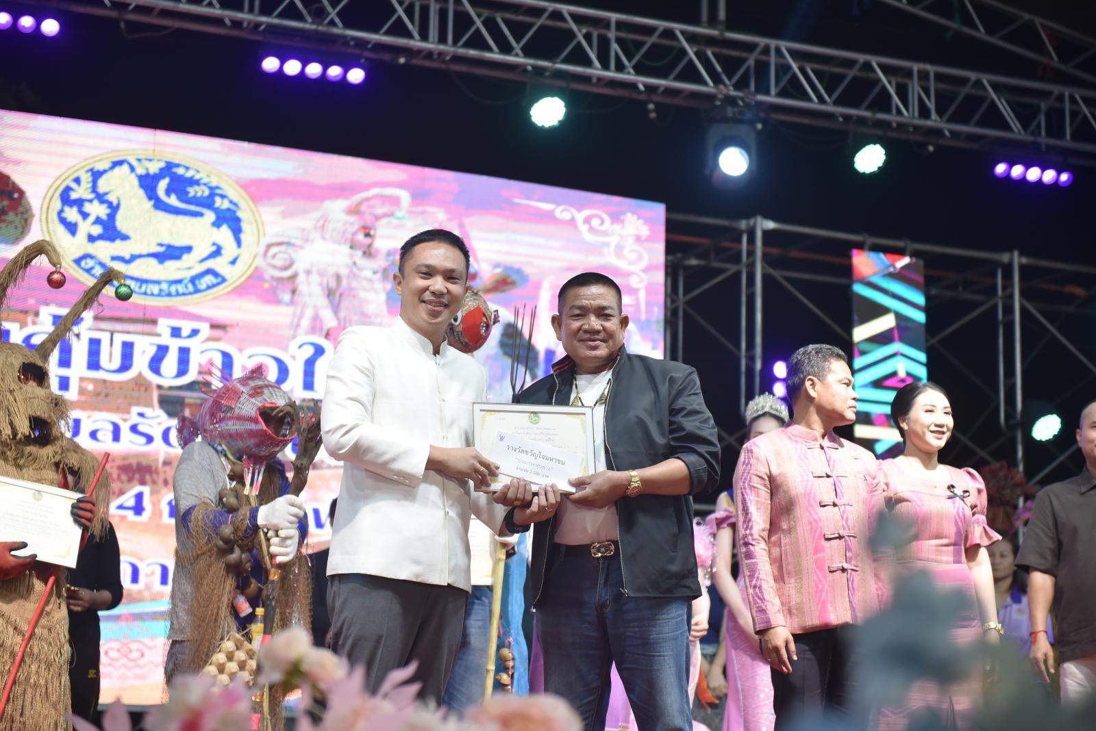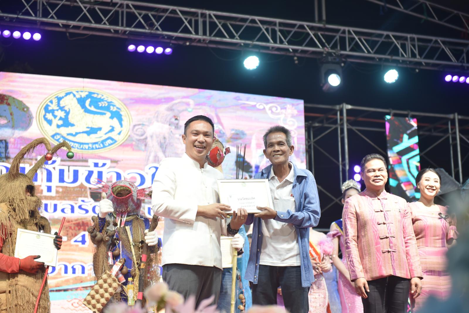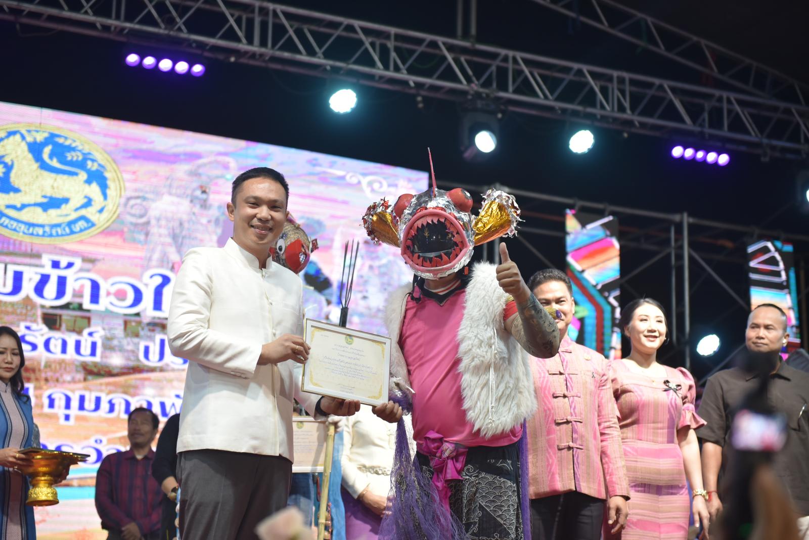 ในโอกาสนี้ ประธานในพิธีได้มอบประกาศเกียรติคุณแก่ผู้สนับสนุนการจัดงาน และมอบรางวัลแก่ผู้เข้าประกวด โดยการจัดงานมีวัตถุประสงค์เพื่อสืบสานและอนุรักษ์ขนบธรรมเนียมประเพณีอันดีงามตาม ฮีต 12 คอง 14 รวมทั้งเสริมสร้างความรัก ความสามัคคีของพี่น้องประชาชนทุกหมู่เหล่า