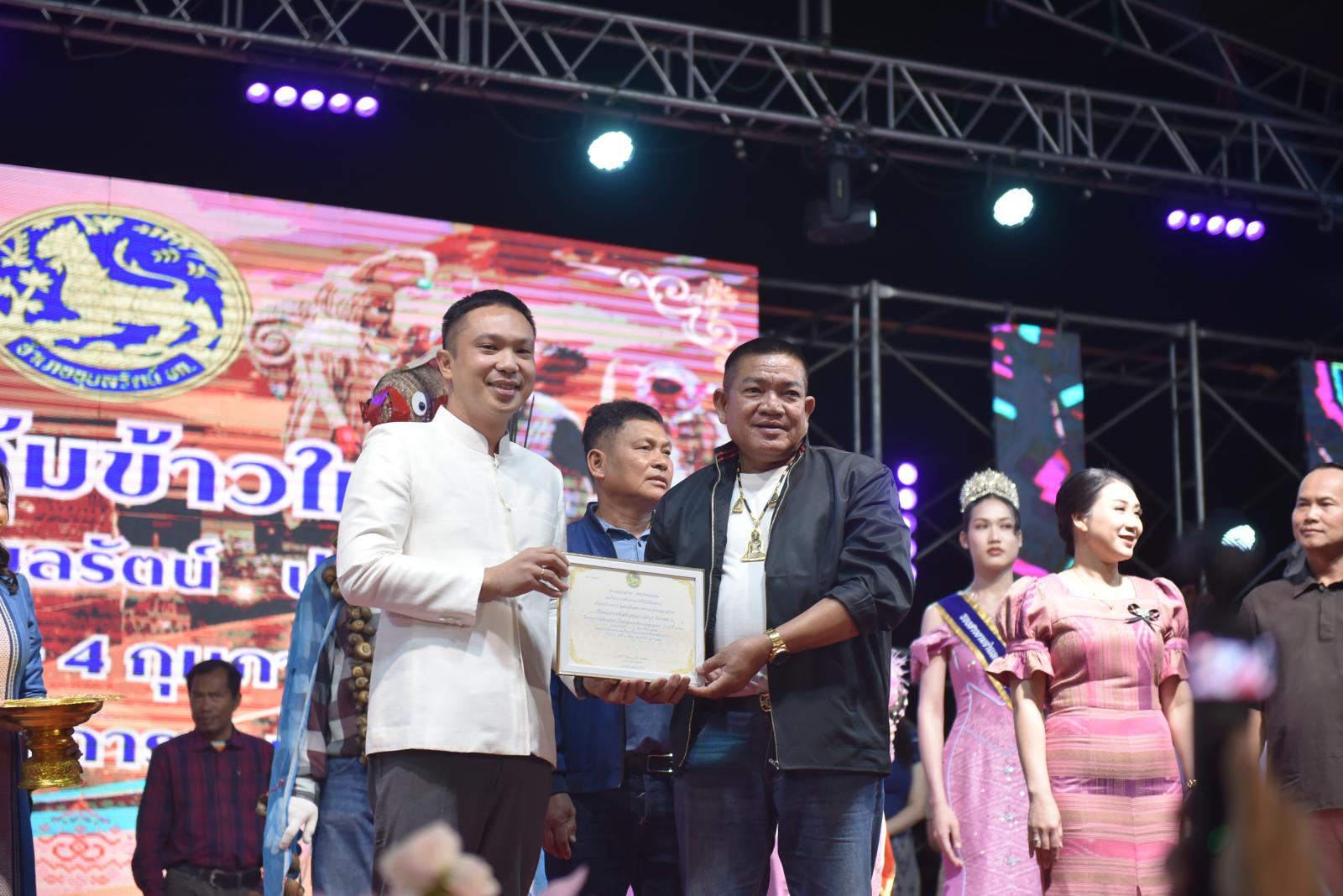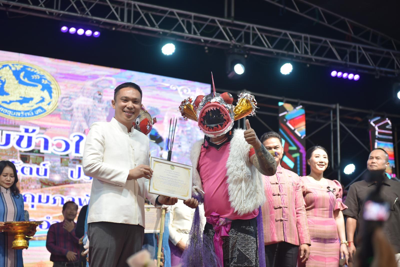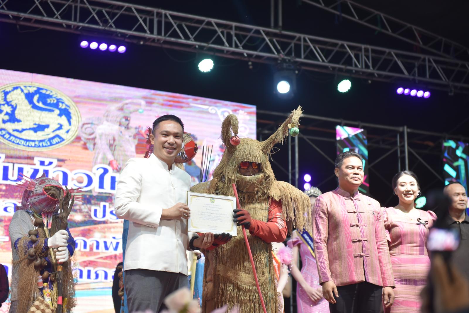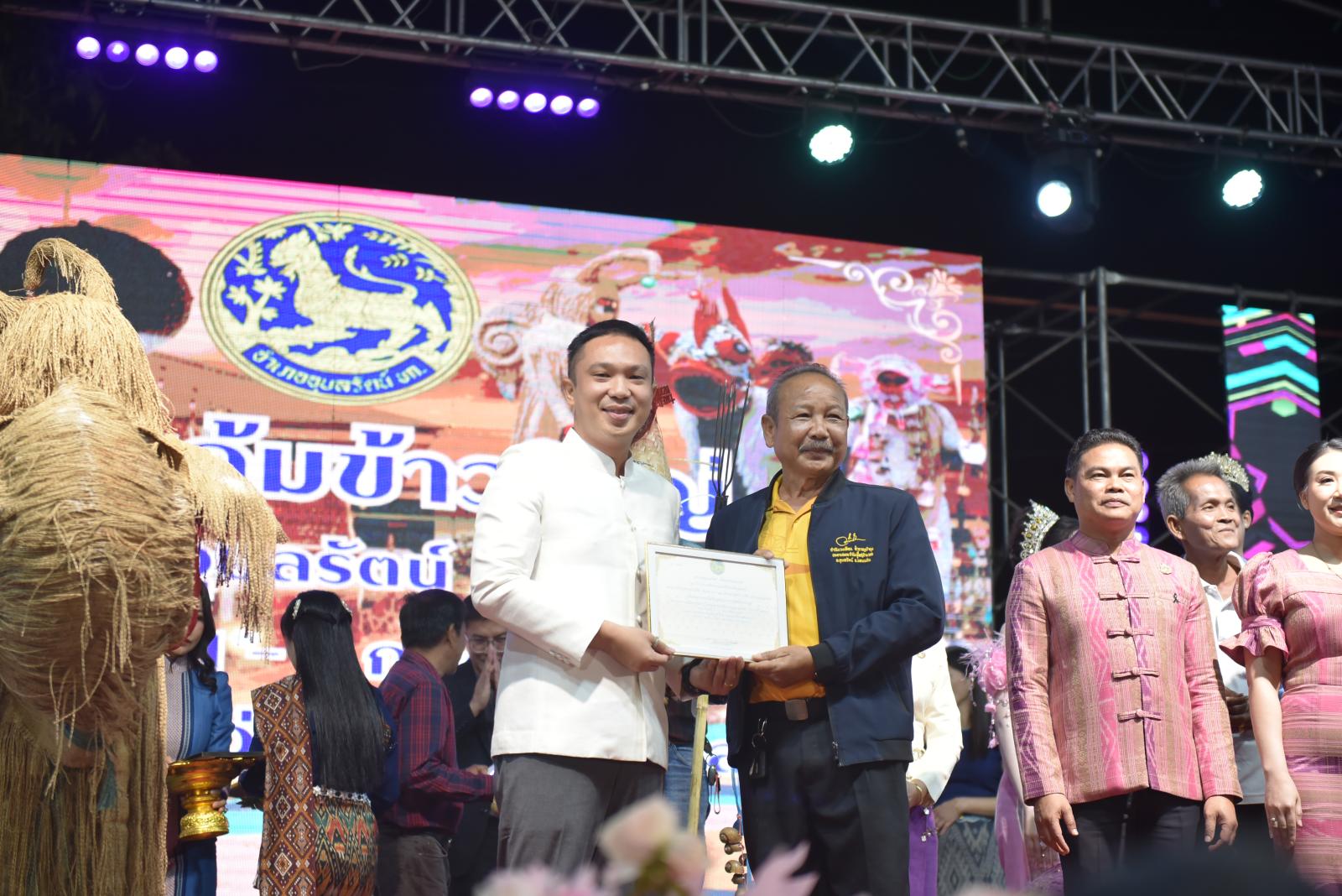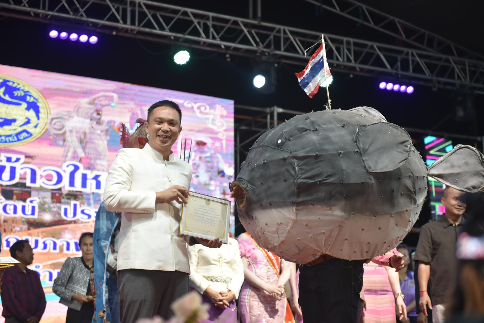 ในโอกาสนี้ ประธานในพิธีได้มอบประกาศเกียรติคุณแก่ผู้สนับสนุนการจัดงาน และมอบรางวัลแก่ผู้เข้าประกวด โดยการจัดงานมีวัตถุประสงค์เพื่อสืบสานและอนุรักษ์ขนบธรรมเนียมประเพณีอันดีงามตาม ฮีต 12 คอง 14 รวมทั้งเสริมสร้างความรัก ความสามัคคีของพี่น้องประชาชนทุกหมู่เหล่า