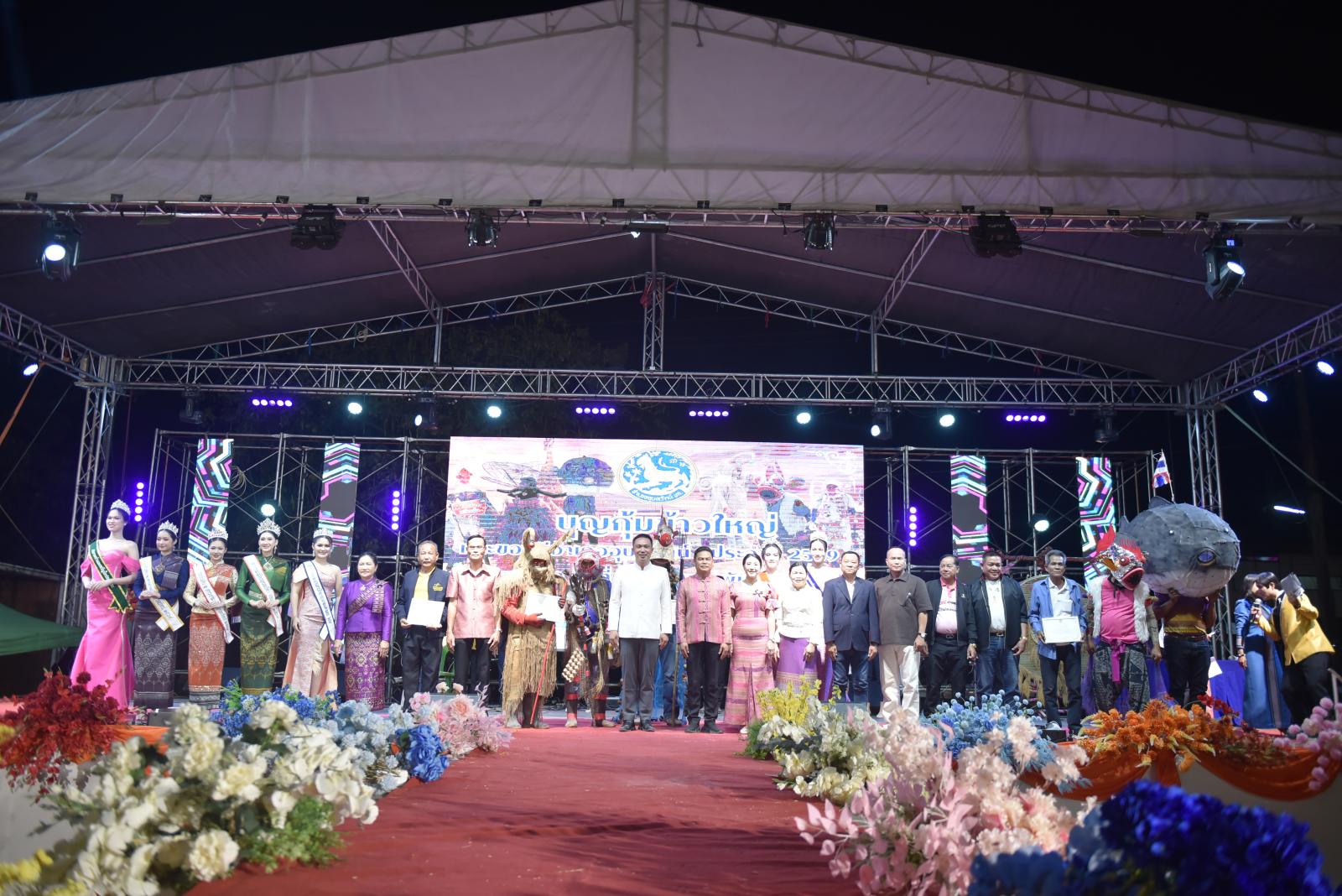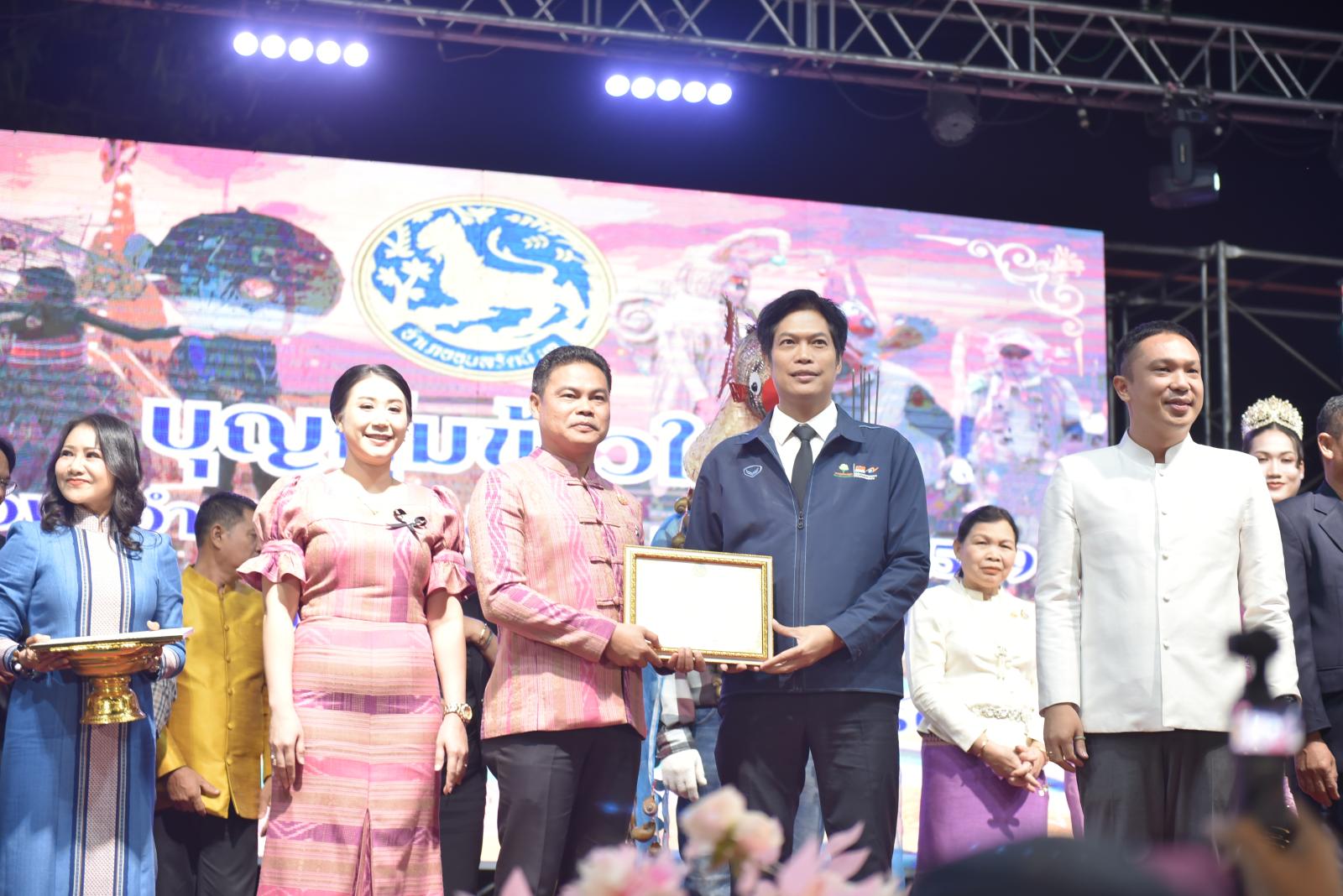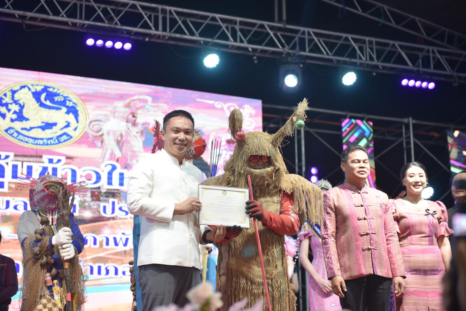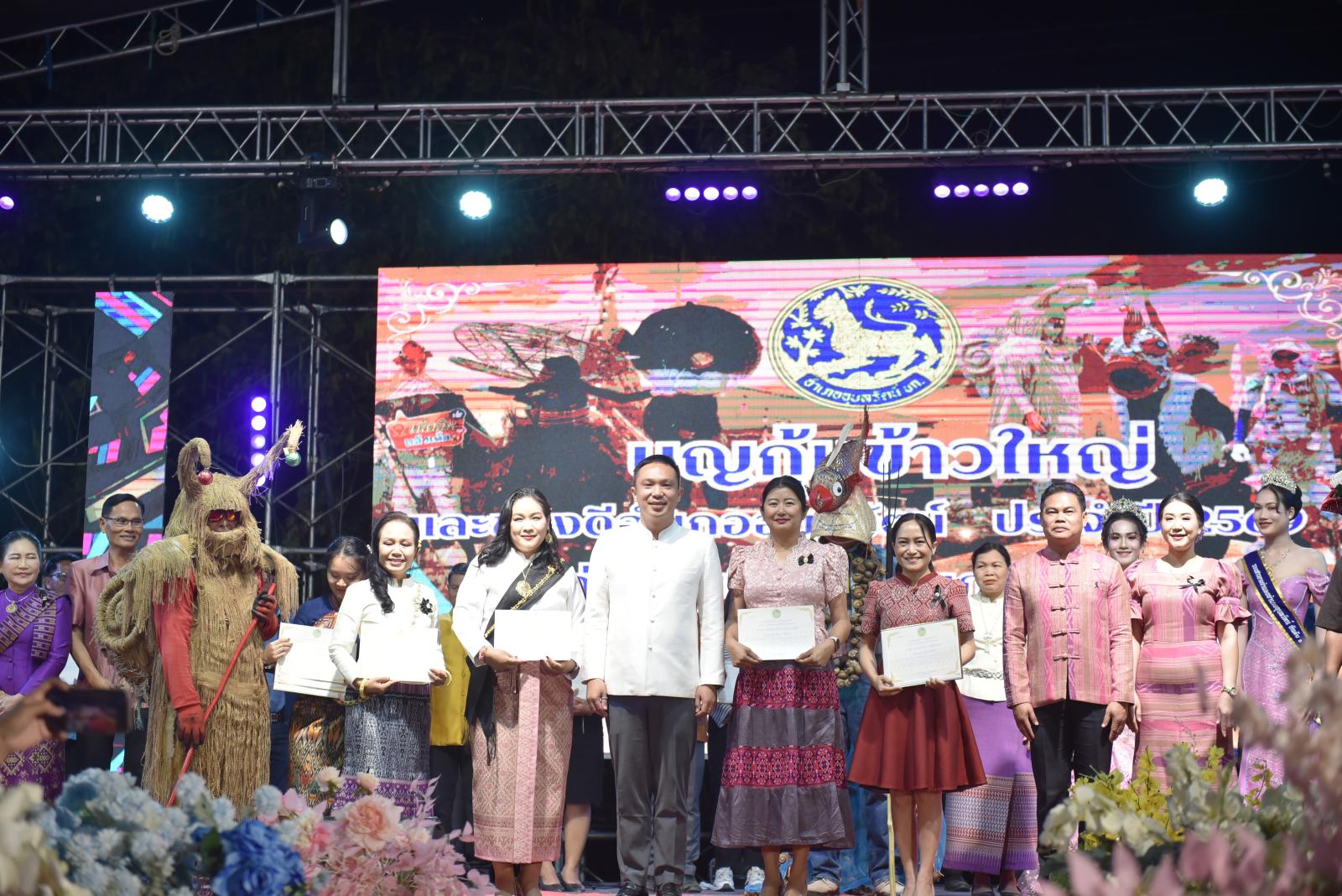 ในโอกาสนี้ ประธานในพิธีได้มอบประกาศเกียรติคุณแก่ผู้สนับสนุนการจัดงาน และมอบรางวัลแก่ผู้เข้าประกวด โดยการจัดงานมีวัตถุประสงค์เพื่อสืบสานและอนุรักษ์ขนบธรรมเนียมประเพณีอันดีงามตาม ฮีต 12 คอง 14 รวมทั้งเสริมสร้างความรัก ความสามัคคีของพี่น้องประชาชนทุกหมู่เหล่า