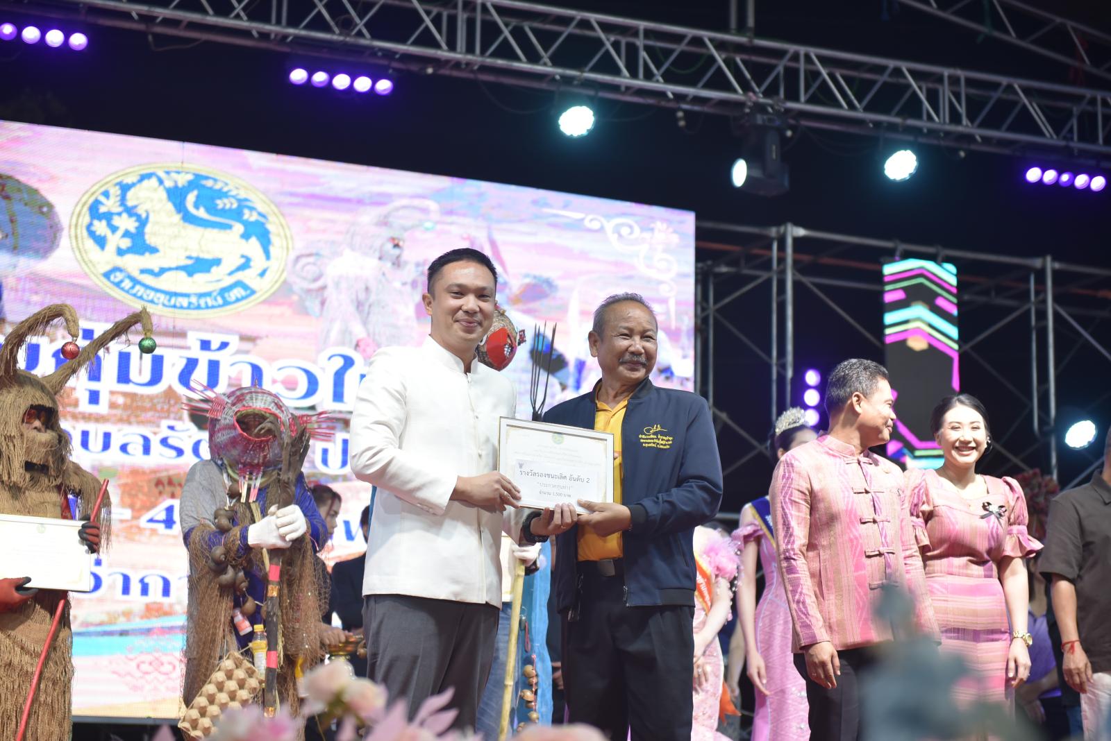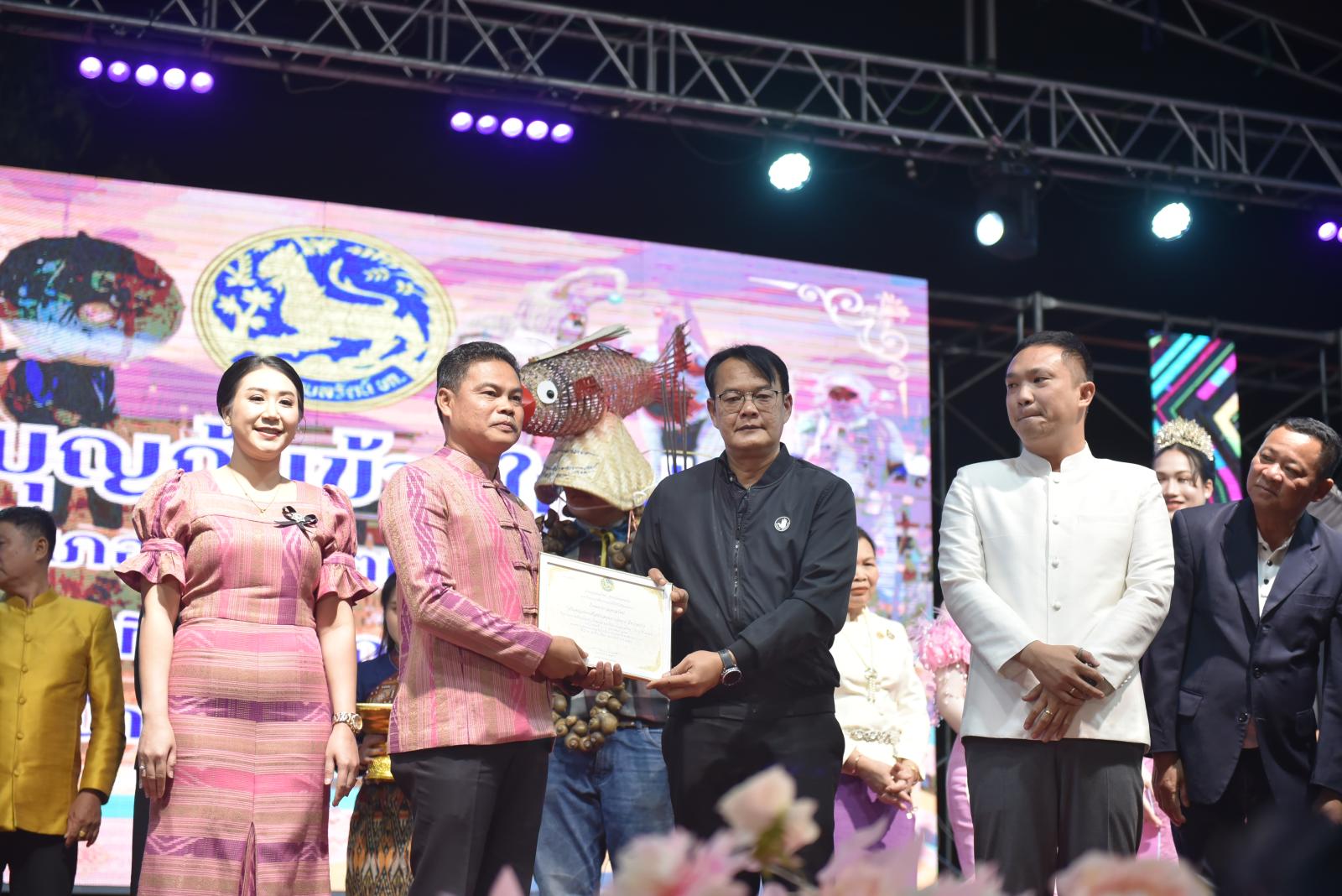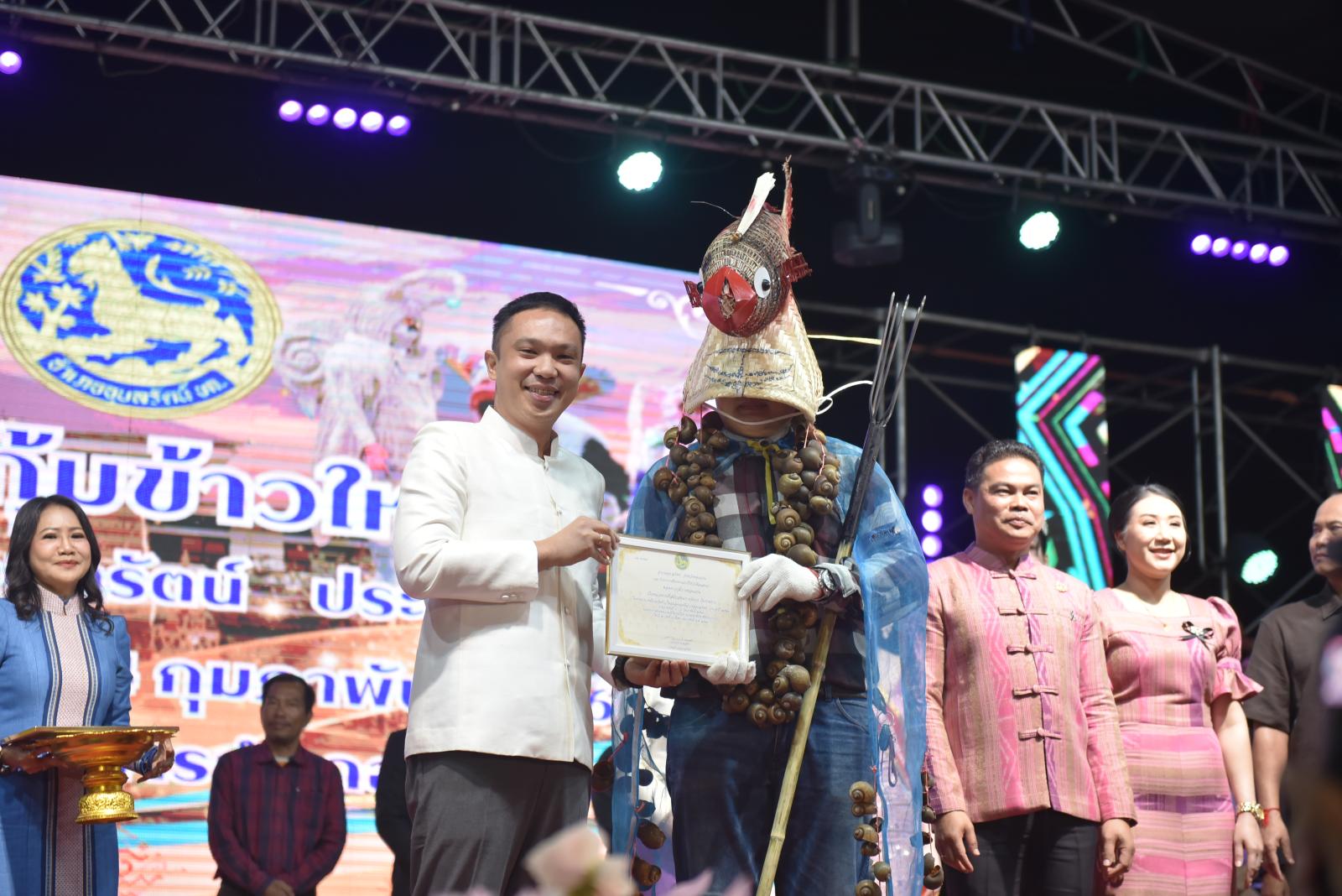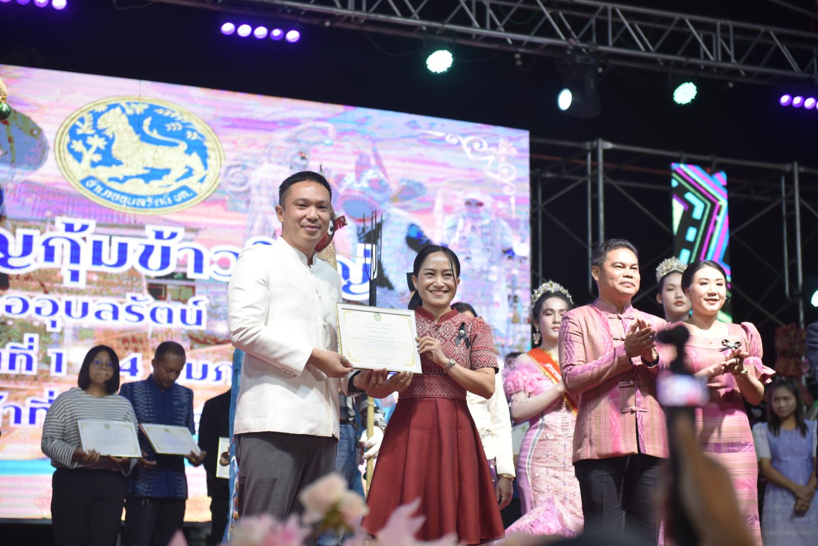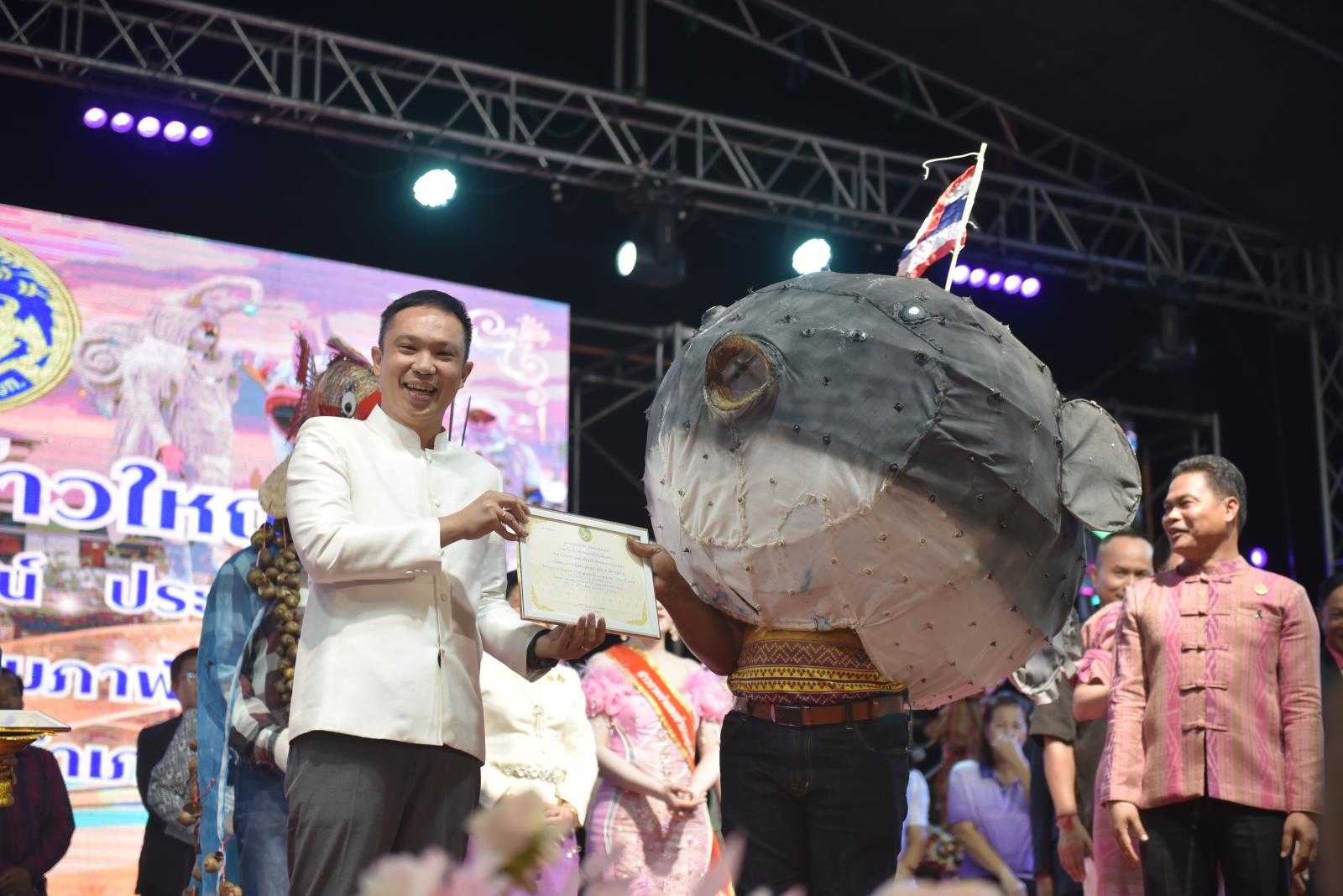 ในโอกาสนี้ ประธานในพิธีได้มอบประกาศเกียรติคุณแก่ผู้สนับสนุนการจัดงาน และมอบรางวัลแก่ผู้เข้าประกวด โดยการจัดงานมีวัตถุประสงค์เพื่อสืบสานและอนุรักษ์ขนบธรรมเนียมประเพณีอันดีงามตาม ฮีต 12 คอง 14 รวมทั้งเสริมสร้างความรัก ความสามัคคีของพี่น้องประชาชนทุกหมู่เหล่า