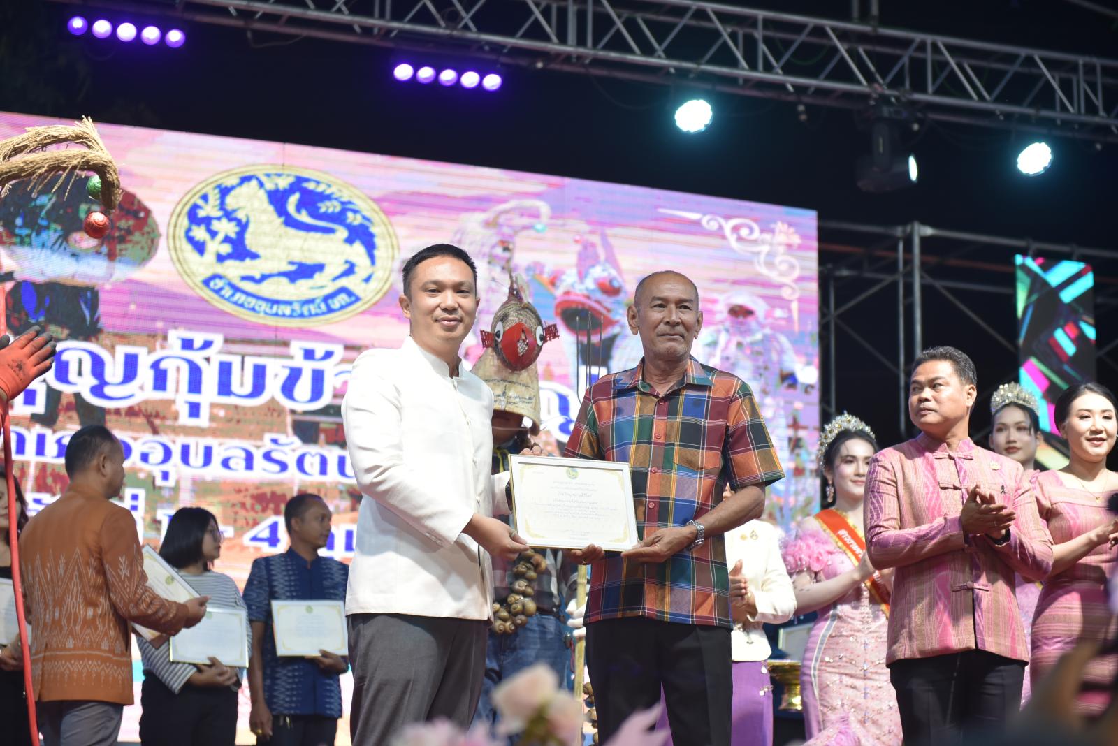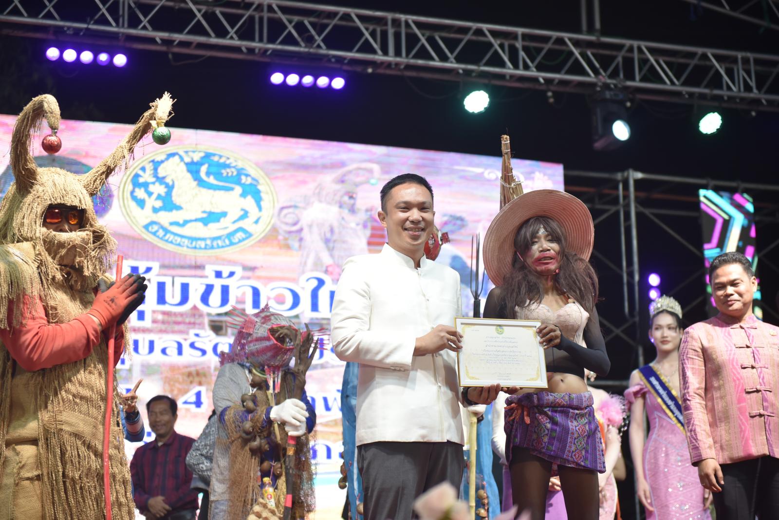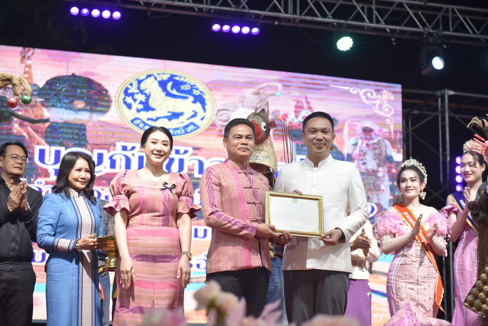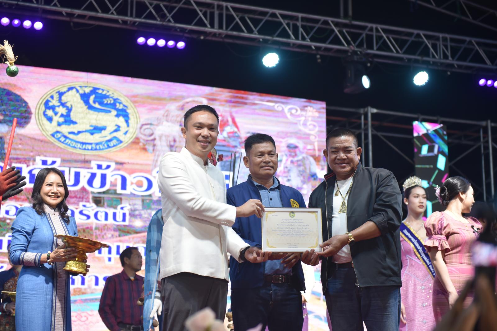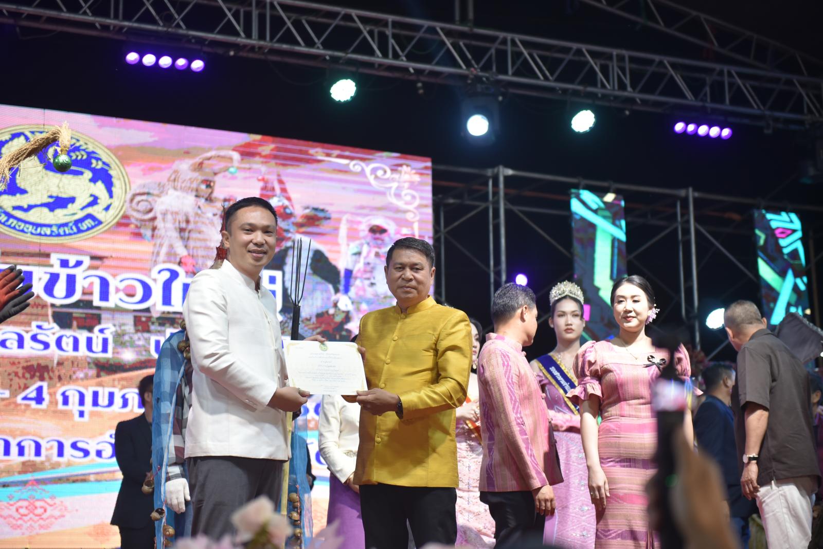 ในโอกาสนี้ ประธานในพิธีได้มอบประกาศเกียรติคุณแก่ผู้สนับสนุนการจัดงาน และมอบรางวัลแก่ผู้เข้าประกวด โดยการจัดงานมีวัตถุประสงค์เพื่อสืบสานและอนุรักษ์ขนบธรรมเนียมประเพณีอันดีงามตาม ฮีต 12 คอง 14 รวมทั้งเสริมสร้างความรัก ความสามัคคีของพี่น้องประชาชนทุกหมู่เหล่า