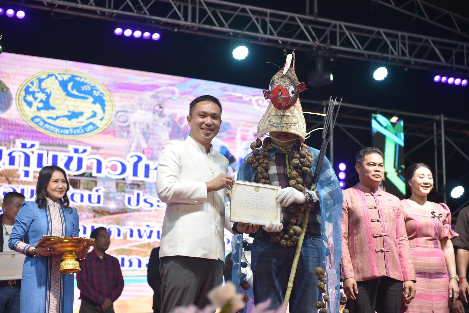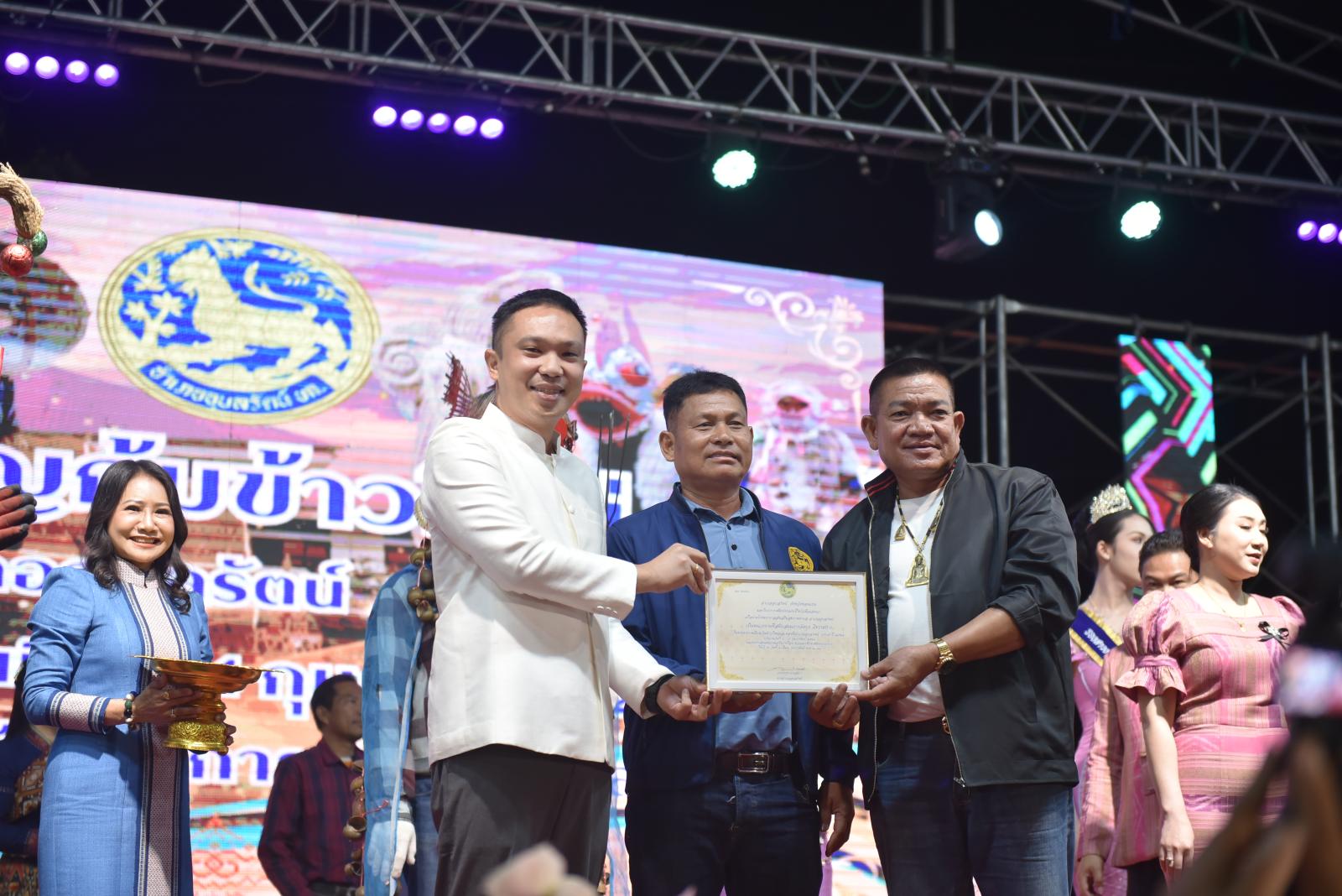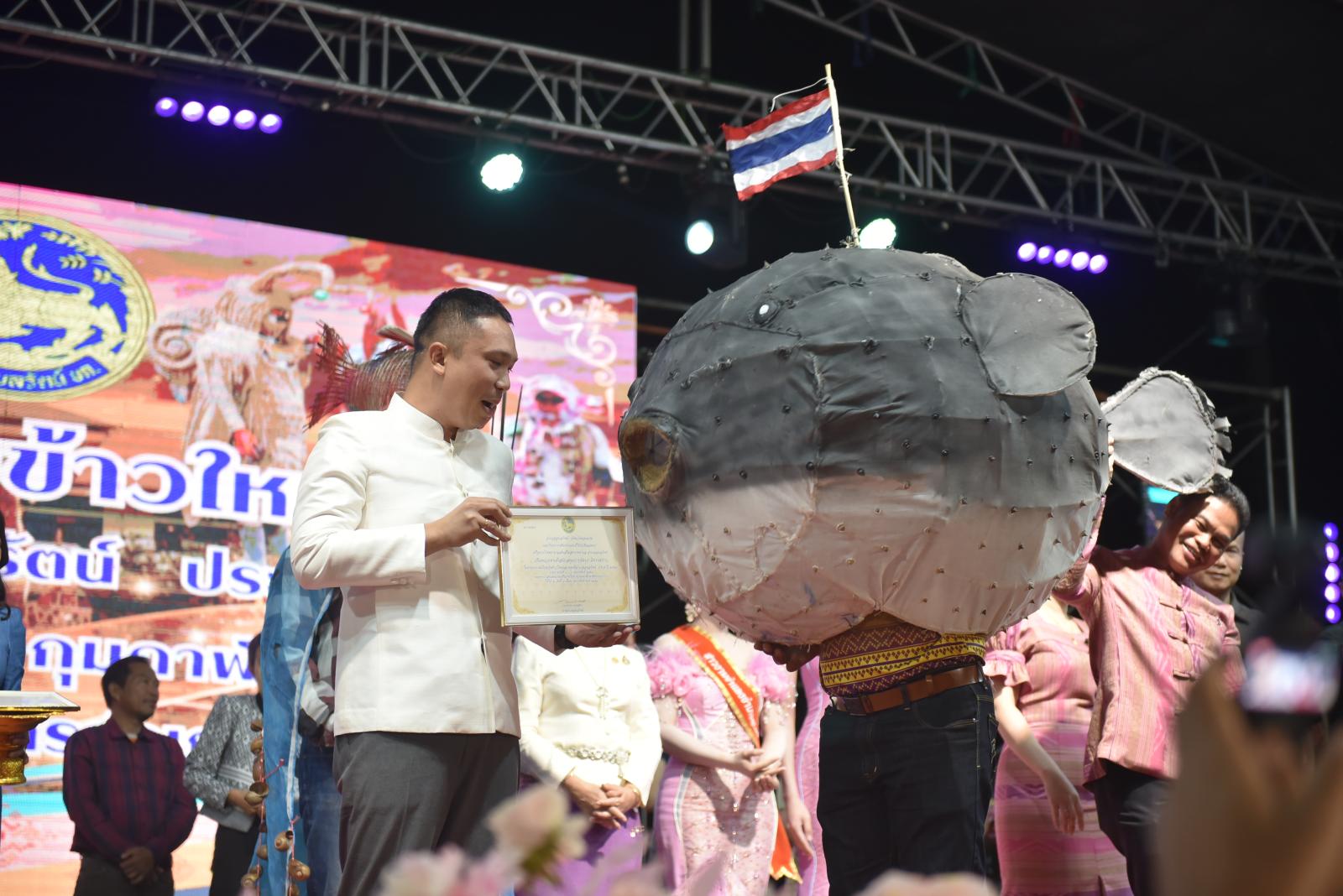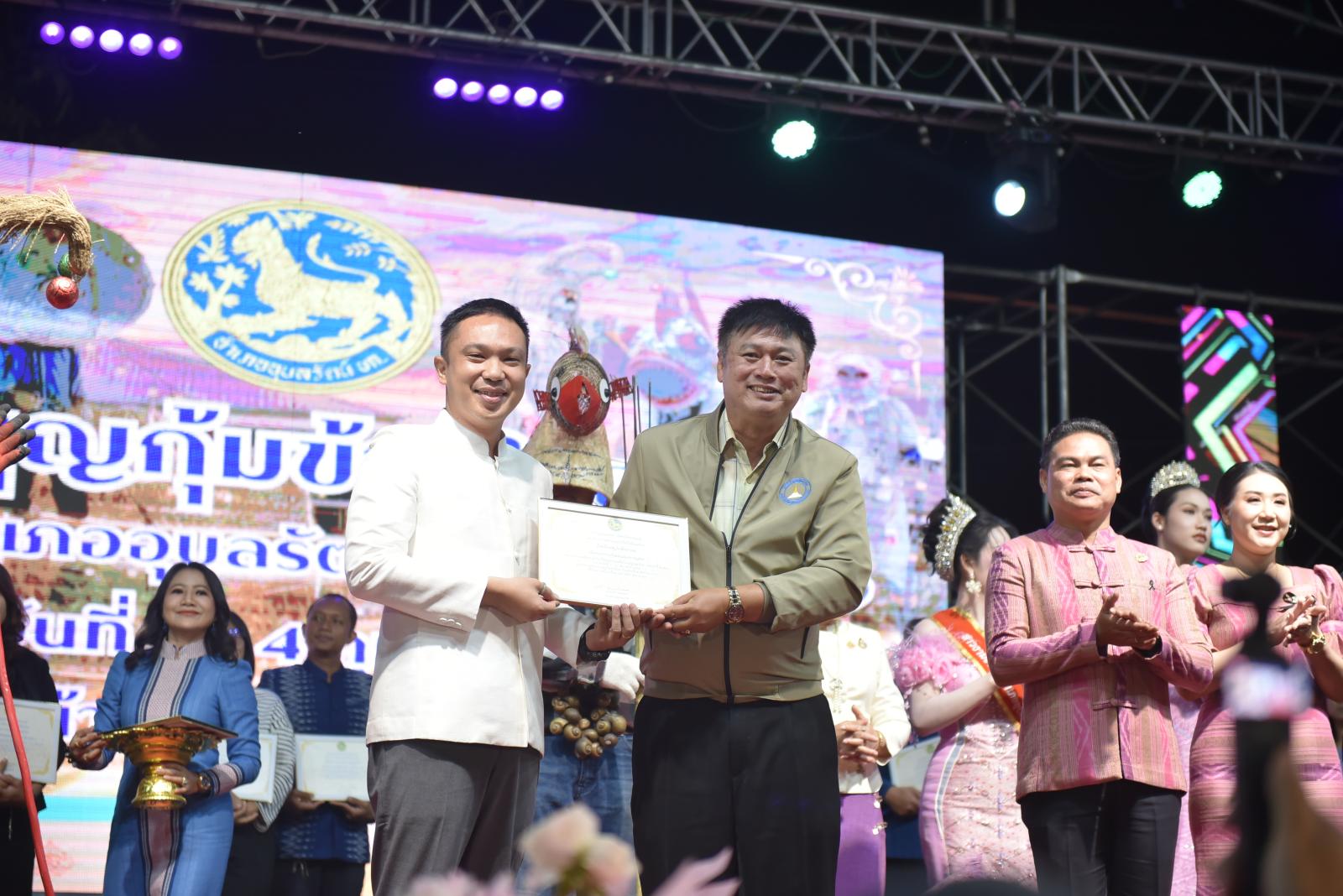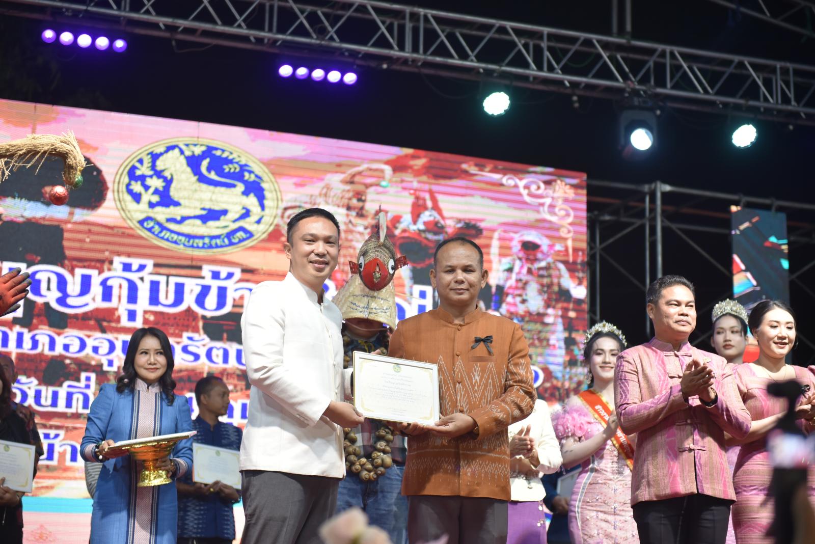 ในโอกาสนี้ ประธานในพิธีได้มอบประกาศเกียรติคุณแก่ผู้สนับสนุนการจัดงาน และมอบรางวัลแก่ผู้เข้าประกวด โดยการจัดงานมีวัตถุประสงค์เพื่อสืบสานและอนุรักษ์ขนบธรรมเนียมประเพณีอันดีงามตาม ฮีต 12 คอง 14 รวมทั้งเสริมสร้างความรัก ความสามัคคีของพี่น้องประชาชนทุกหมู่เหล่า