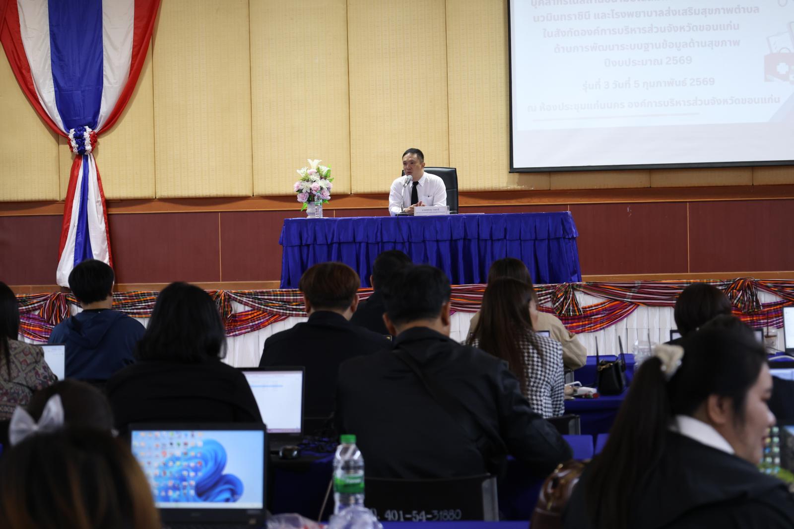 การอบรมครั้งนี้จัดขึ้นเพื่อเสริมสร้างความรู้และทักษะให้แก่บุคลากรใน สถานีอนามัยเฉลิมพระเกียรติ 60 พรรษา นวมินทราชินี และโรงพยาบาลส่งเสริมสุขภาพตำบล (รพ.สต.) ในสังกัดองค์การบริหารส่วนจังหวัดขอนแก่น ด้าน การพัฒนาระบบฐานข้อมูลด้านสุขภาพ ประจำปีงบประมาณ 2569(รุ่นที่3)