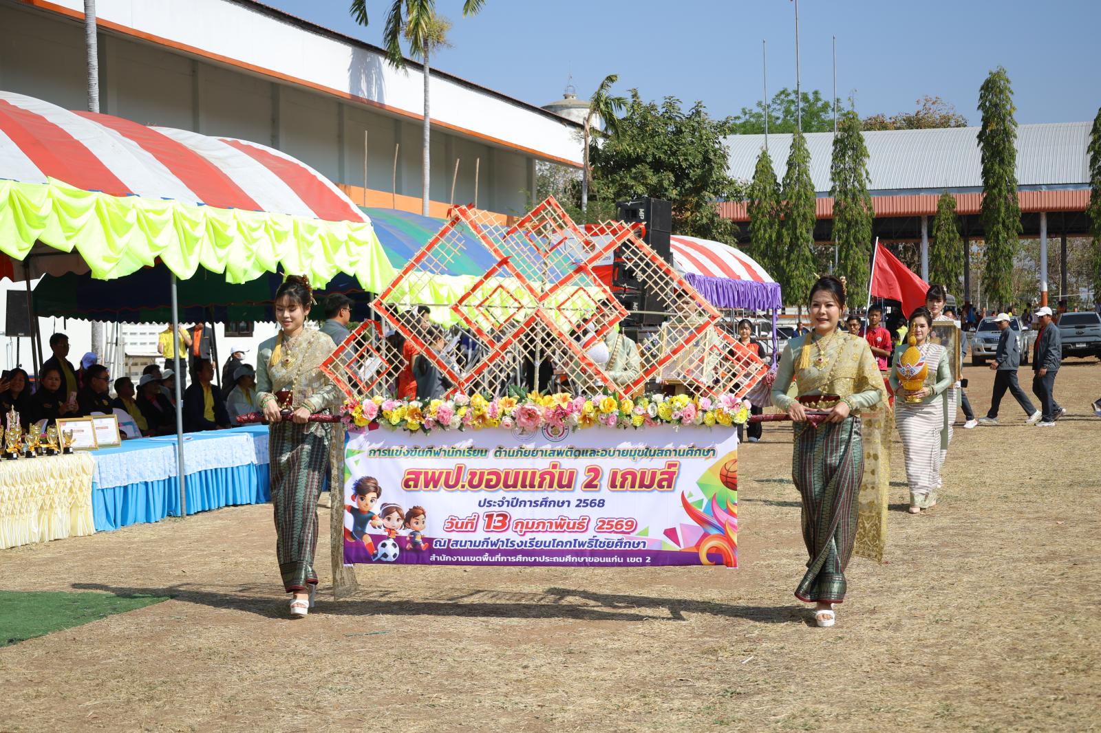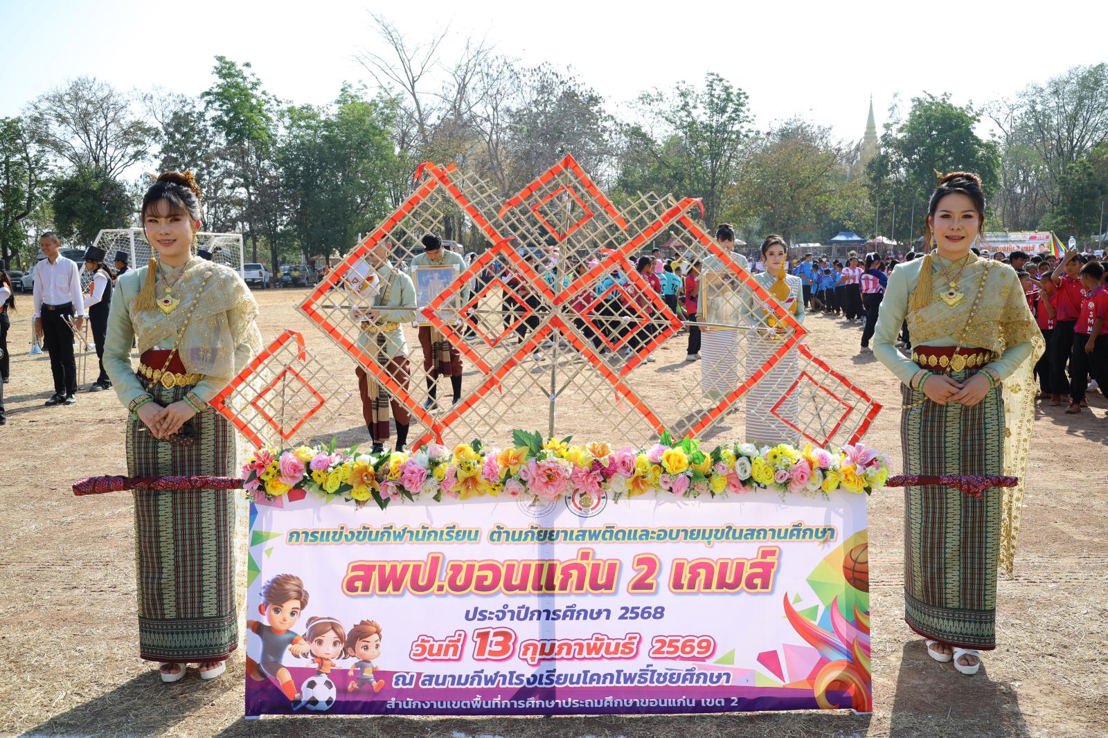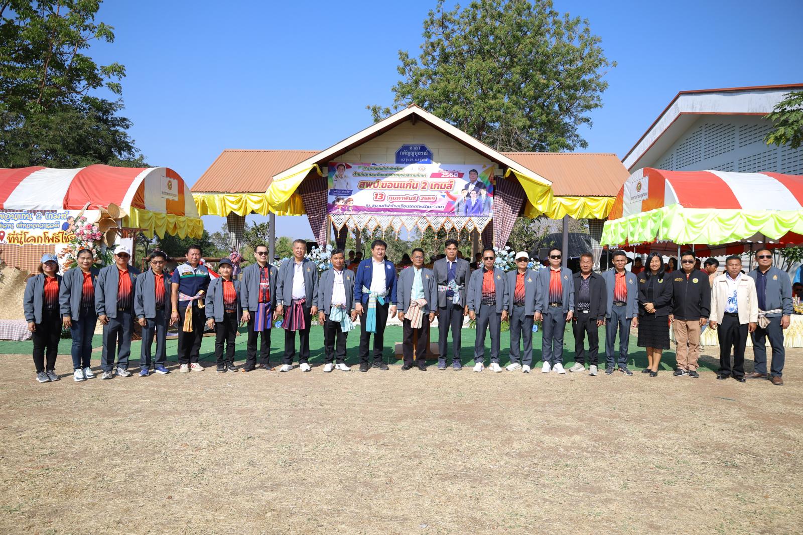 เมื่อวันที่ 13 กุมภาพันธ์ 2569 เวลา 10.00 น. องค์การบริหารส่วนจังหวัดขอนแก่น นำโดย นายวัฒนา ช่างเหลา นายกองค์การบริหารส่วนจังหวัดขอนแก่น มอบหมายให้ นายอดุลย์ คามดิษฐ์ รองนายกองค์การบริหารส่วนจังหวัดขอนแก่น เป็นประธานในพิธีเปิดการแข่งขันกีฬานักเรียนต้านภัยยาเสพติดและอบายมุขในสถานศึกษา ระดับเขตพื้นที่การศึกษา ประจำปีงบประมาณ พ.ศ. 2569 “สพป.ขอนแก่น 2 เกมส์”