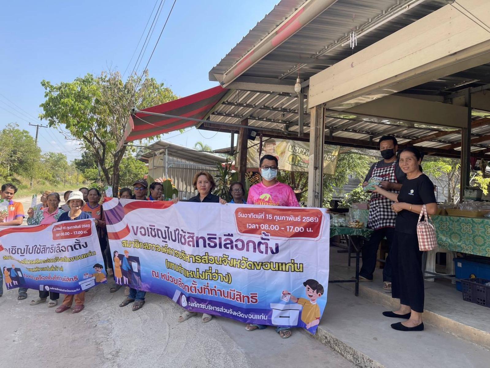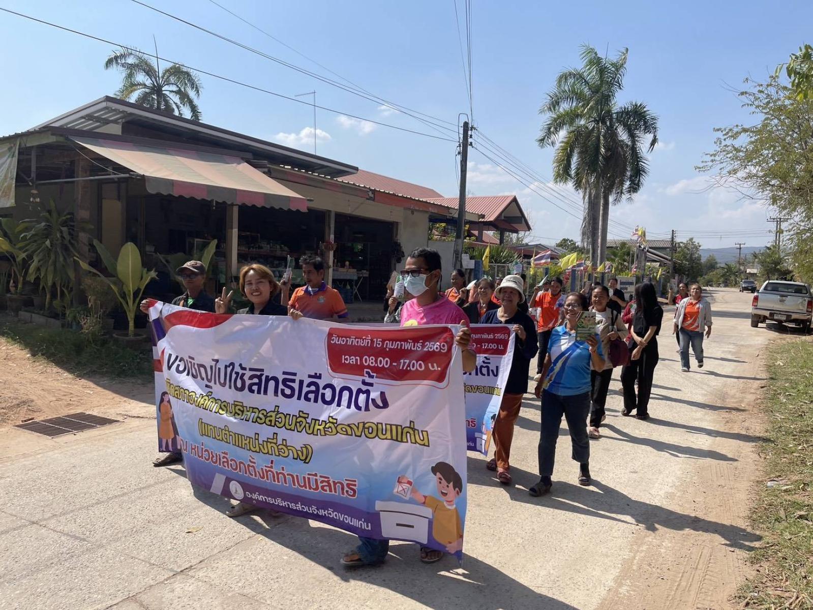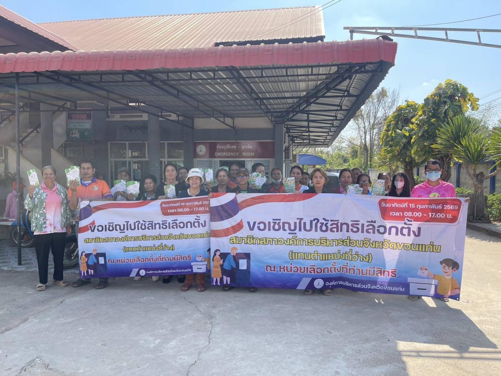 เมื่อวันที่ 13 กุมภาพันธ์ 2569 ผู้นำชุมชน อาสาสมัครสาธารณสุขประจำหมู่บ้าน (อสม.) เจ้าหน้าที่โรงพยาบาลส่งเสริมสุขภาพตำบล (รพ.สต.) และพี่น้องประชาชนชาวอำเภออุบลรัตน์ จังหวัดขอนแก่น ได้พร้อมใจกันออกประชาสัมพันธ์เชิญชวนประชาชนไปใช้สิทธิเลือกตั้งสมาชิกสภาองค์การบริหารส่วนจังหวัดขอนแก่น (แทนตำแหน่งที่ว่าง)