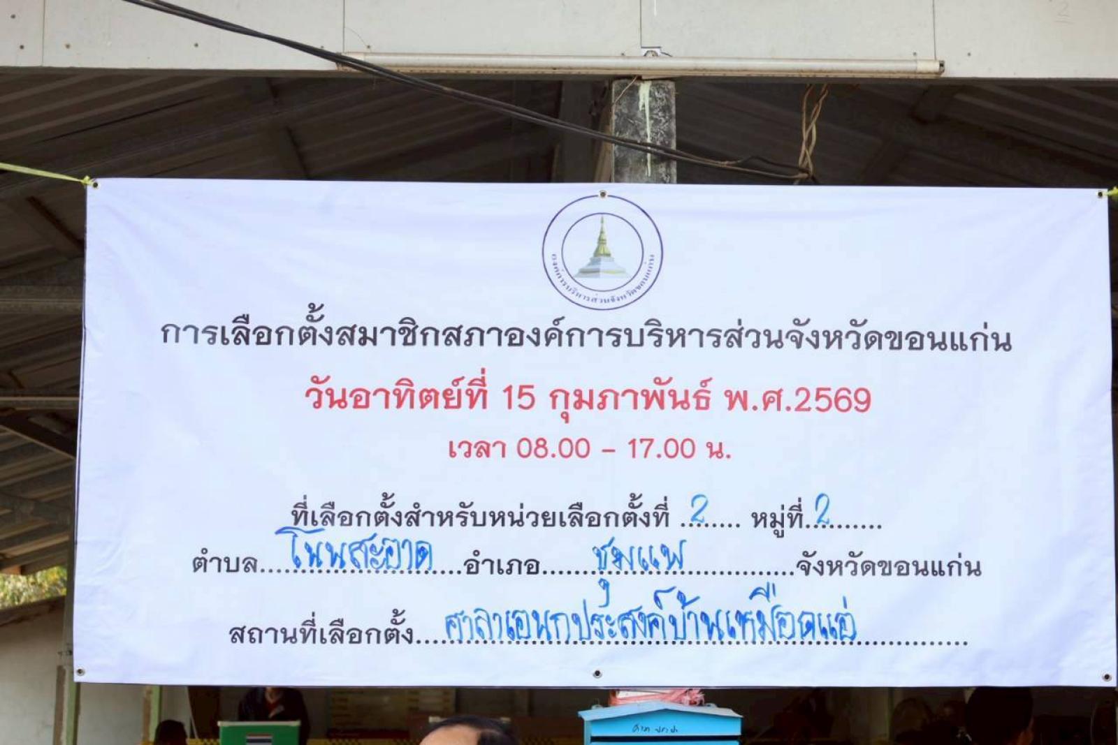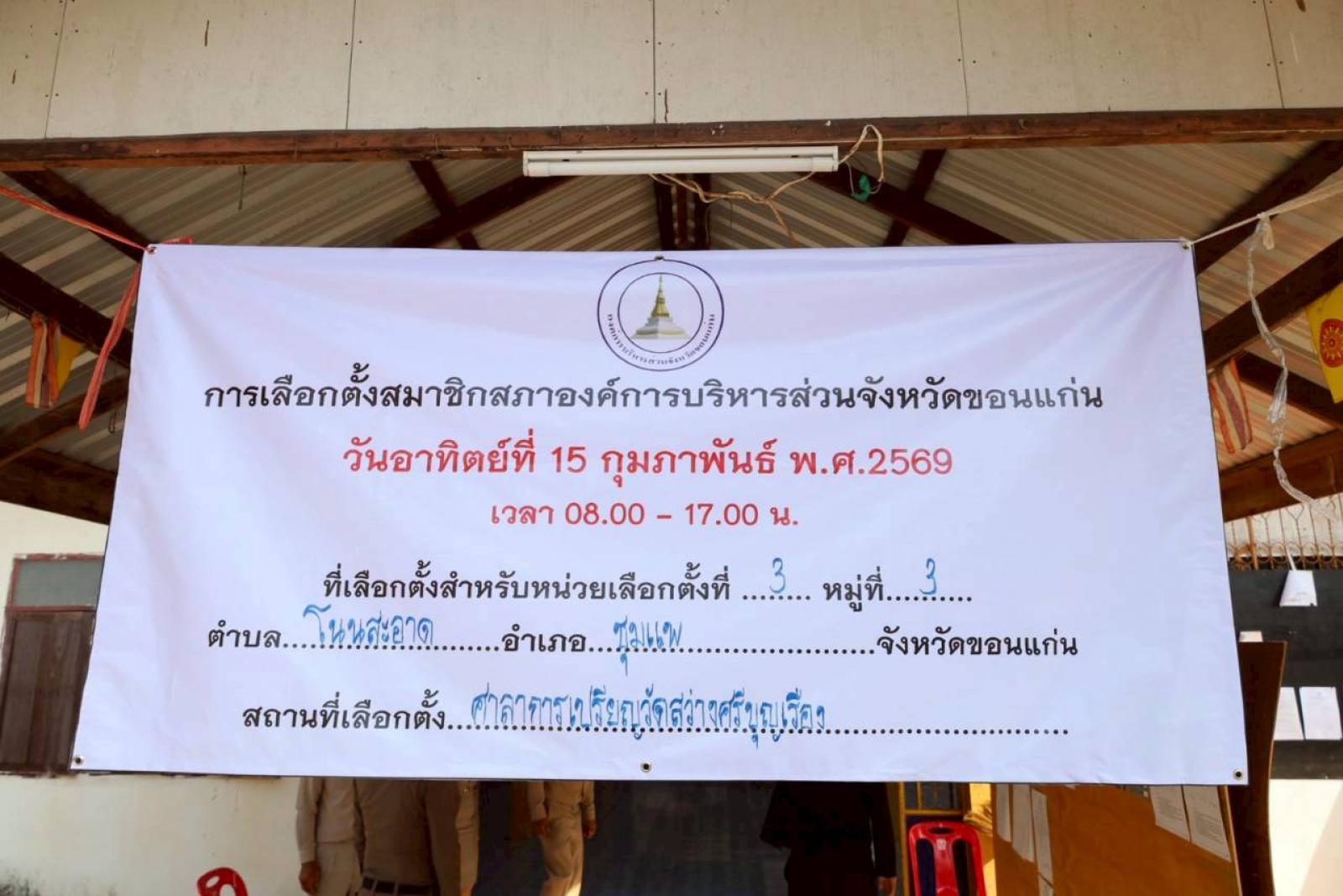 วันอาทิตย์ที่ 15 กุมภาพันธ์ 2569 คณะกรรมการการเลือกตั้งประจำองค์การบริหารส่วนจังหวัดขอนแก่น พร้อมคณะผู้ติดตาม ลงพื้นที่ตรวจเยี่ยมและสังเกตการณ์หน่วยเลือกตั้ง ทั้งก่อนและหลังเปิดหน่วยเลือกตั้ง ในการเลือกตั้งสมาชิกสภาองค์การบริหารส่วนจังหวัดขอนแก่น (แทนตำแหน่งที่ว่าง) เพื่อให้การดำเนินการเป็นไปด้วยความเรียบร้อย โปร่งใส และเป็นธรรม