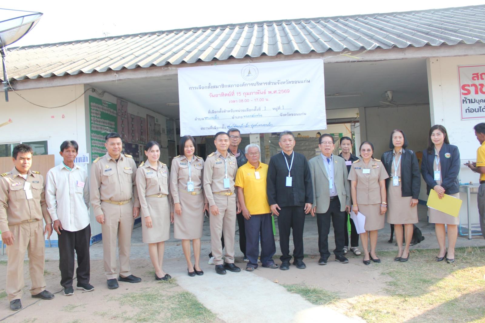 วันอาทิตย์ที่ 15 กุมภาพันธ์ 2569 คณะกรรมการการเลือกตั้งประจำองค์การบริหารส่วนจังหวัดขอนแก่น พร้อมคณะผู้ติดตาม ลงพื้นที่ตรวจเยี่ยมและสังเกตการณ์หน่วยเลือกตั้ง ทั้งก่อนและหลังเปิดหน่วยเลือกตั้ง ในการเลือกตั้งสมาชิกสภาองค์การบริหารส่วนจังหวัดขอนแก่น (แทนตำแหน่งที่ว่าง) เพื่อกำกับดูแลให้การดำเนินงานเป็นไปด้วยความเรียบร้อย โปร่งใส และเป็นธรรม