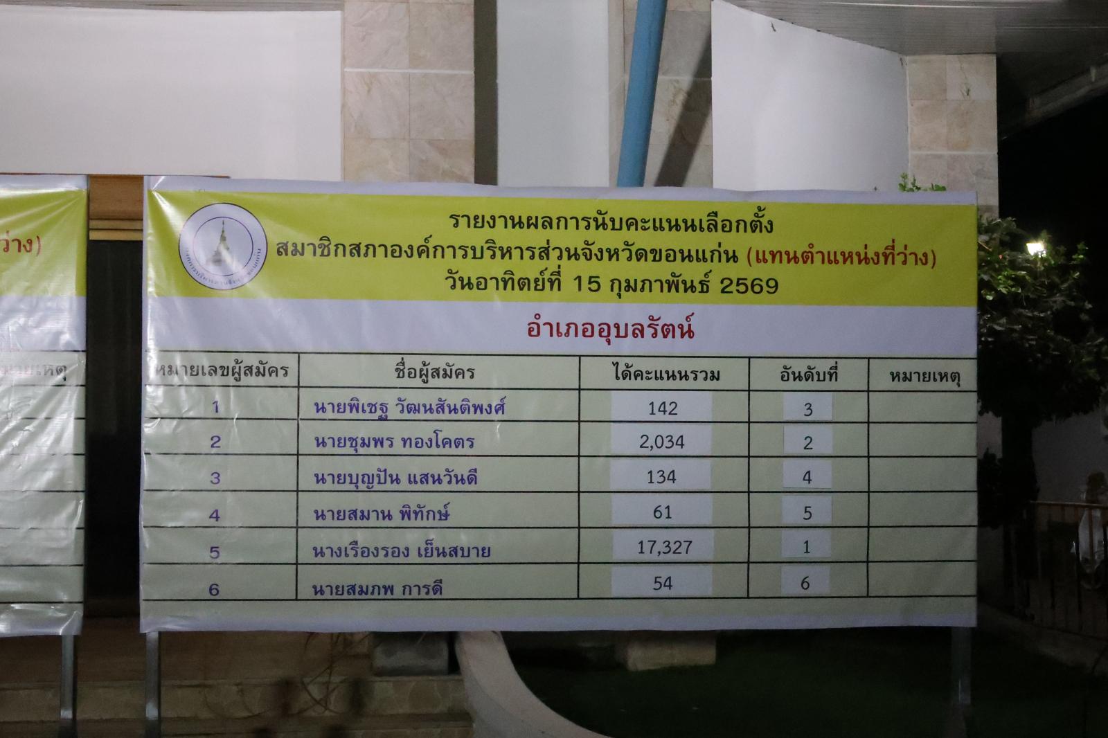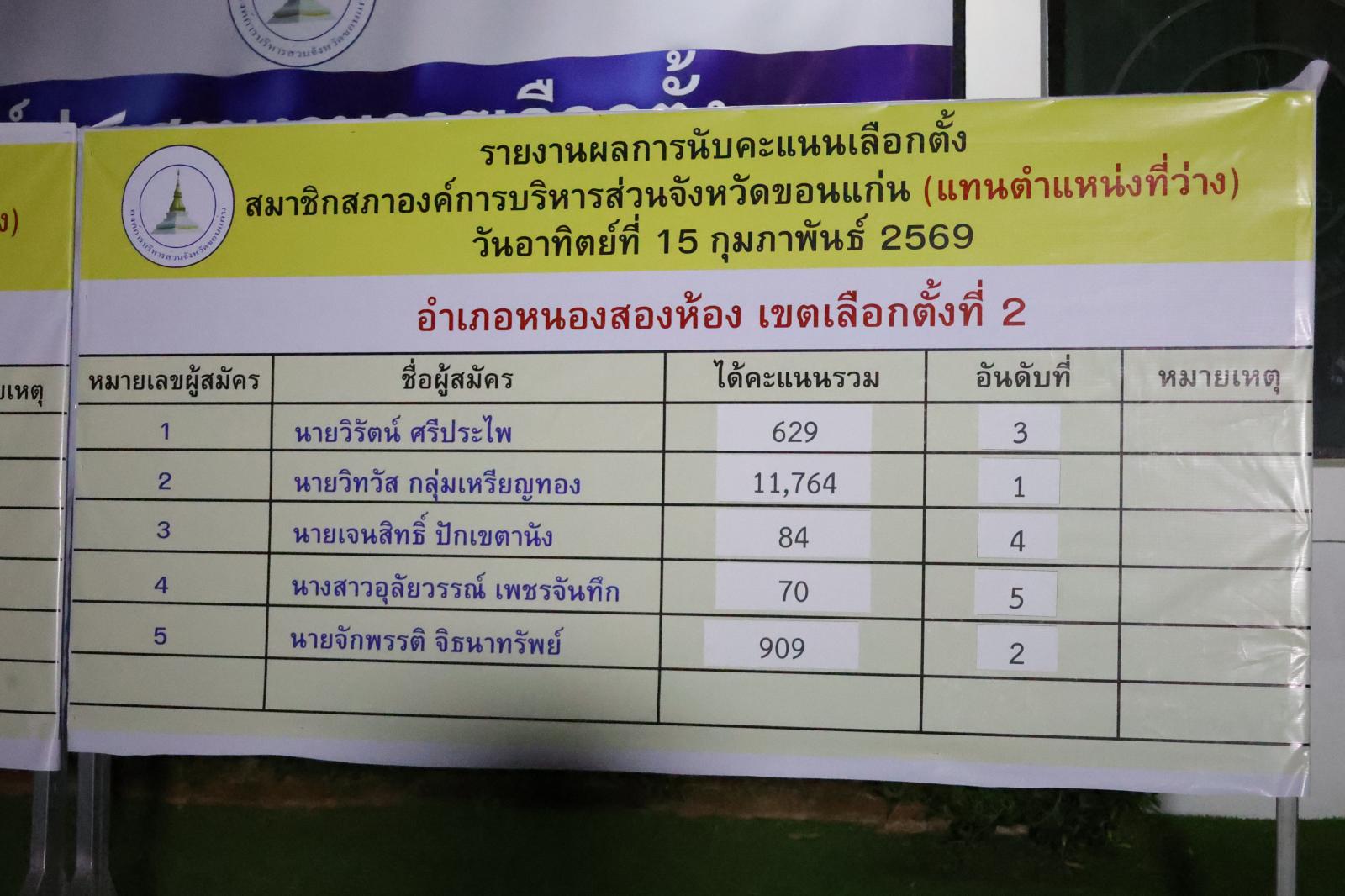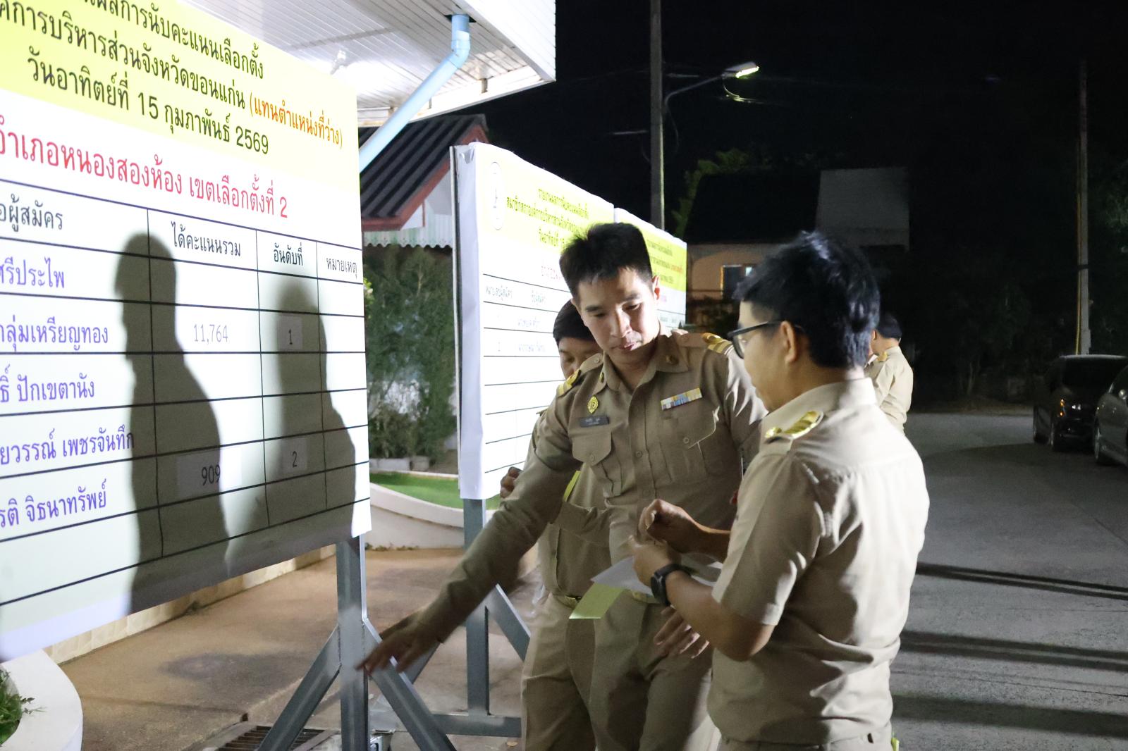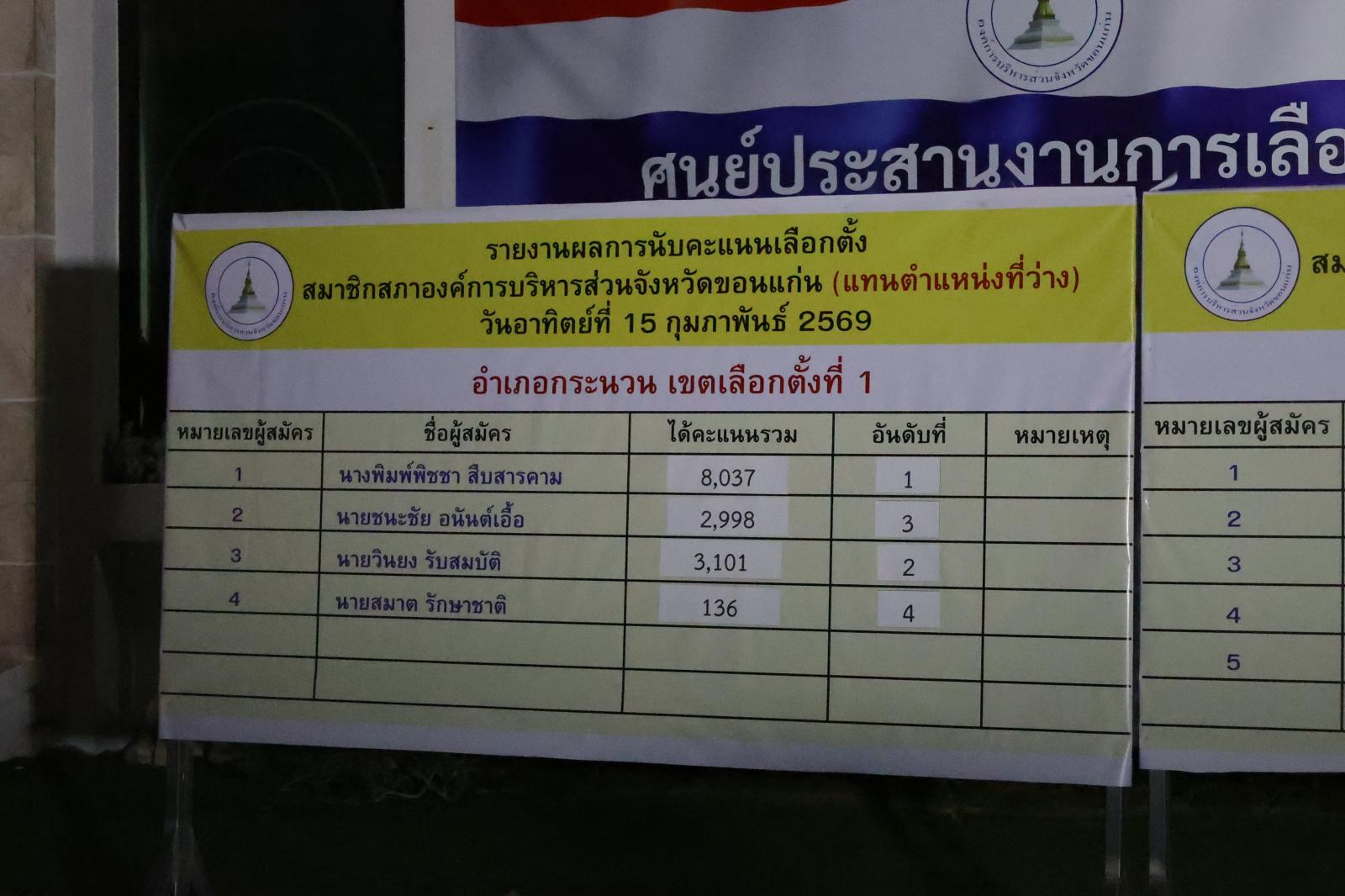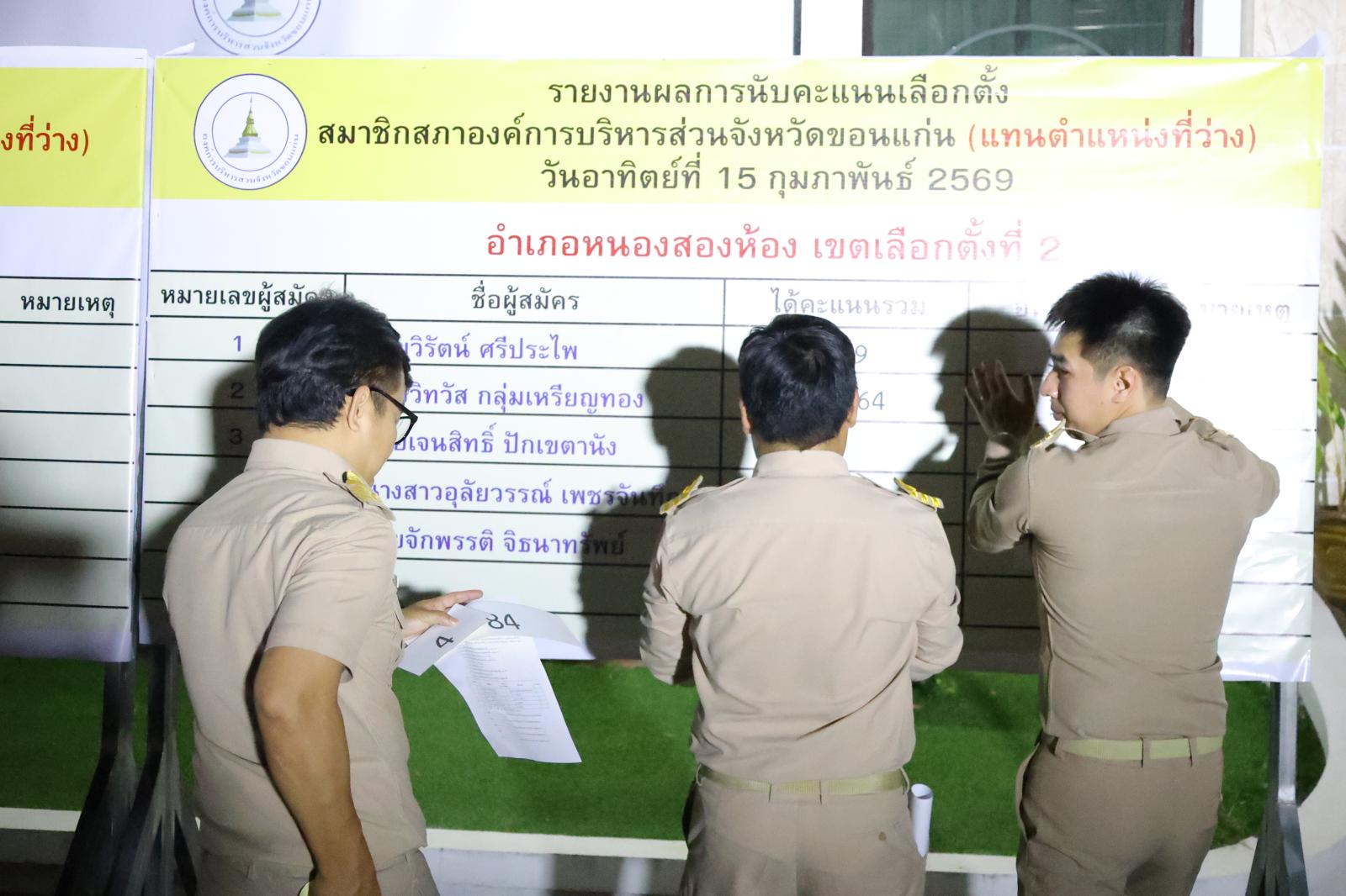 วันที่ 15 กุมภาพันธ์ 2569 บรรยากาศการรายงานผลการเลือกตั้งสมาชิกสภาองค์การบริหารส่วนจังหวัดขอนแก่น (แทนตำแหน่งที่ว่าง) เป็นไปด้วยความเรียบร้อย โปร่งใส และชัดเจน ณ ศูนย์ประสานงานการเลือกตั้งประจำองค์การบริหารส่วนจังหวัดขอนแก่น